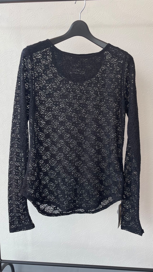 カジュアルさと綺麗め混合のオシャレなレーストップスです♪ レース素材に背中にポイントロゴが入り、ブランド見えします◎ 伸縮性があり、ストレスなく着用していただけ、ほどよくきちんと感と華やかさを兼ね備えていますよ。 ジャケットやベストのインナーにもおすすめです◎ お色はブラックです。 手洗い可能です。 *サイズ 着丈68㎝ 身幅48cm 肩幅38cm 袖丈71㎝ *素材 本体 ポリエステル 90% ポリウレタン 10% 別布 ポリエステル 100%