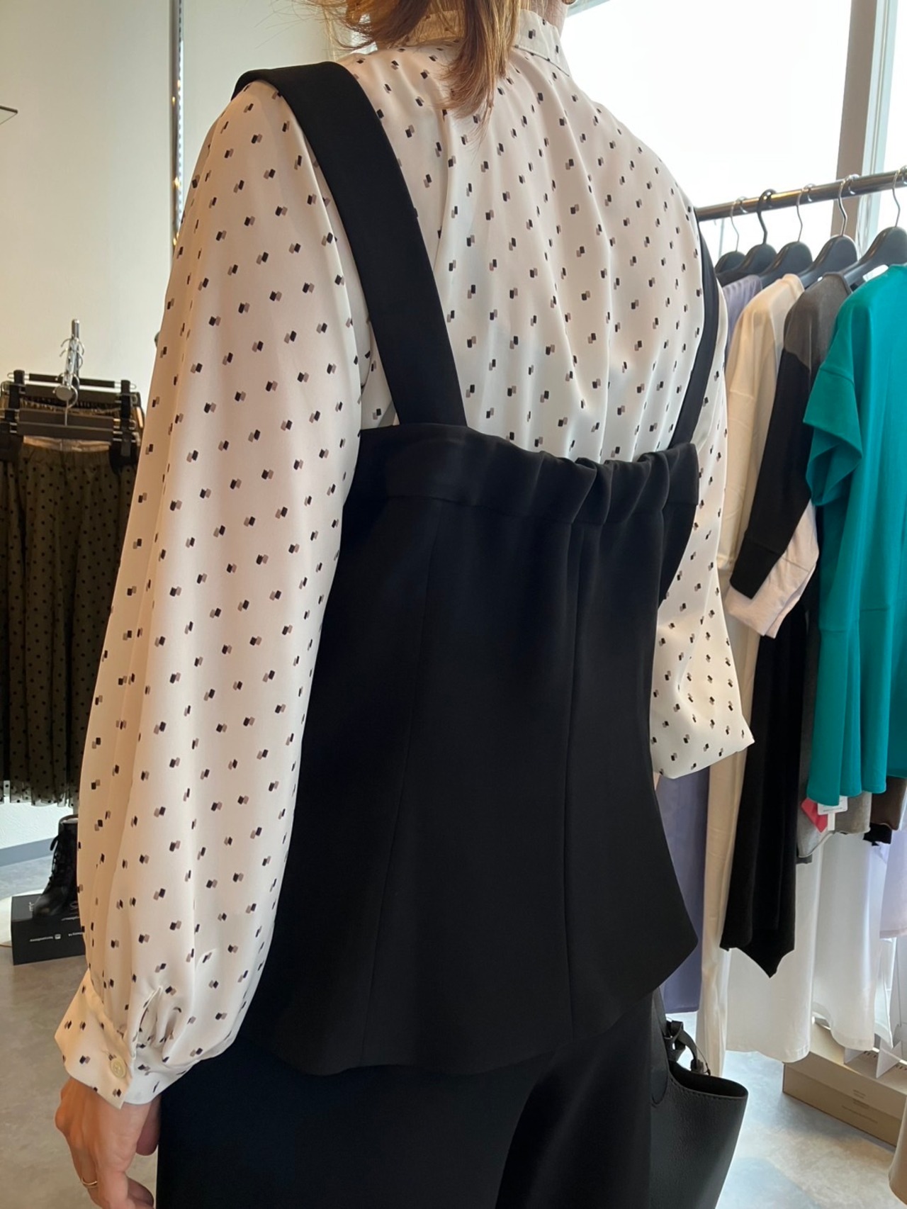 柔らかな素材感と前フリルのデザインが特徴です!季節を問わず活躍するこのブラウスは、カジュアルからきれいめまで幅広いスタイルにぴったりです◎