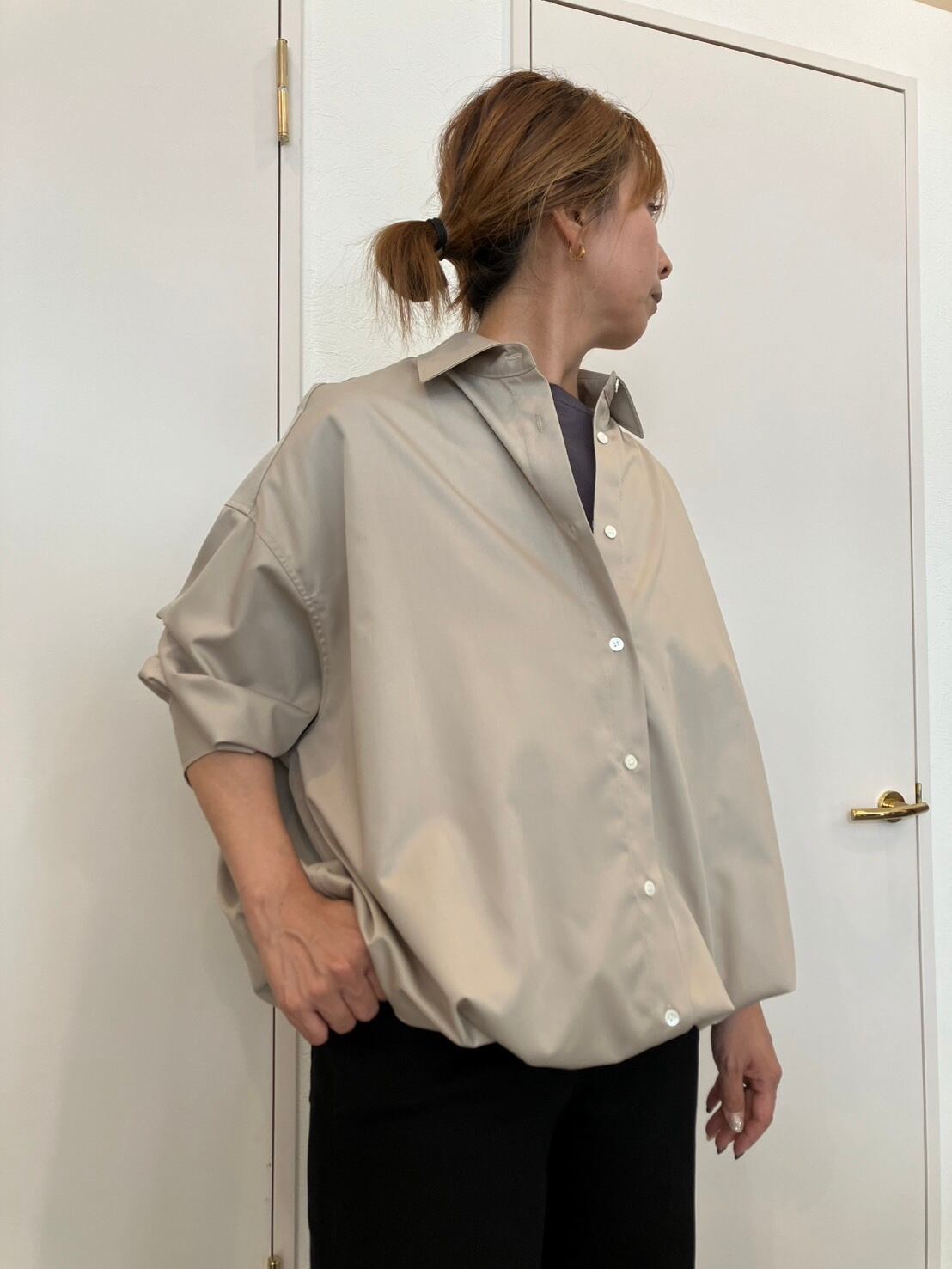 少し光沢感のある綺麗な表情の素材を使用し、裾のドローコードでシルエットをアレンジして着ていただけます。
