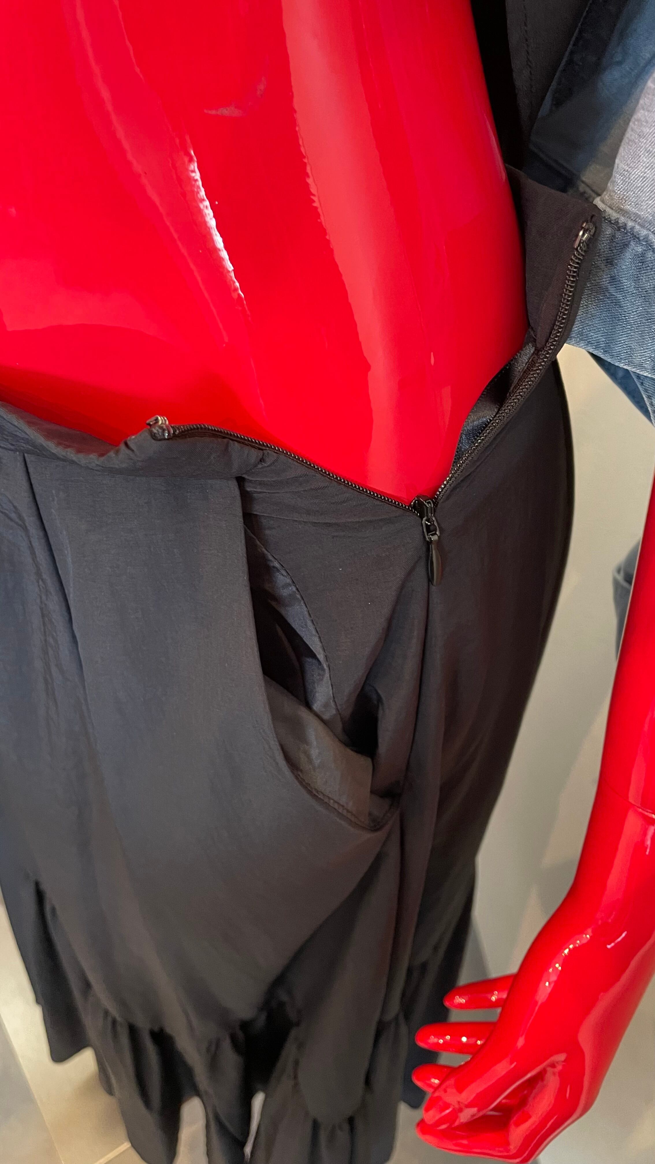デザインの特徴である変形ティアードが、上品かつ動きのある印象を演出します!