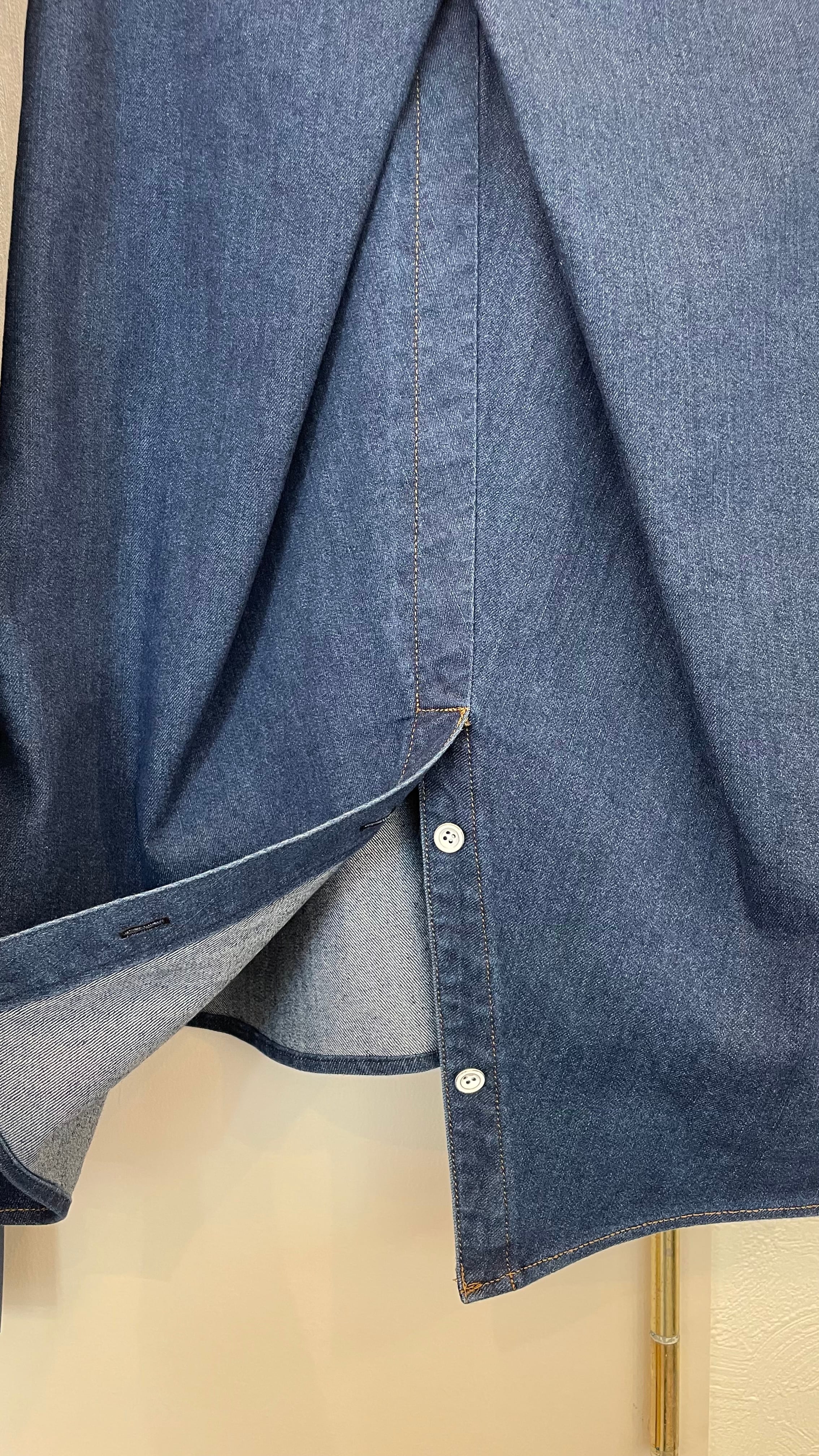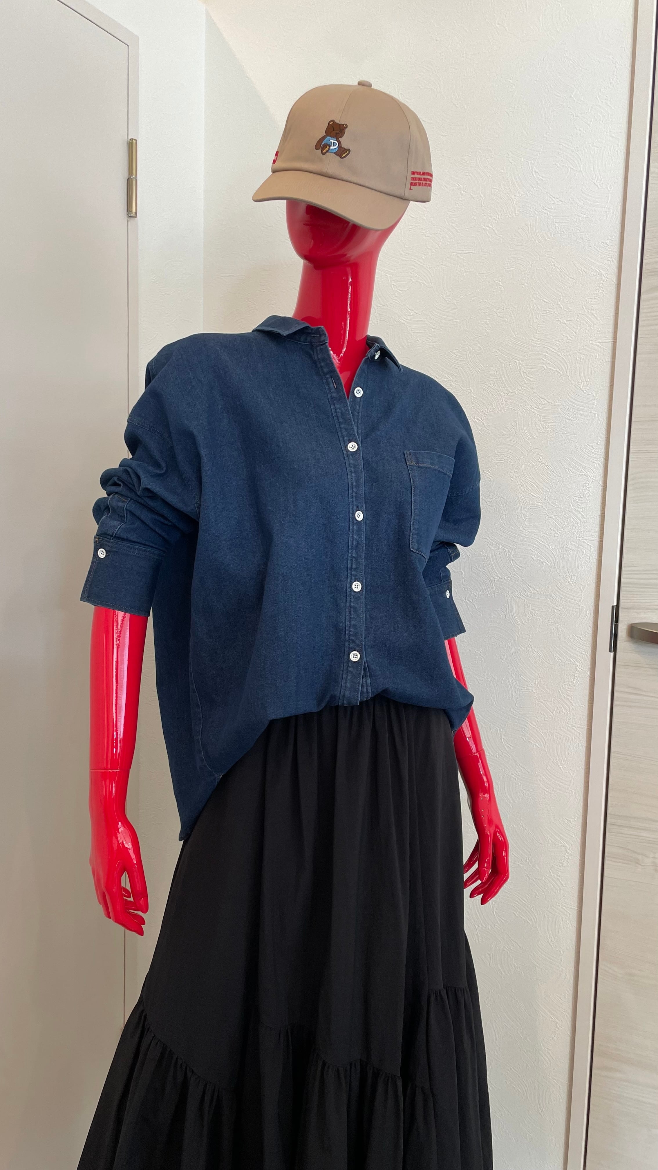 フロント裾をスナップボタンで折り上げ、後ろ裾は、ボタンスリットが入ったシャツです♪