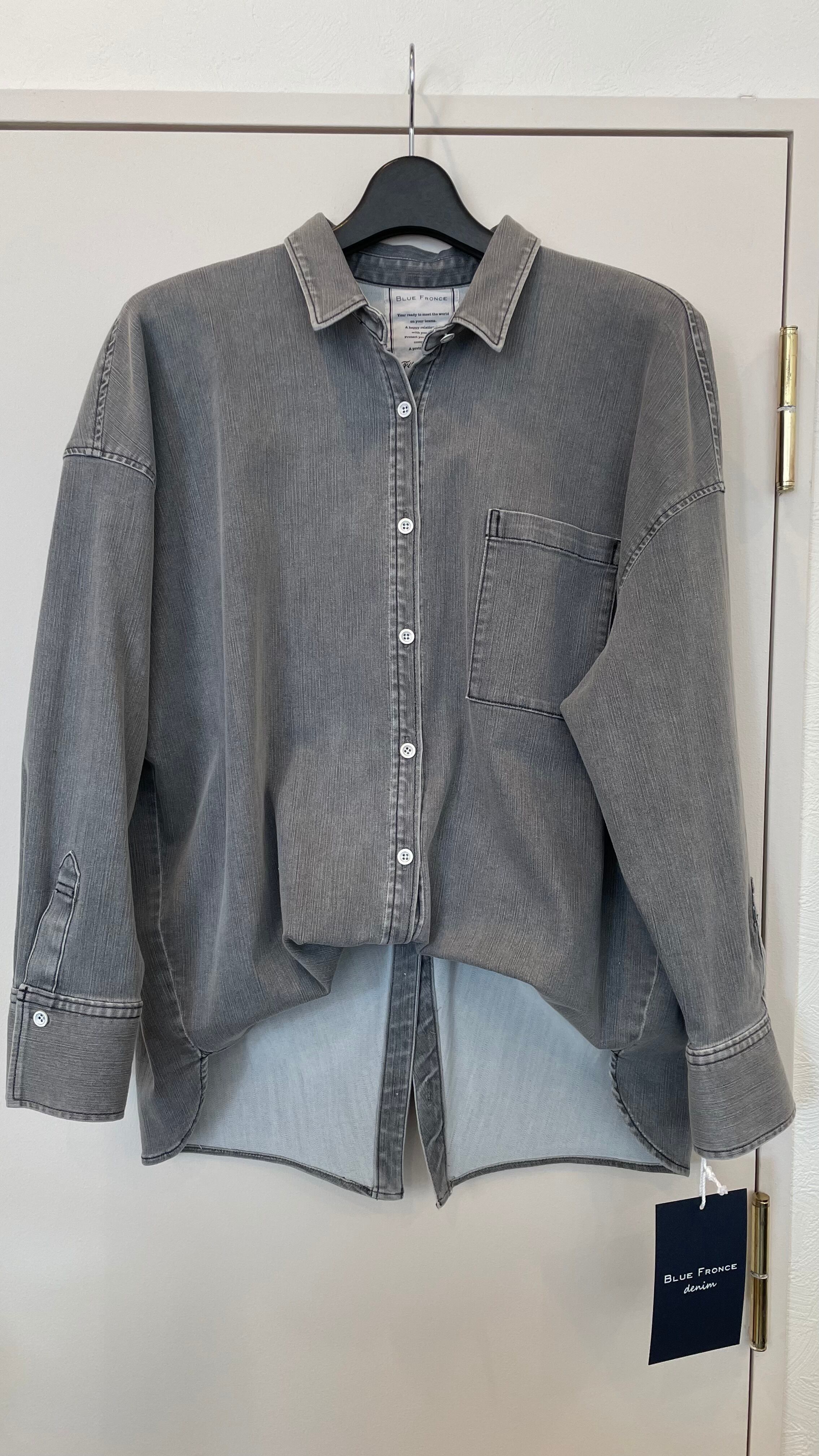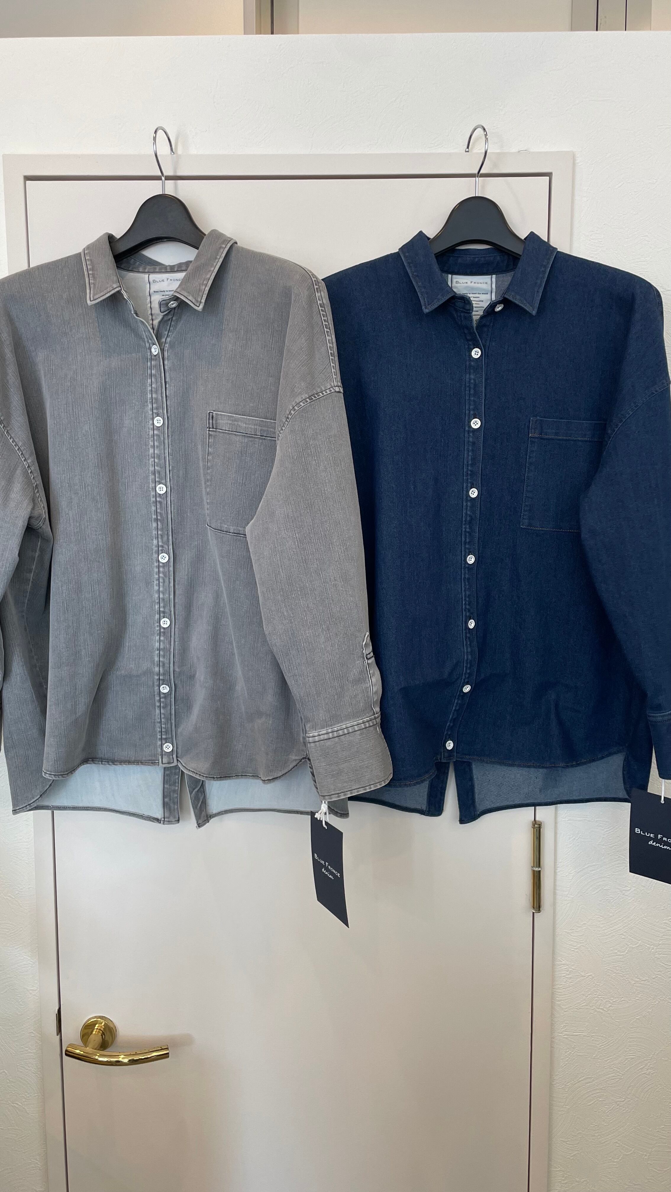 フロント折上げ、後ろボタンスリットシャツ☆BLUE FRONCE
