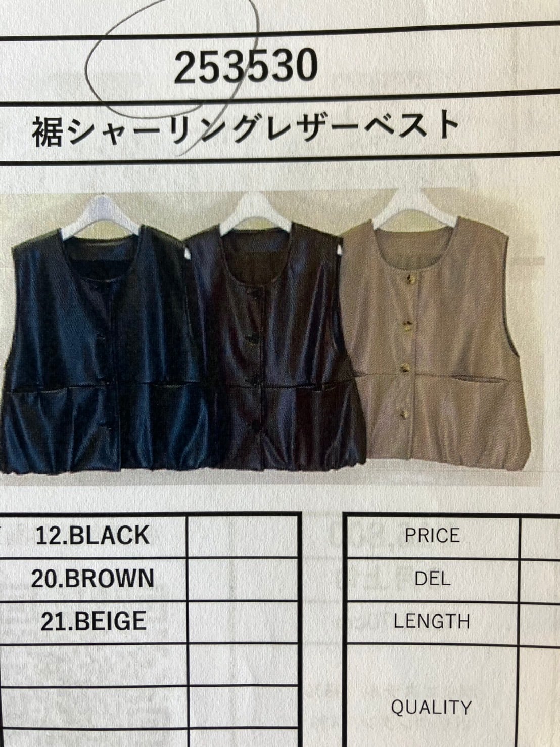 裾シャーリングフェイクレザーベスト☆SUGAR ROSE