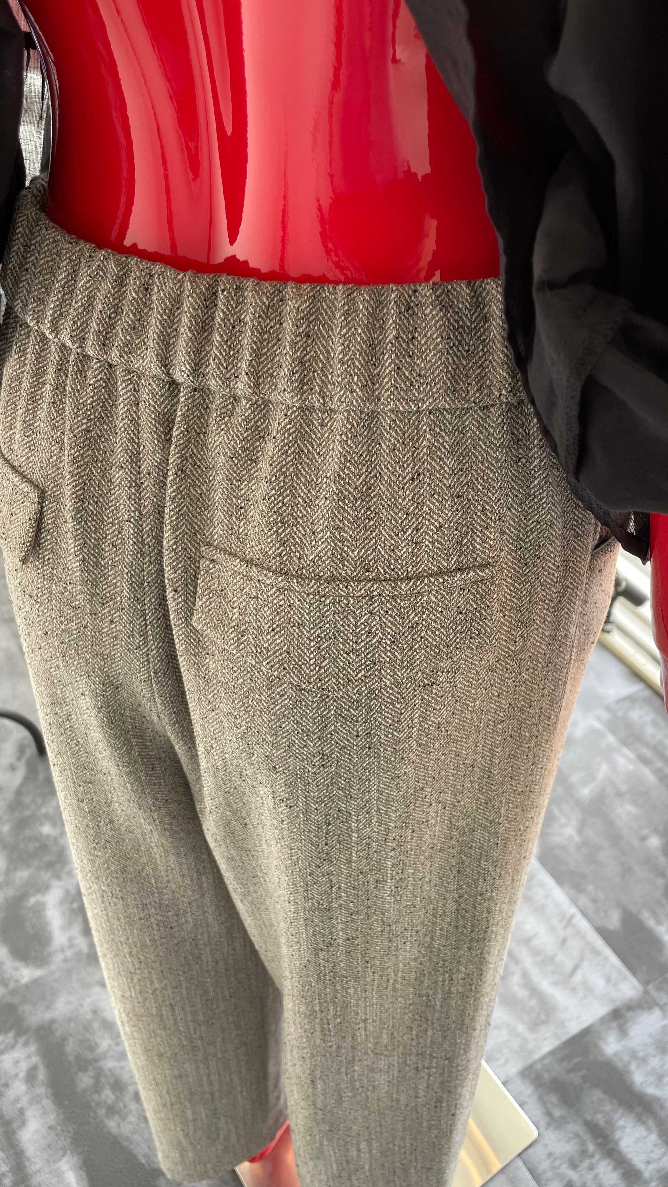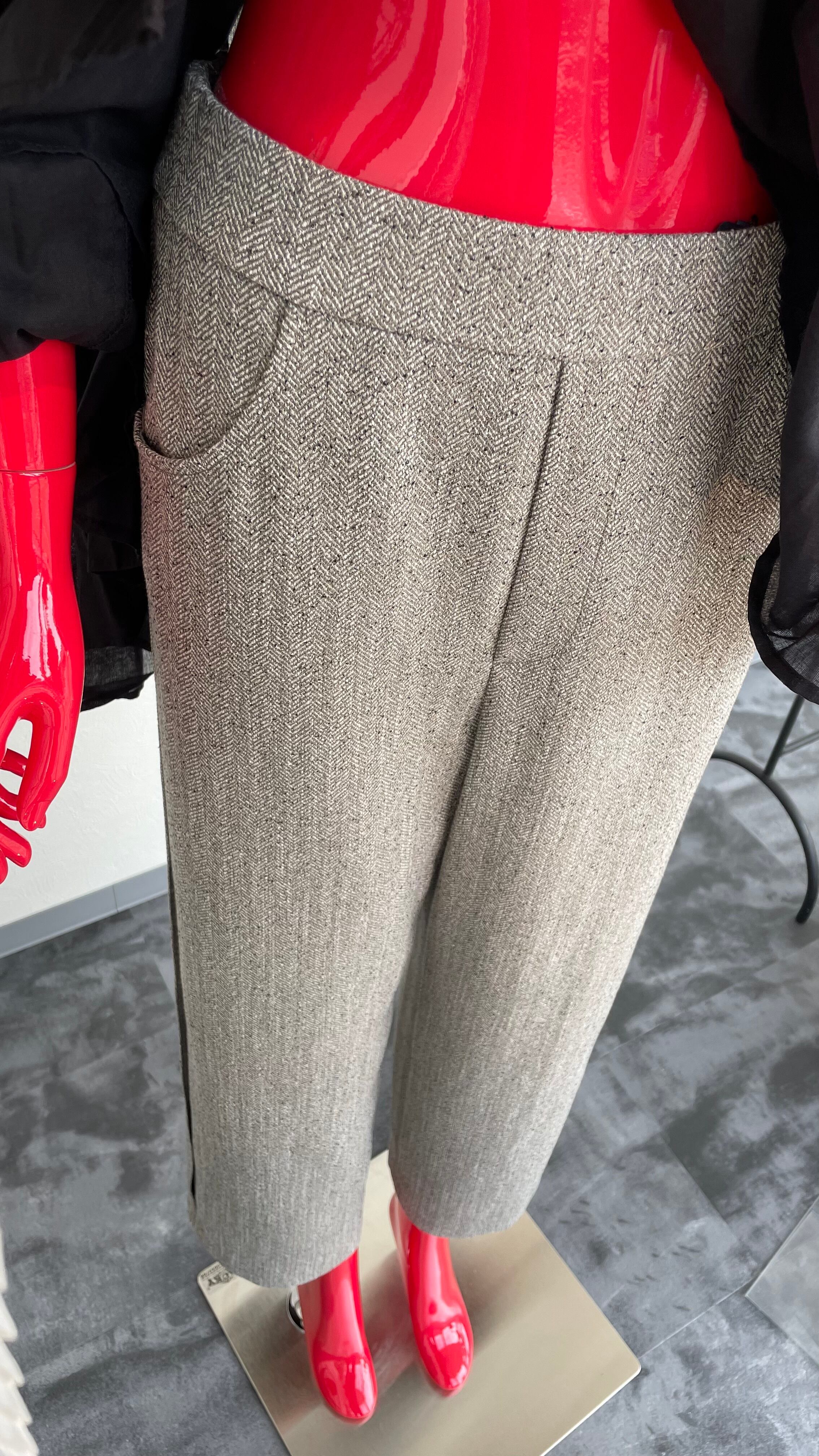 ヘリンボーン柄のサイドプリーツのパンツです♪