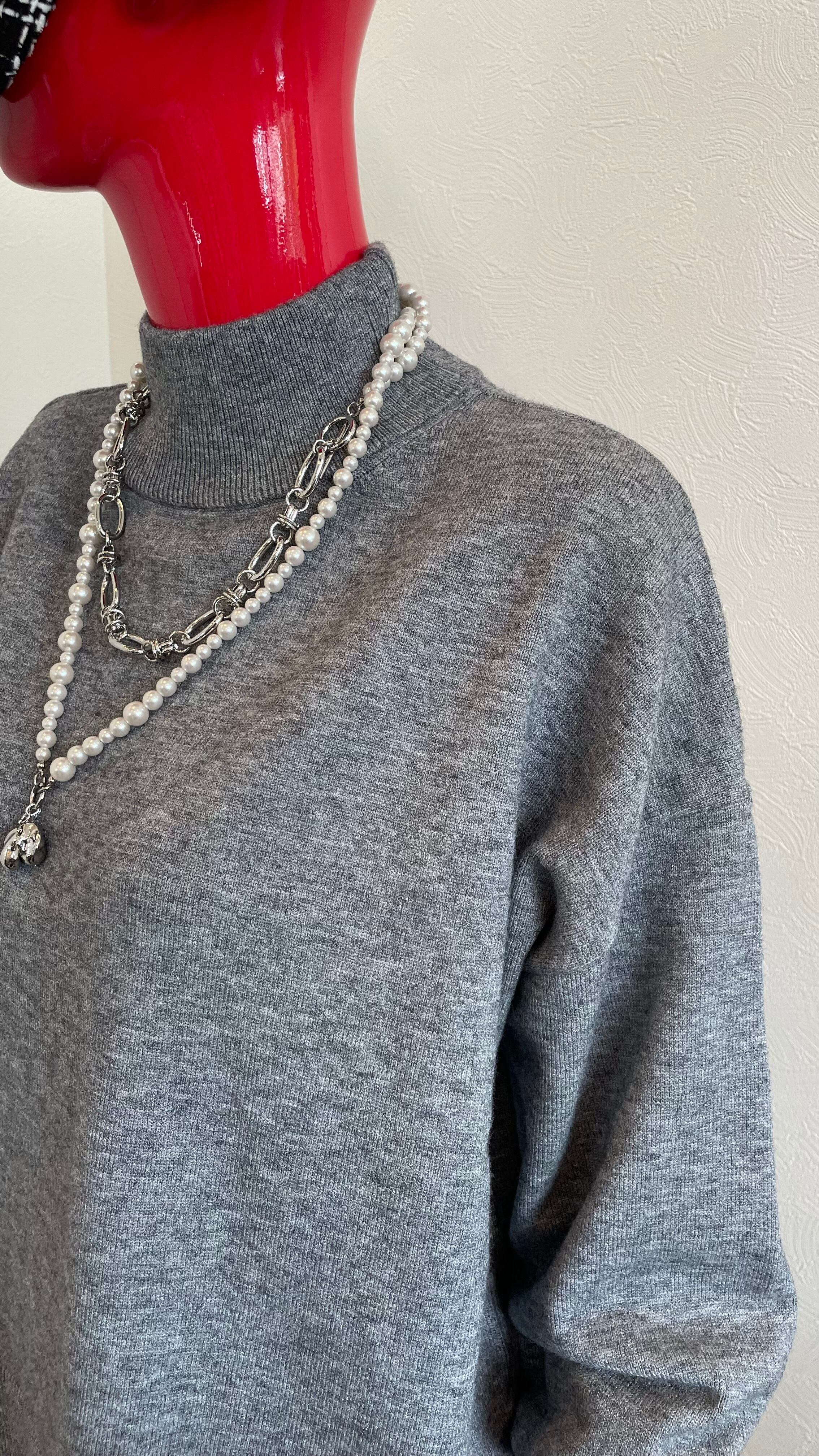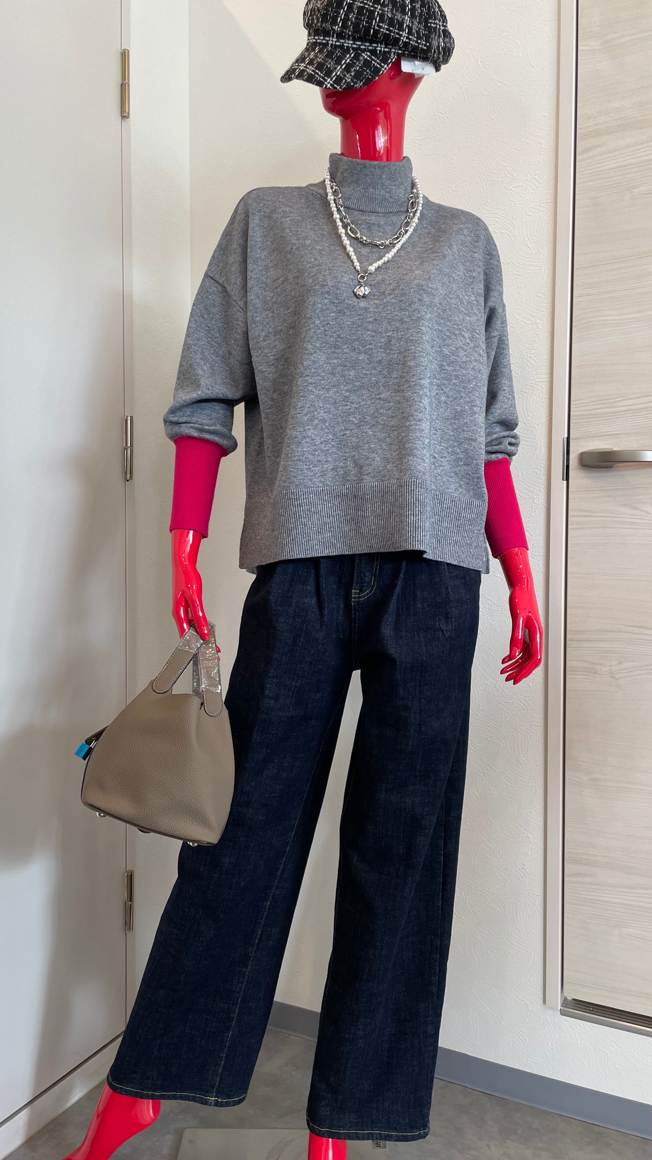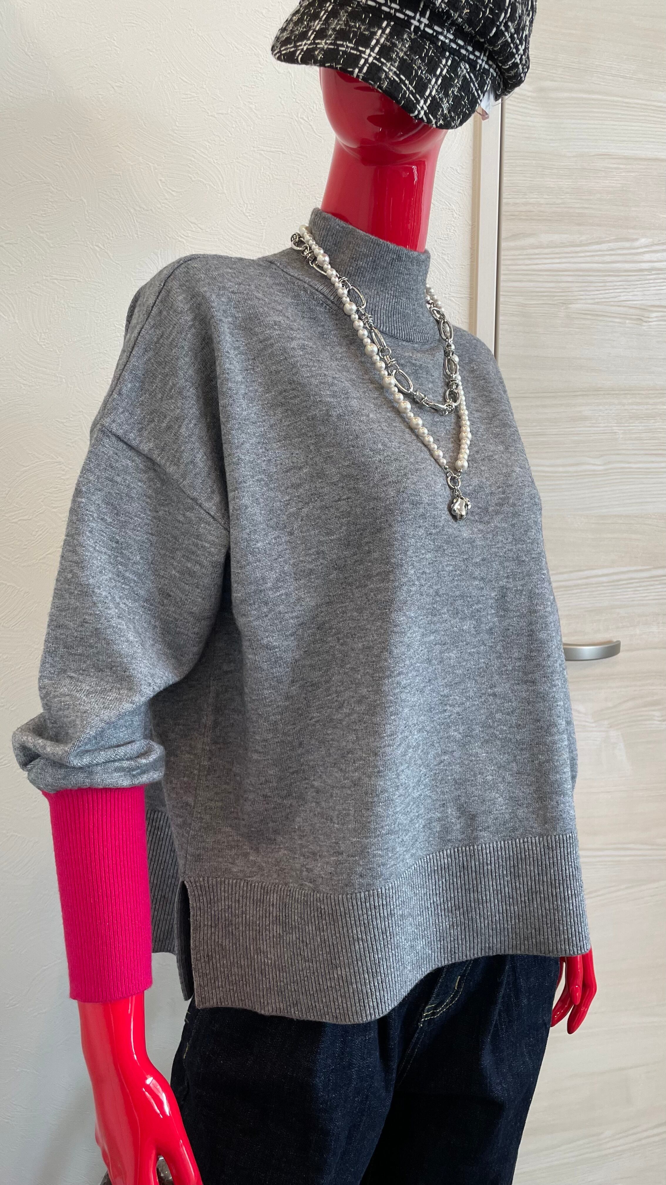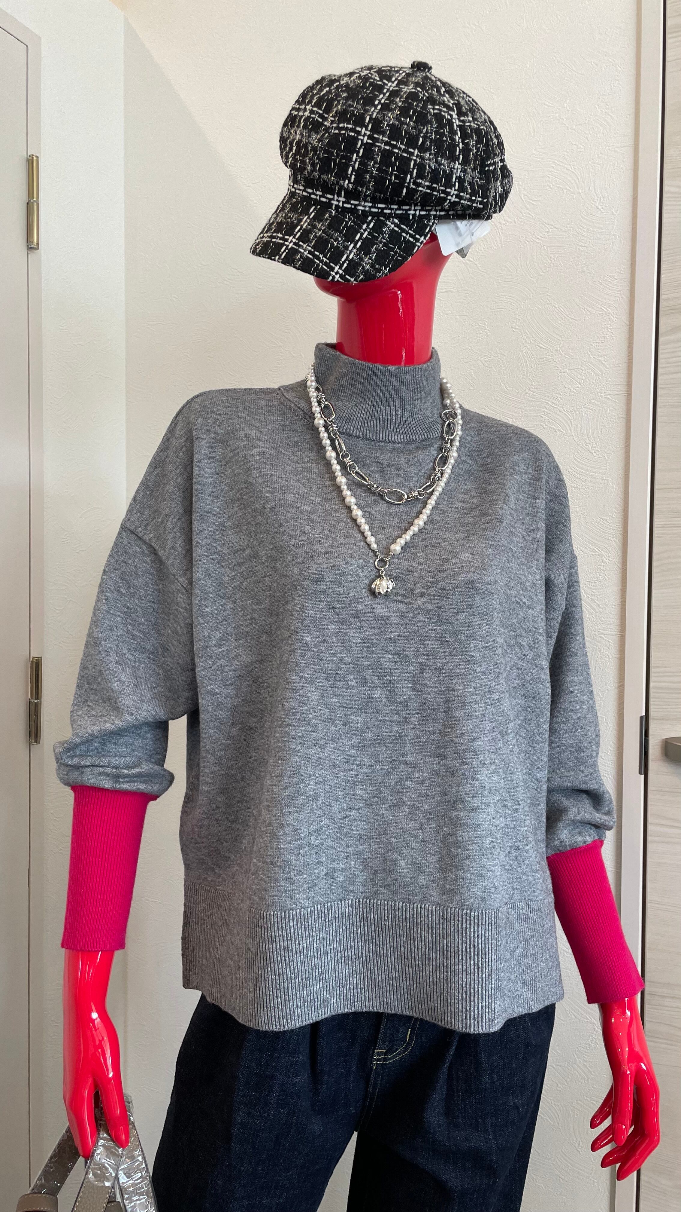 袖先にアクセントカラーを効かせたバイカラーニットです♪