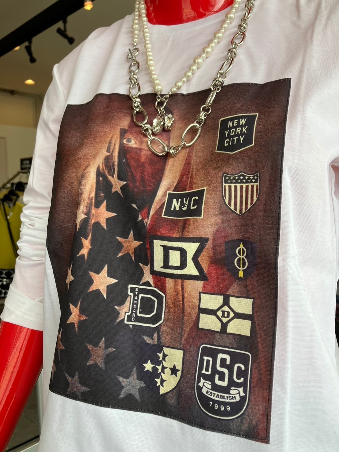 絶妙な色彩と布感のワッペンプリントが縫い付けされたロングスリーブTシャツです♪