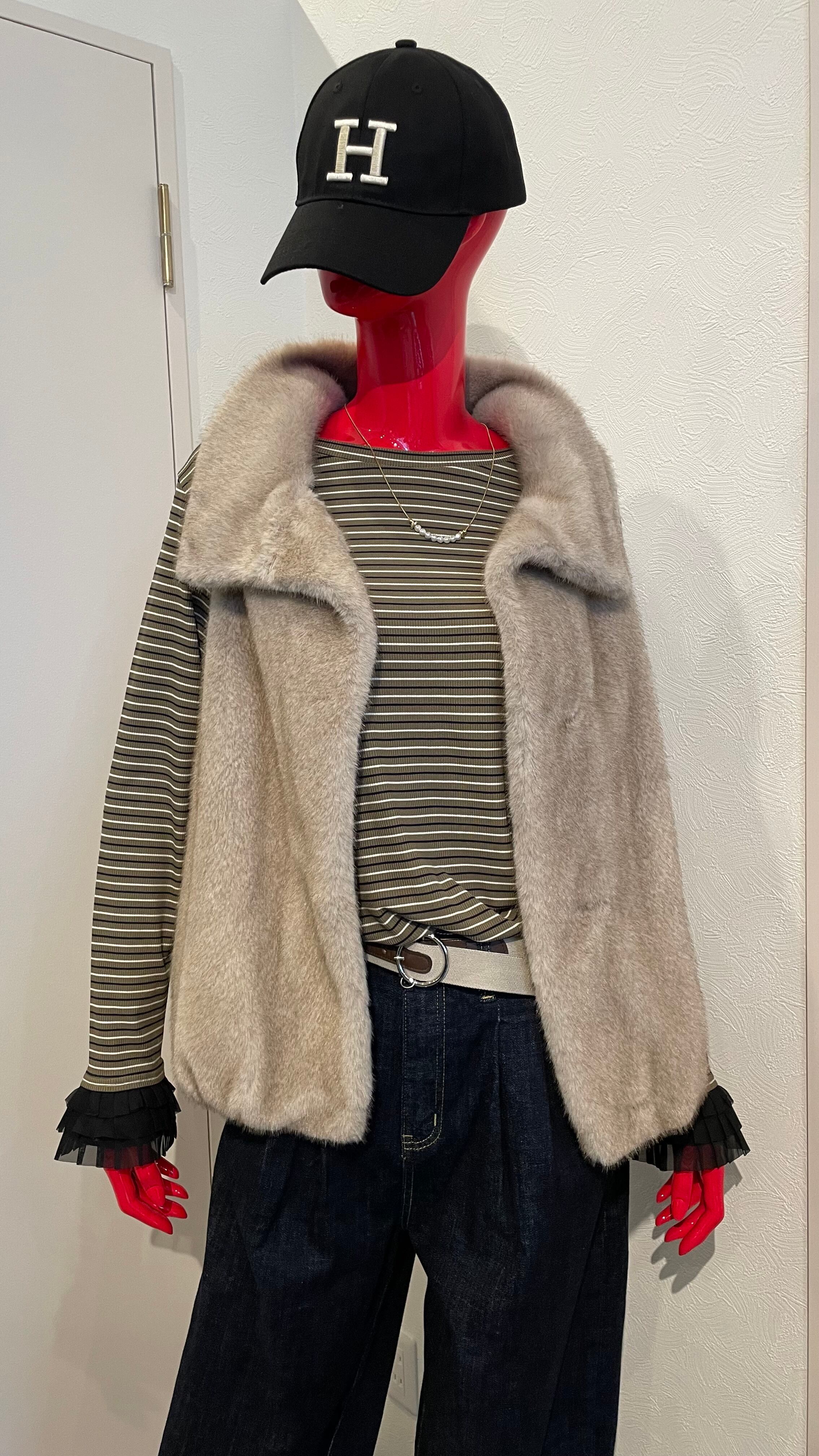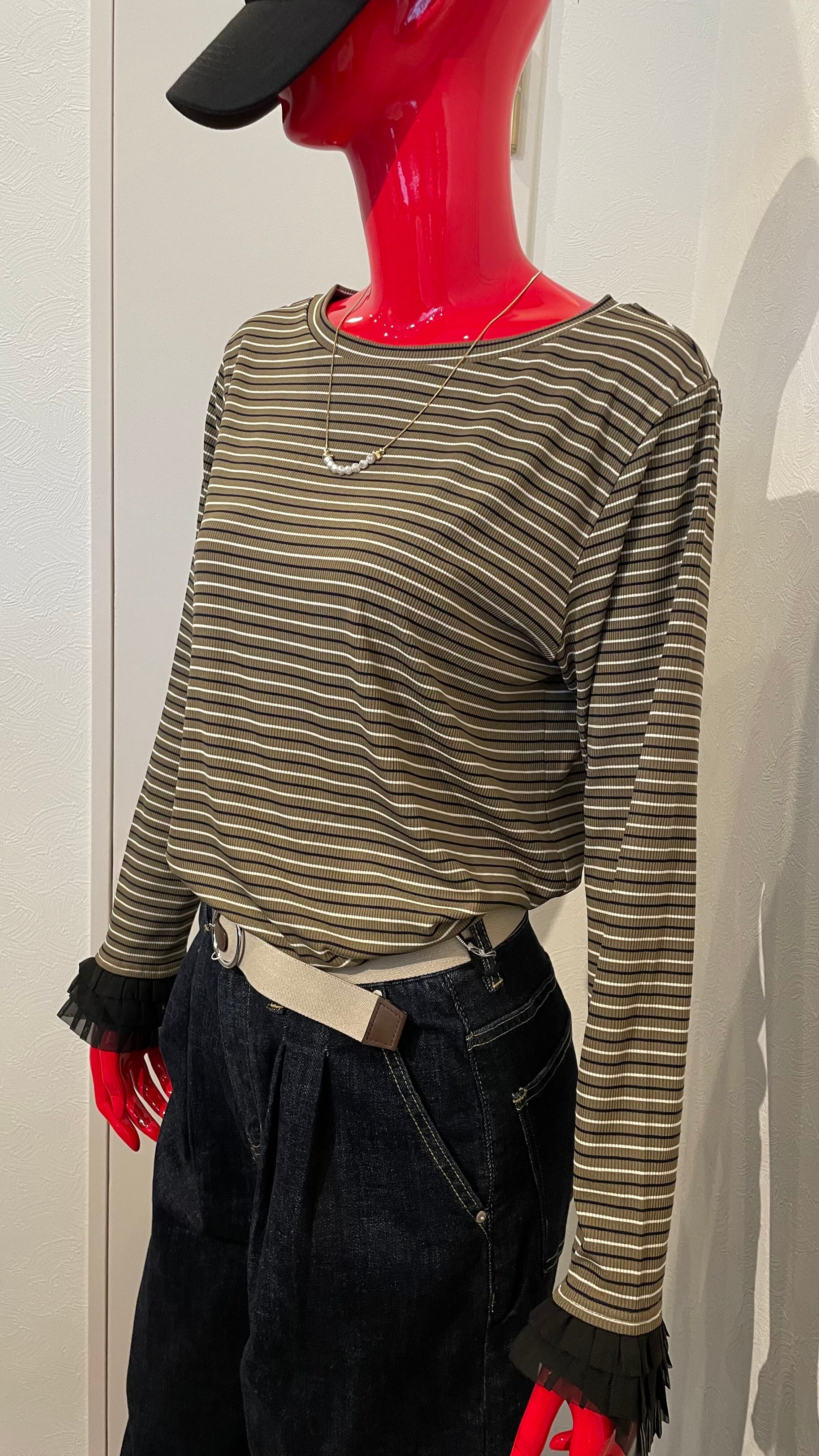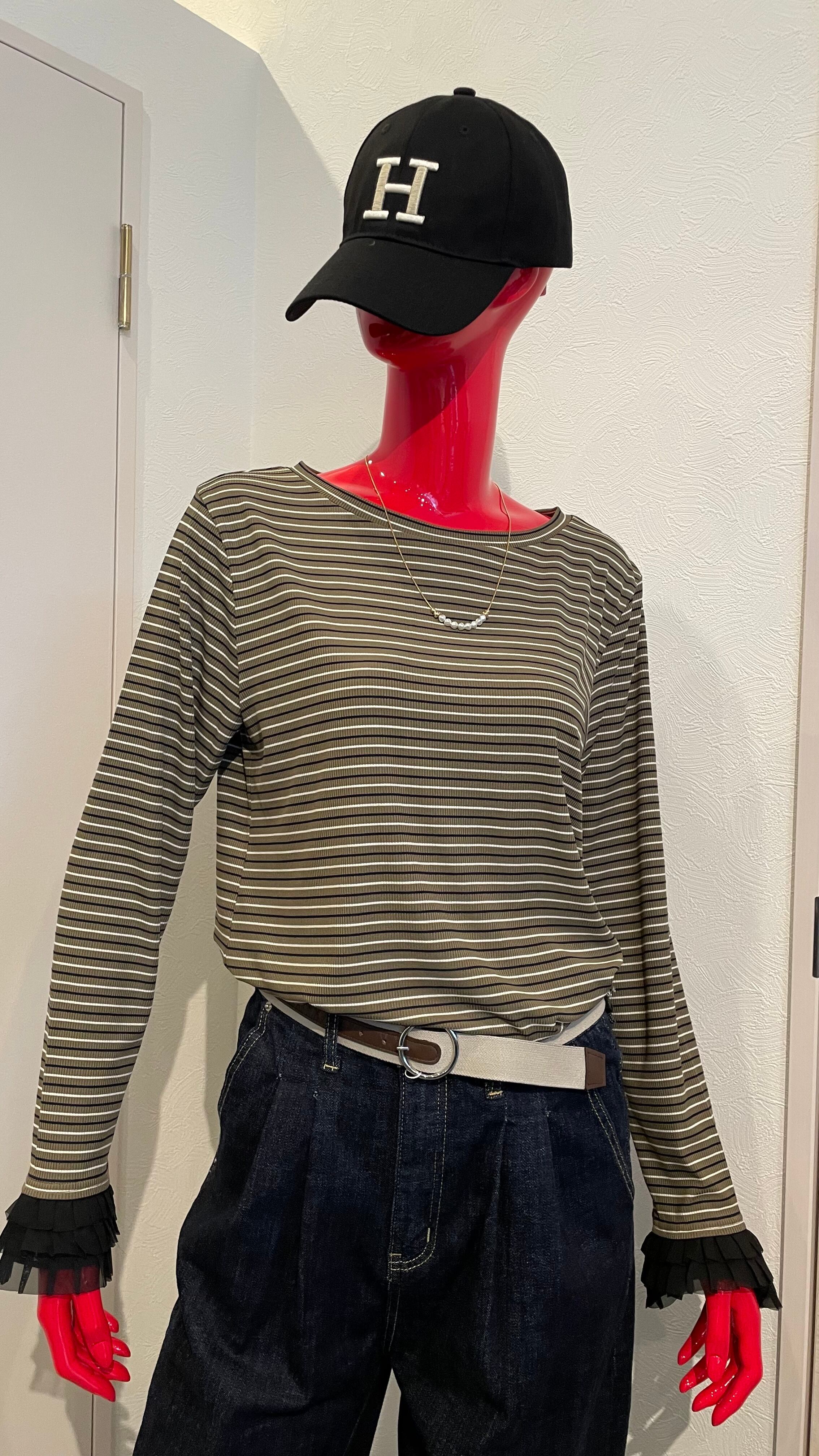 柔らかいリブのボーダーのカットソー素材で伸縮性のあるトップスです♪