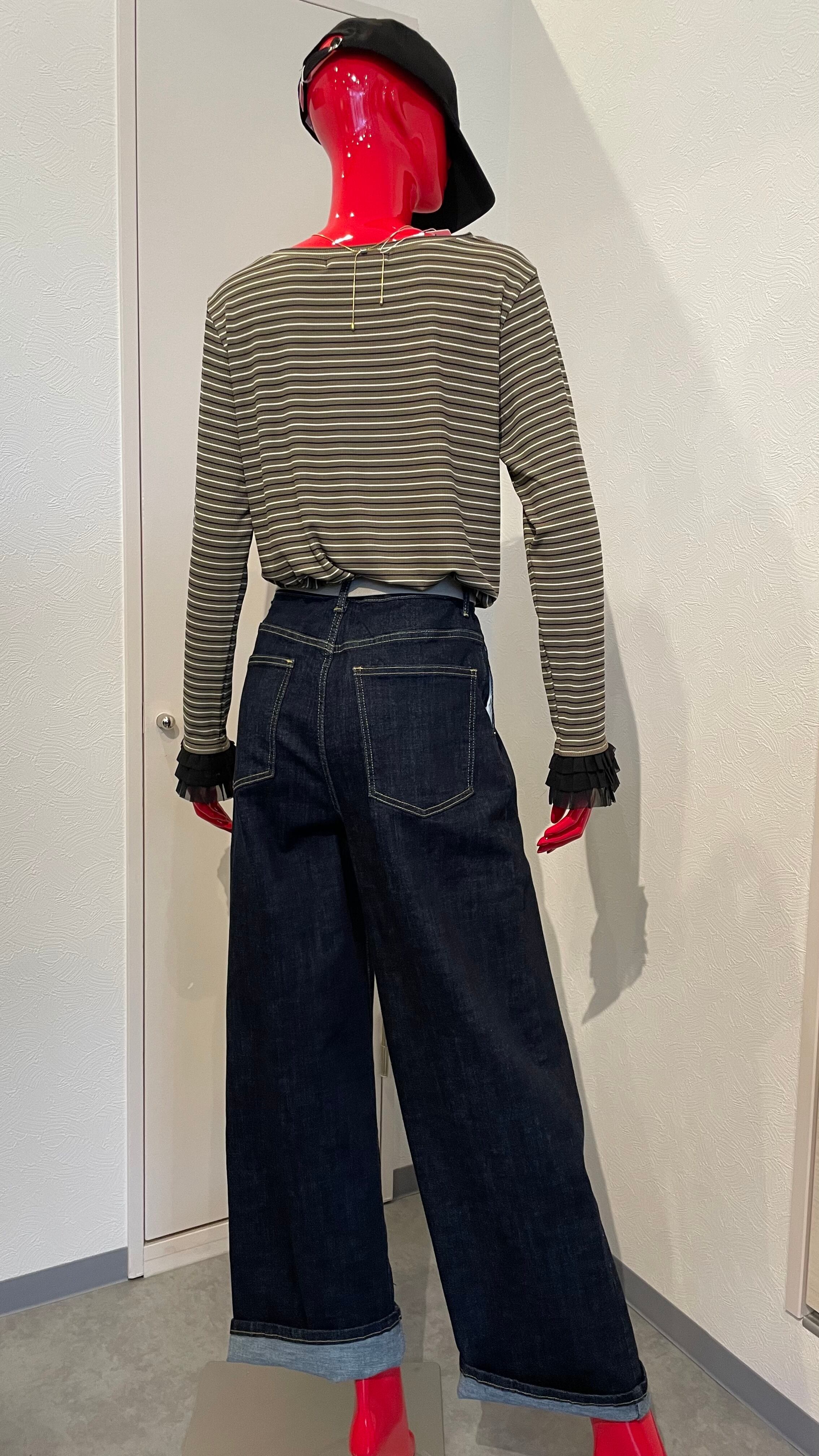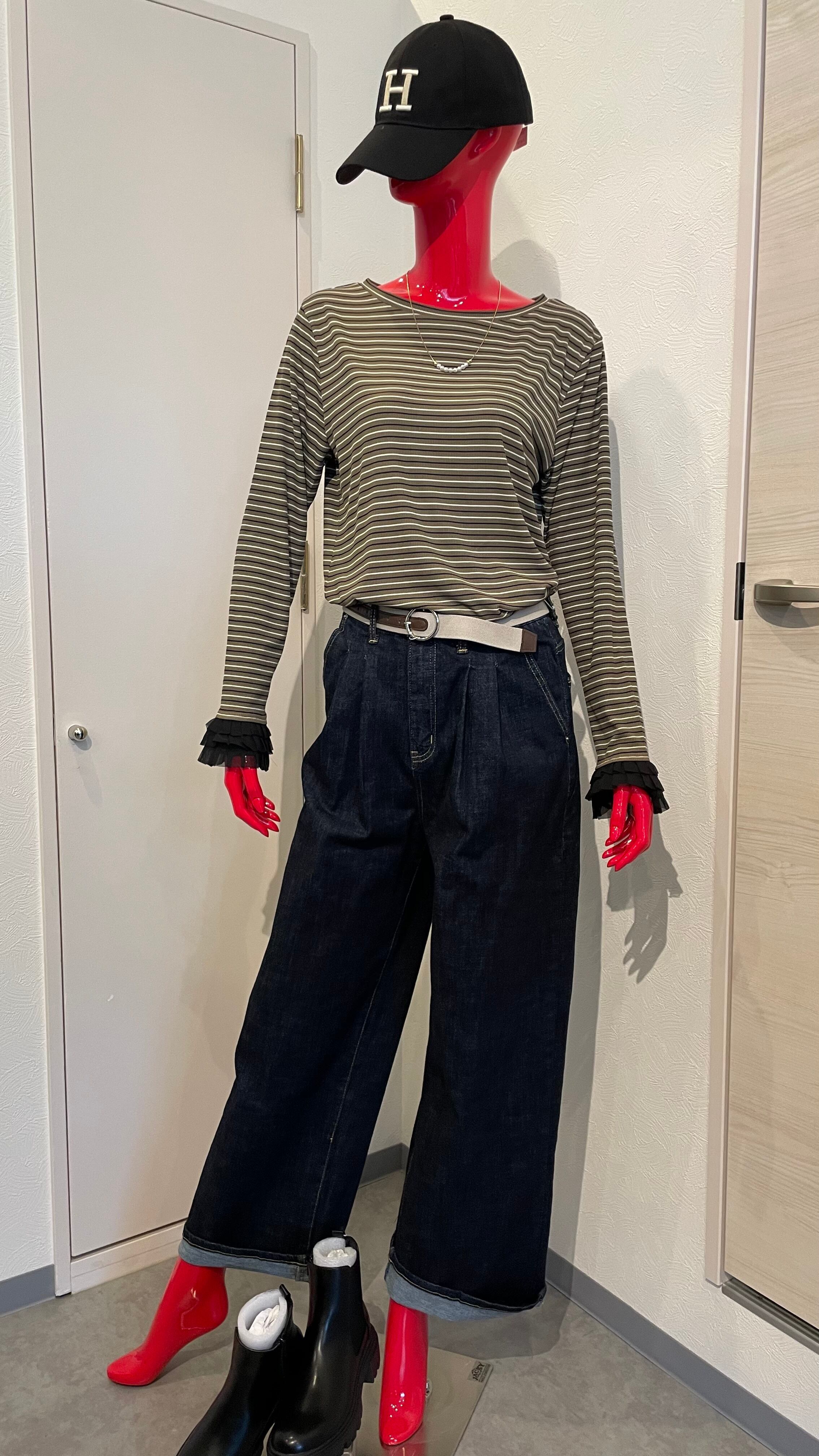 抜け感のある首回りのサイズ感やすっきりしたシルエット、袖口のチュールフリルデザインがカジュアルの中にも女性らしさをプラスしてコーディネートを引き立てますよ◎