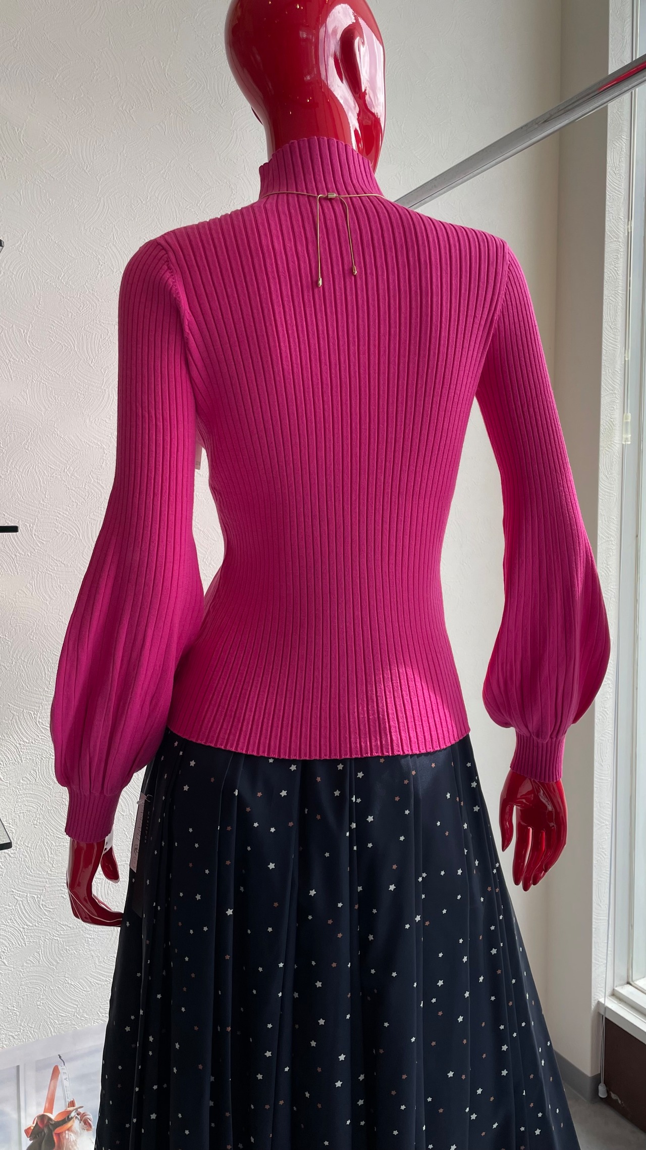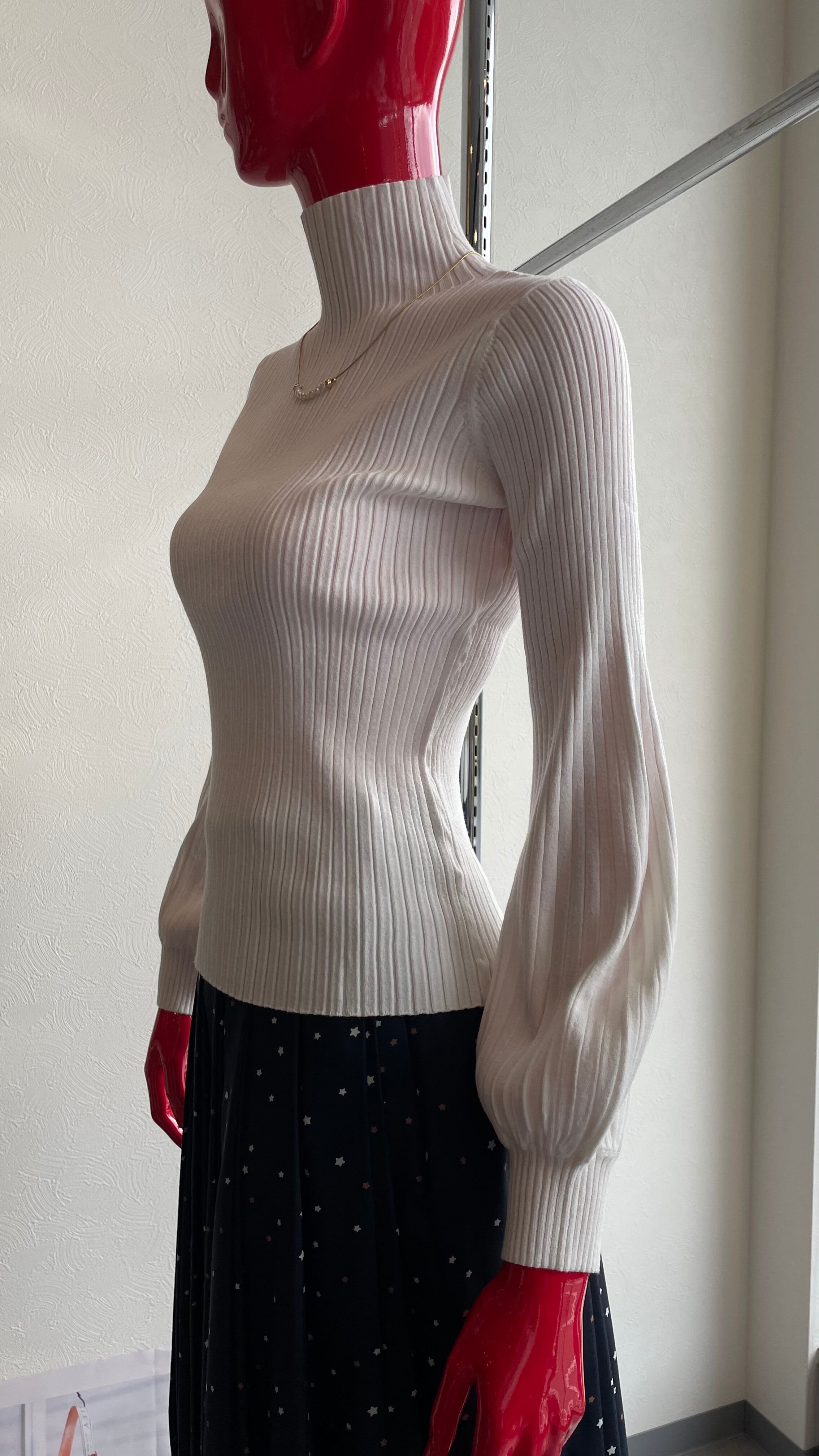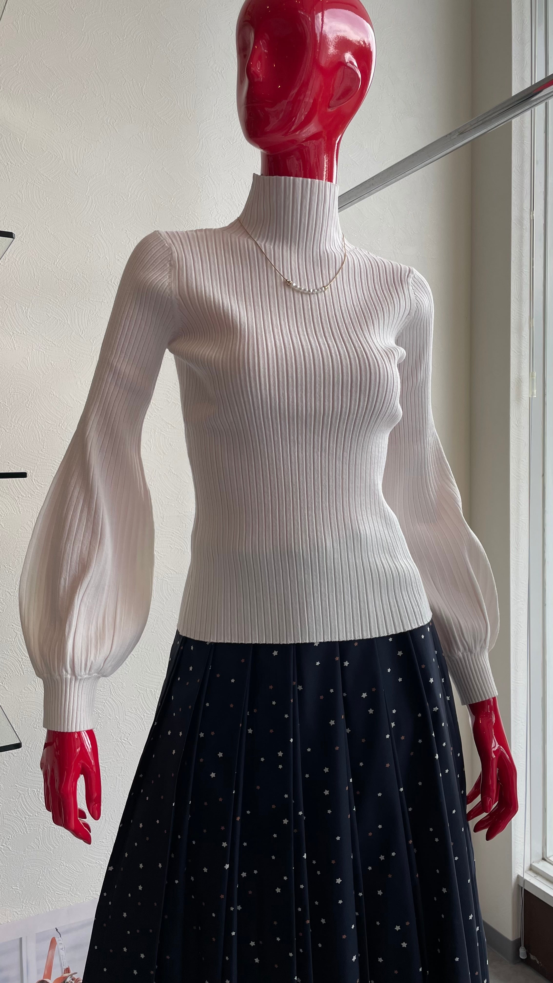 優れた伸縮性でフワッとしたパフスリーブが女性らしいシルエットを演出します。カラダのラインを拾いにくく、1枚でもインナー使いにも重宝します◎