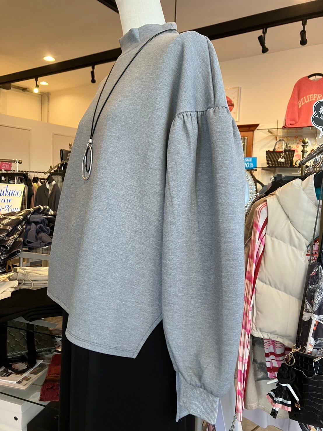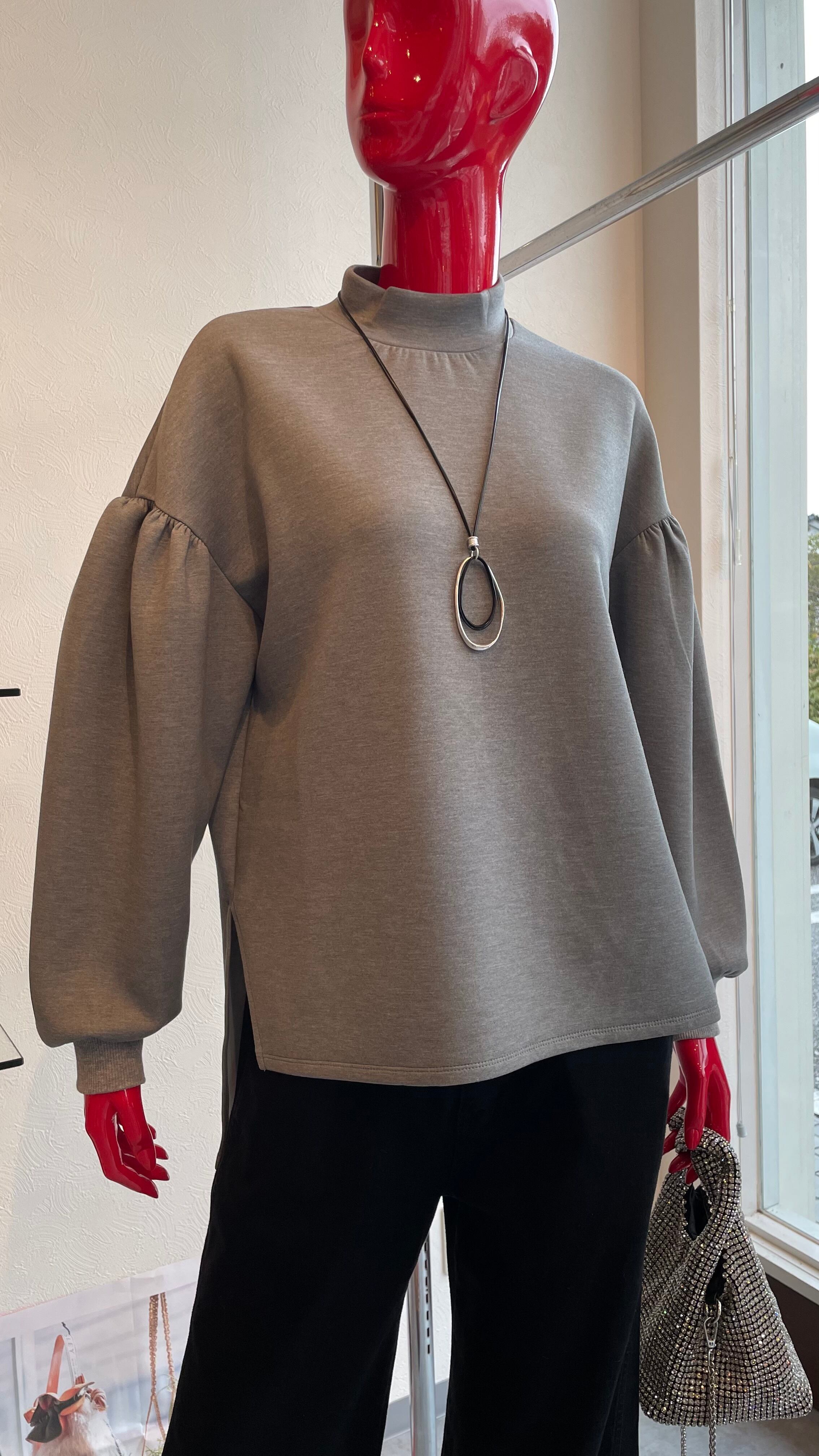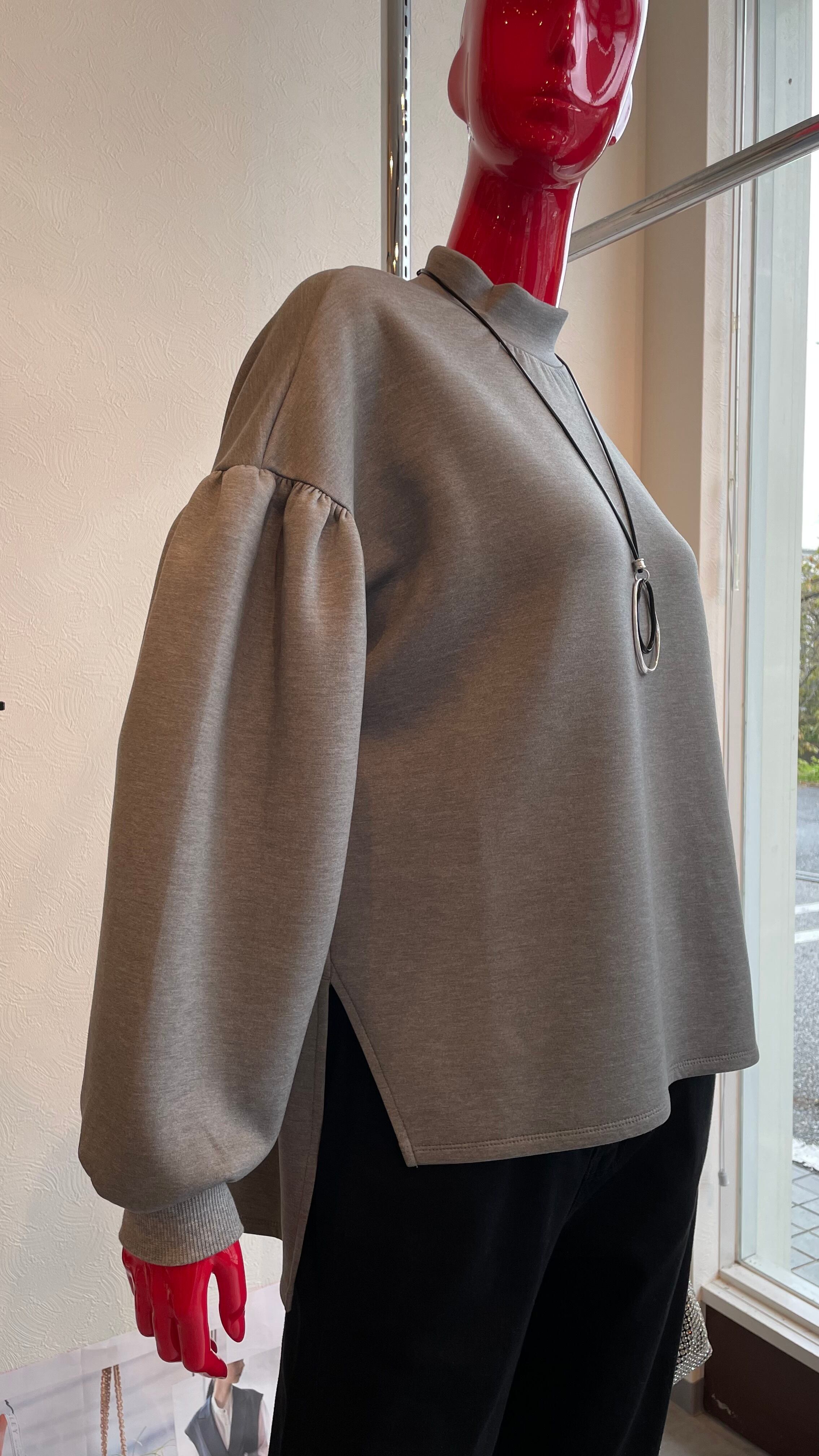 モックネックの前後差のあるプルオーバーです。