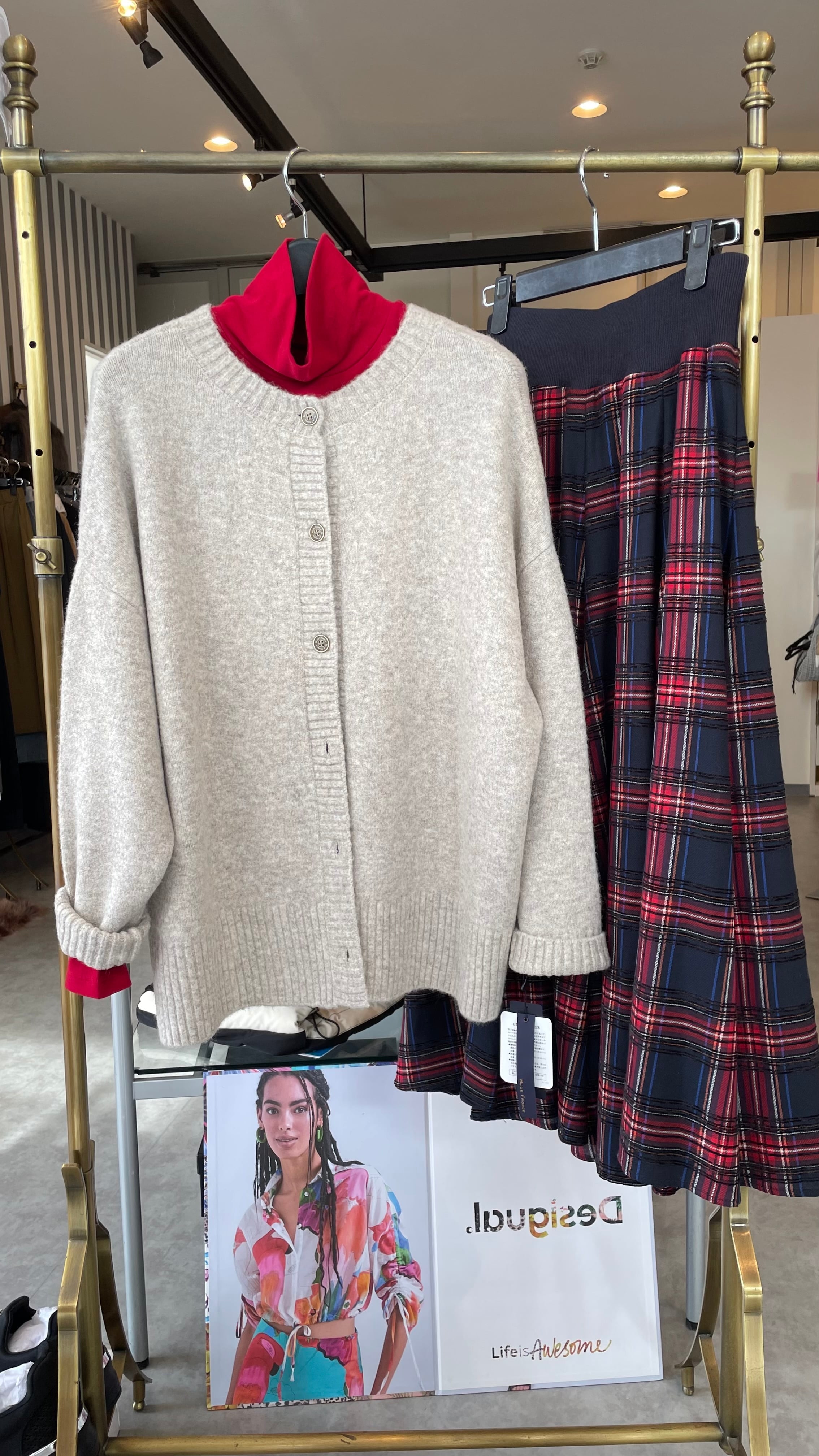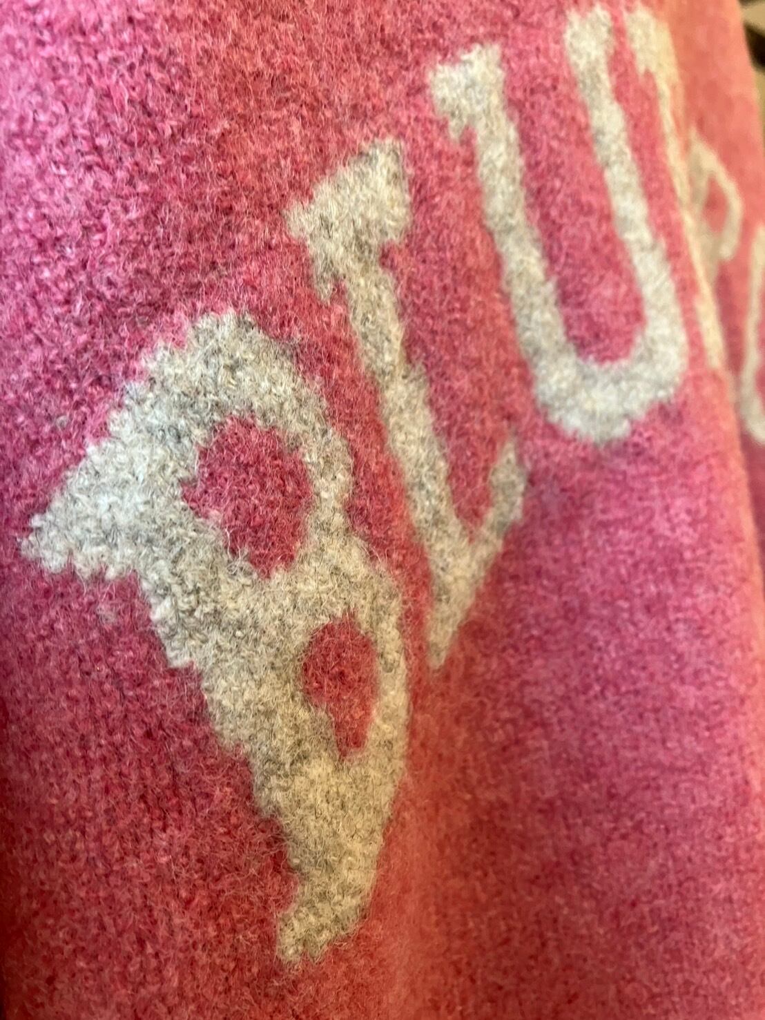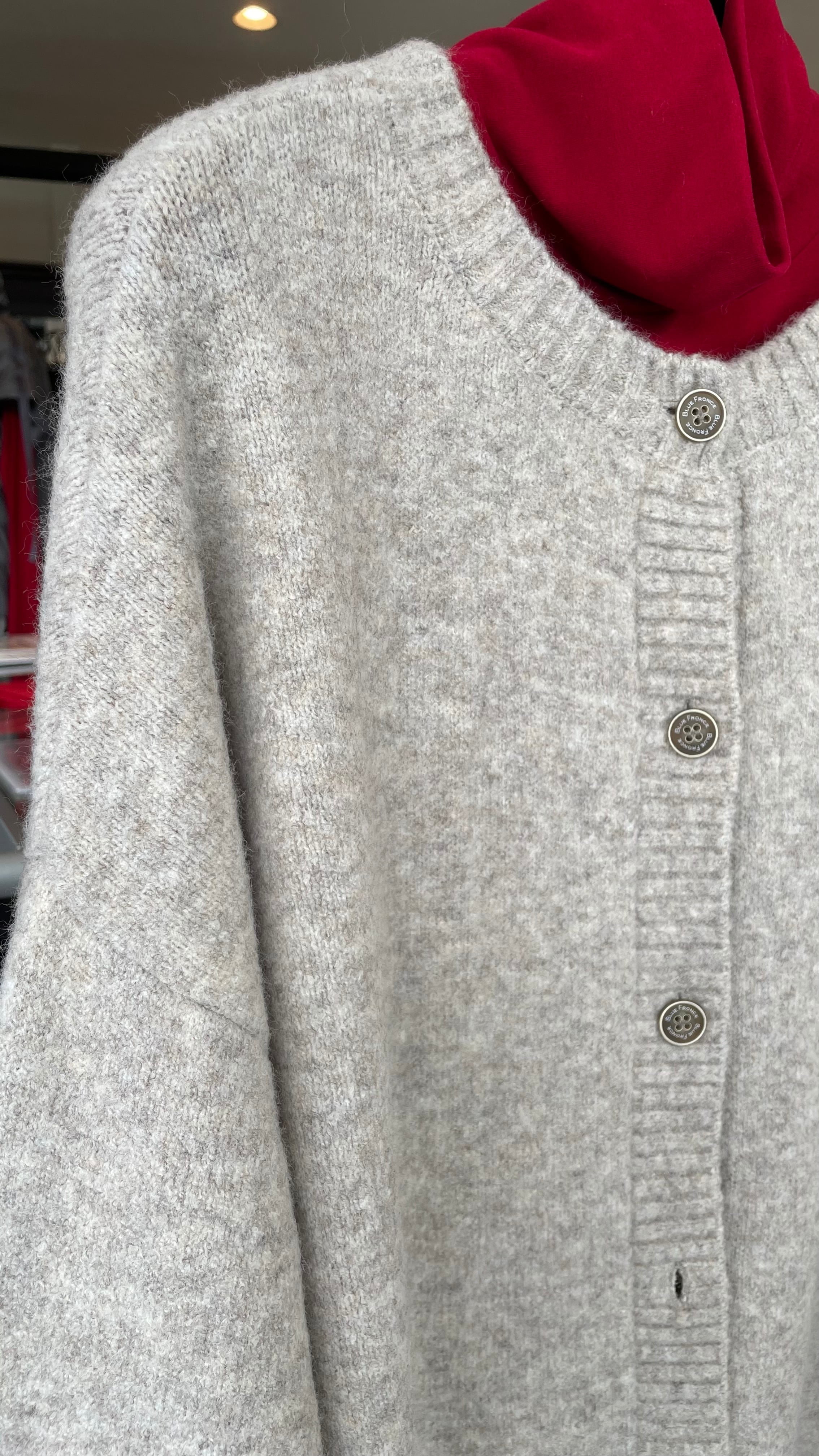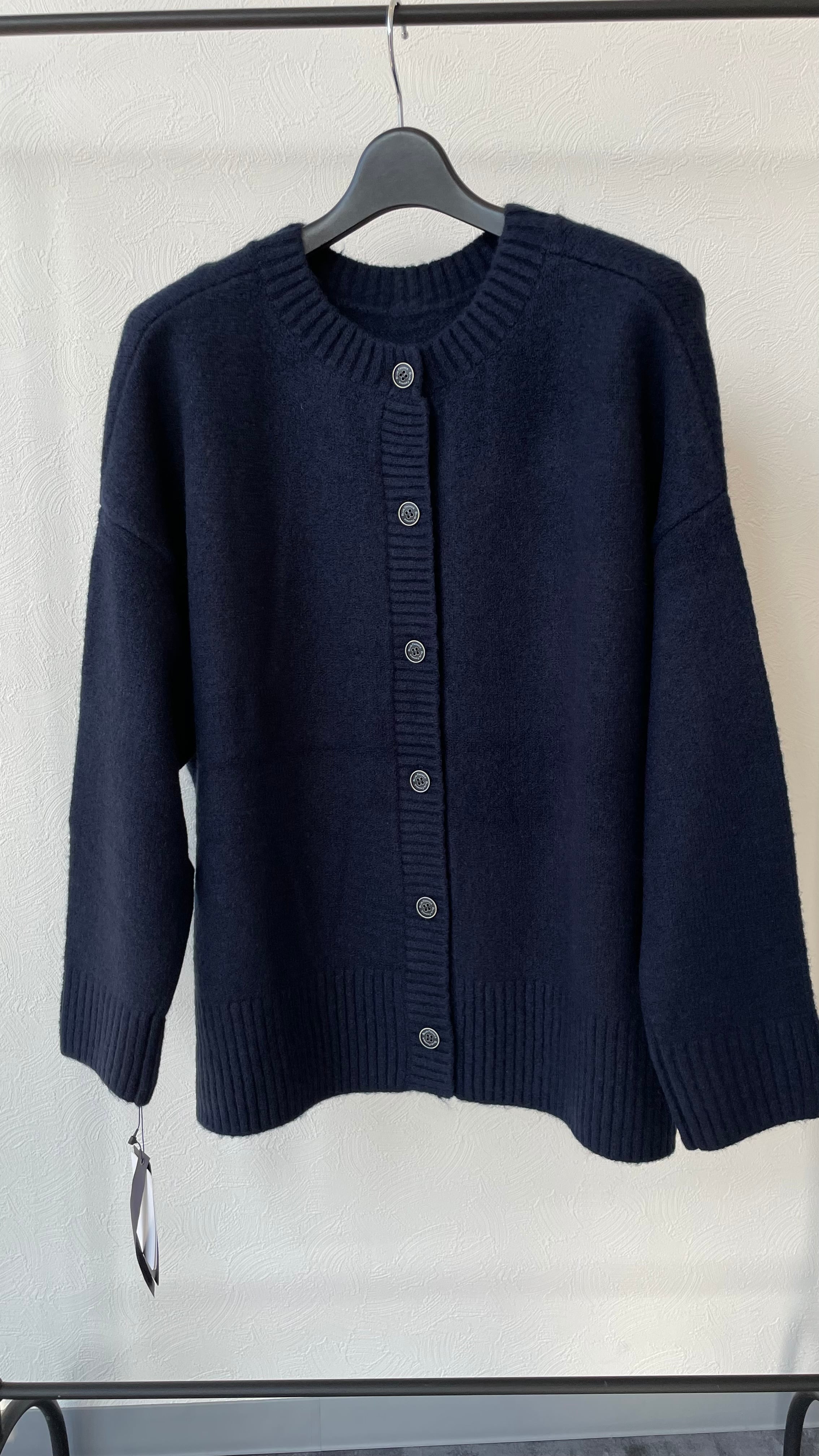 前ボタンにすれば、カーディガンに。前ロゴにすればプルオーバーになります。