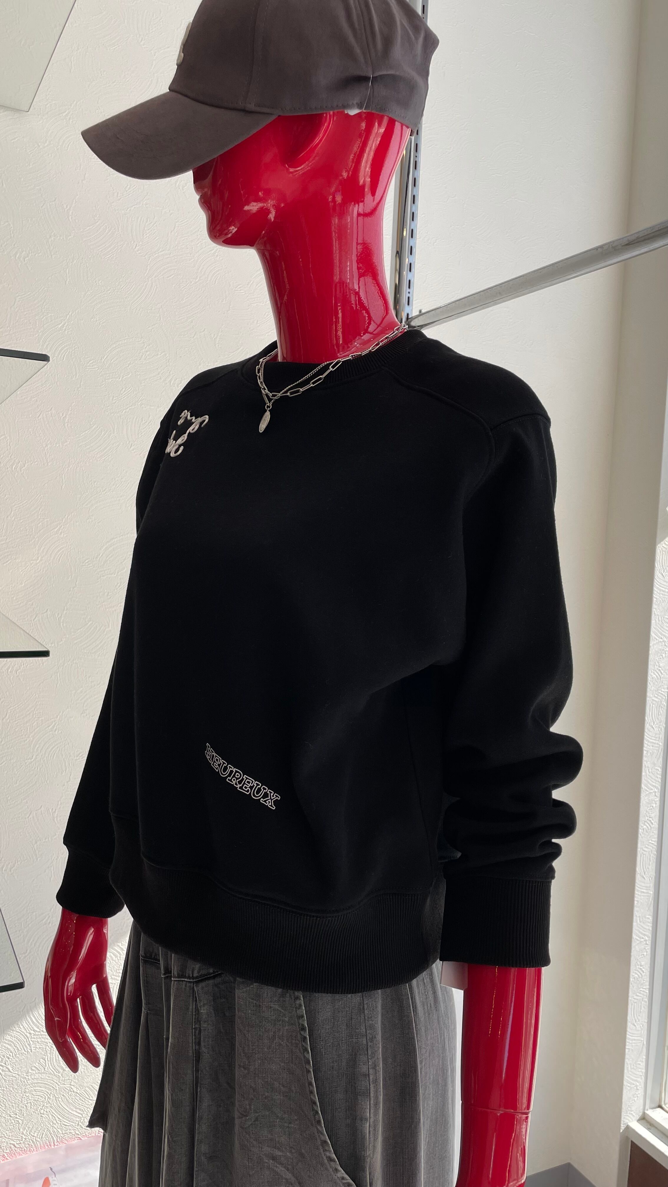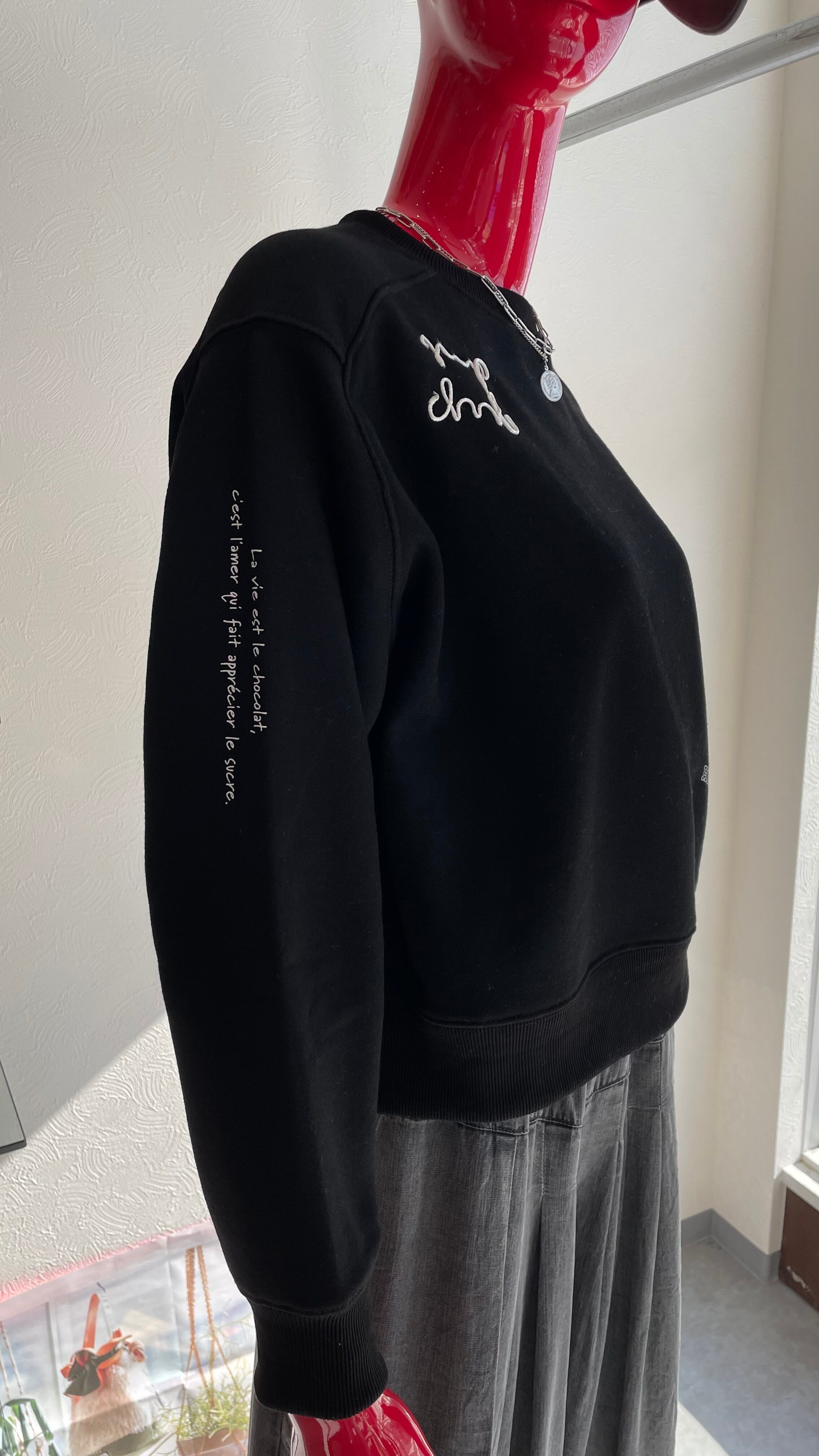 コード刺繍とプリントがデザインされた、裏起毛のスウェットです♪