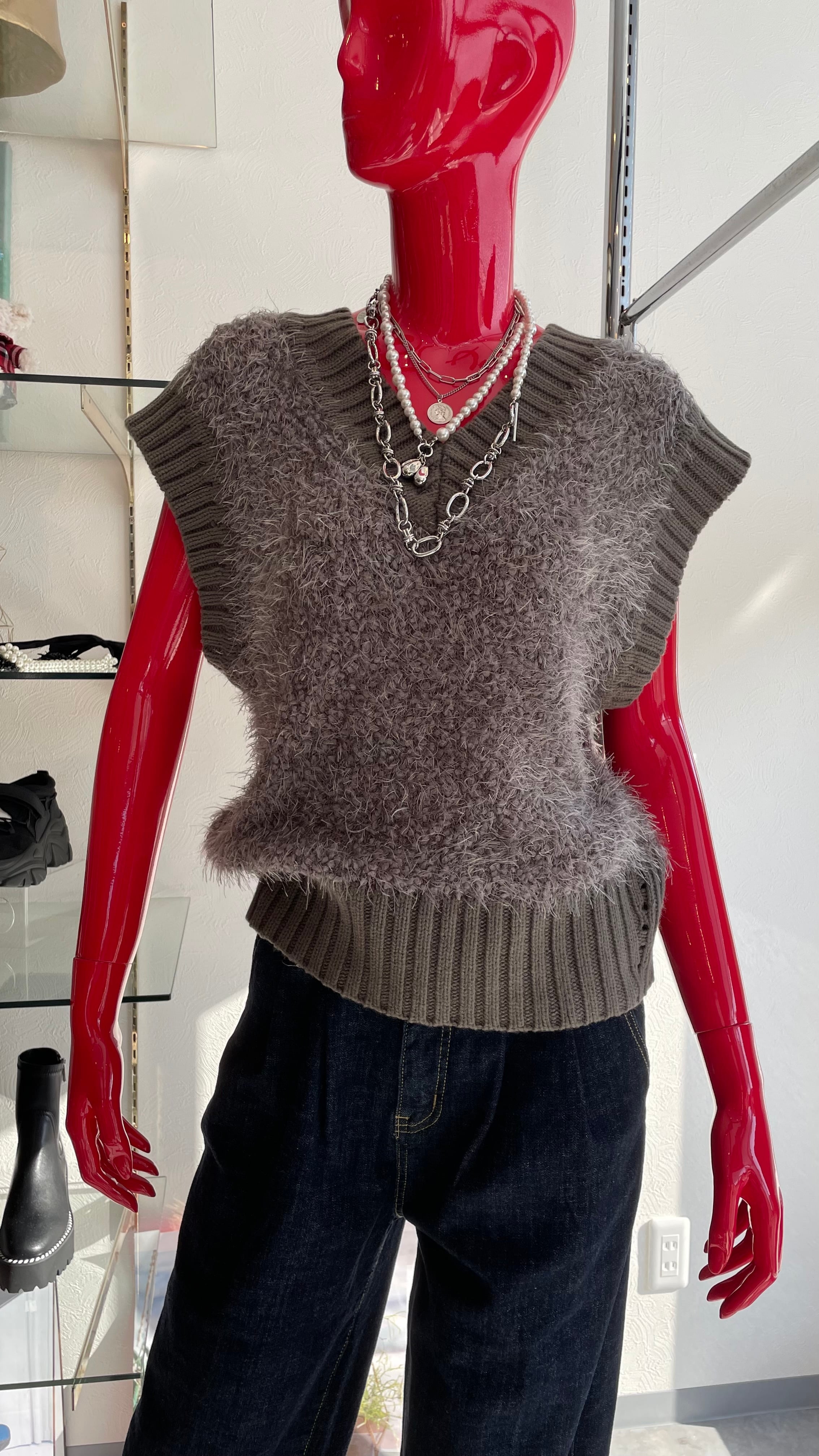 ふんわりとしたシャギーの質感が魅力のシャギーニットベストです♪