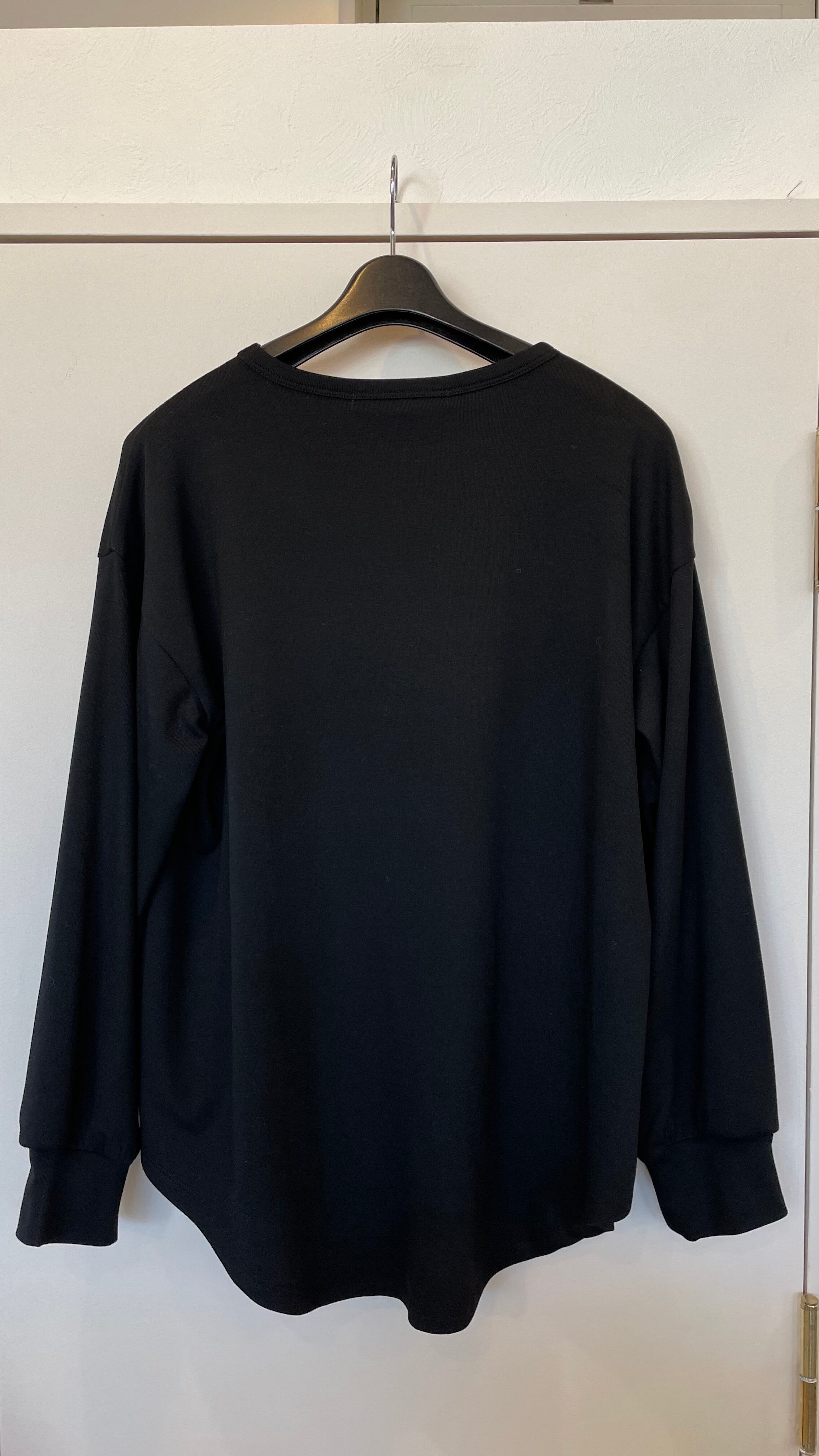 袖先はリブで留めやすく、裾はラウンドになっています。