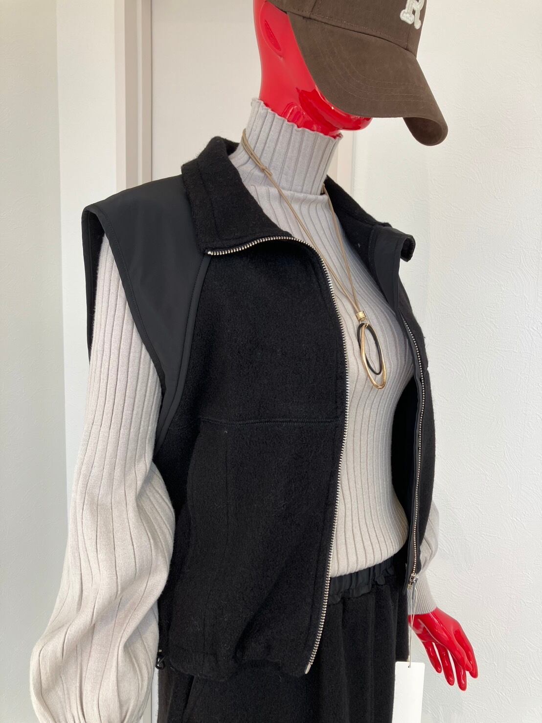 圧縮ニット素材と、シャカシャカポリエステル素材の切り替えベストです♪
