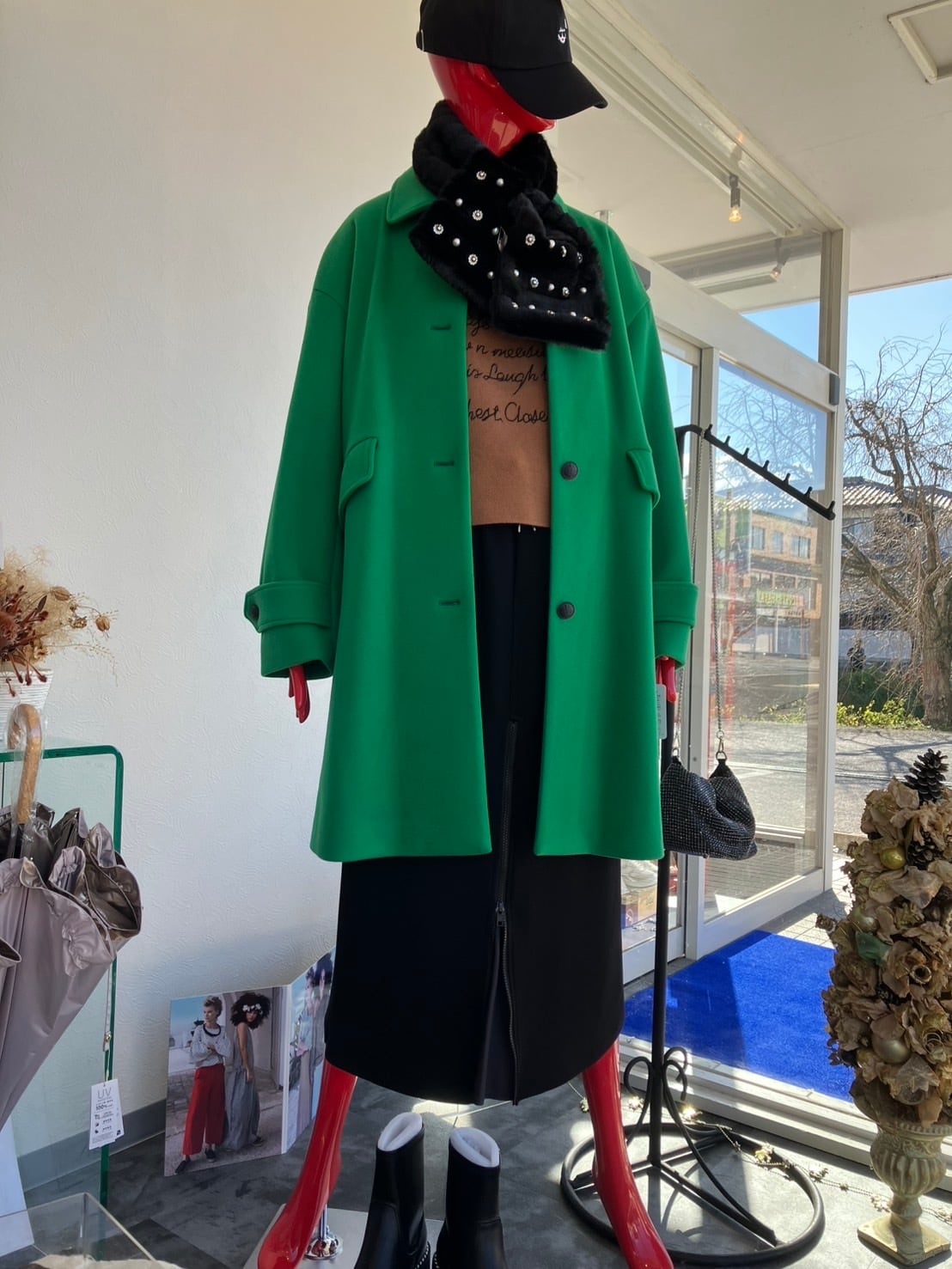 見た目はウールのような上質感がありながら、ポリエステル100%で扱いやすいのが魅力のウールライクコートです♪
