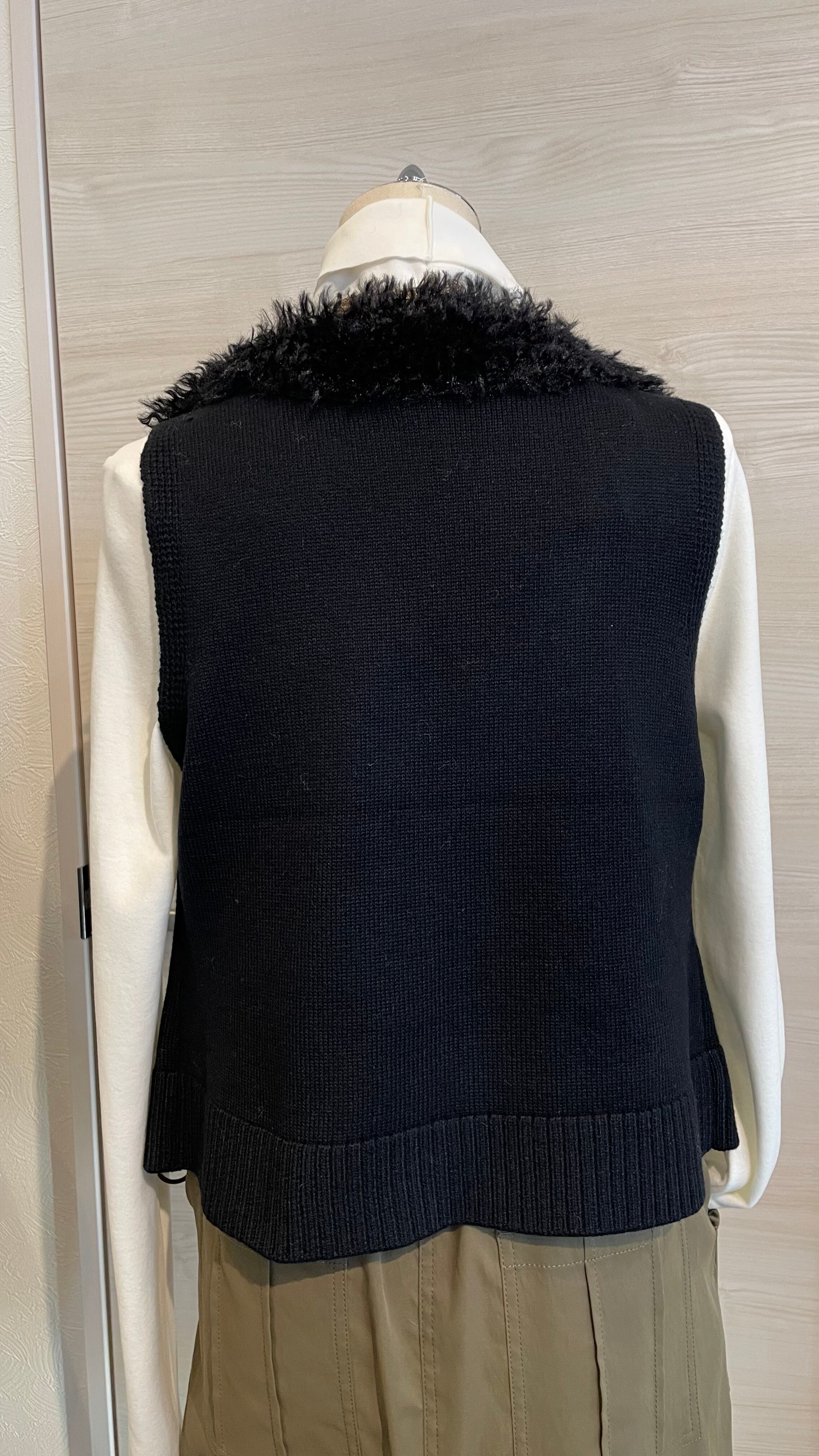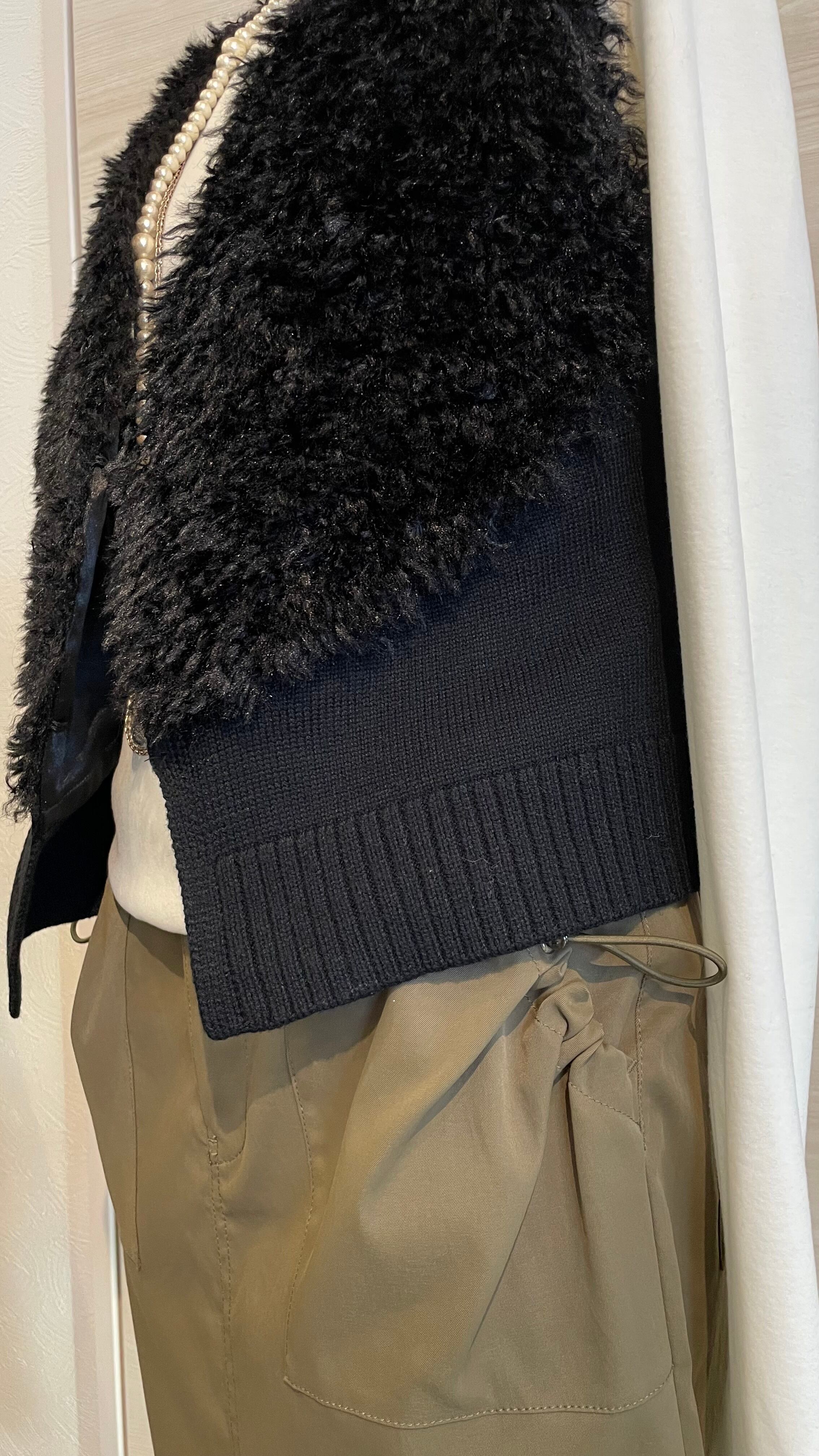 前身頃の上部分は柔らかいエコファー素材で、裾の方はニット素材になり、背中部分はニット素材、肩に近い部分はファーが付きます。室内でのリラックスウェアとしても最適です!