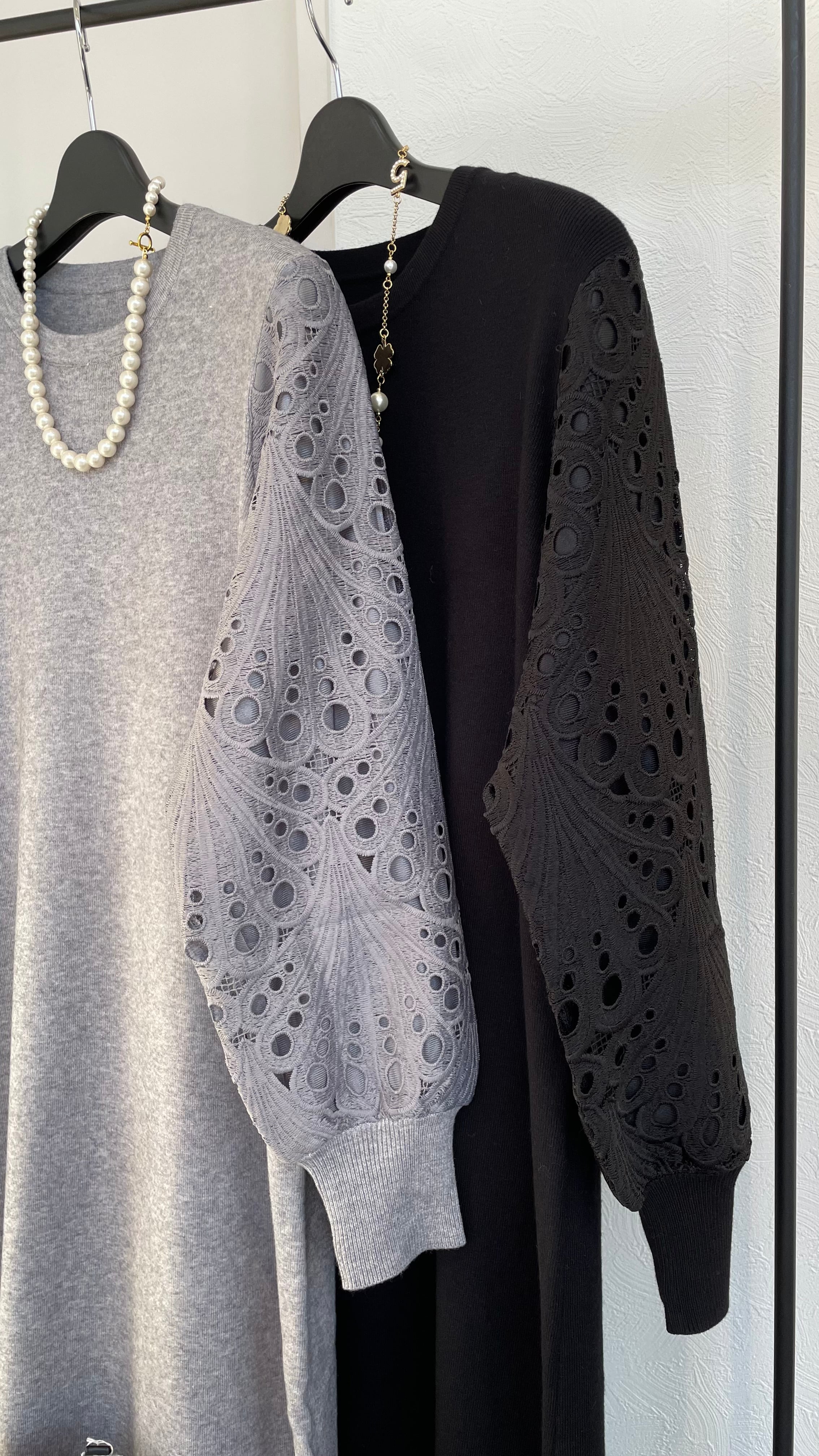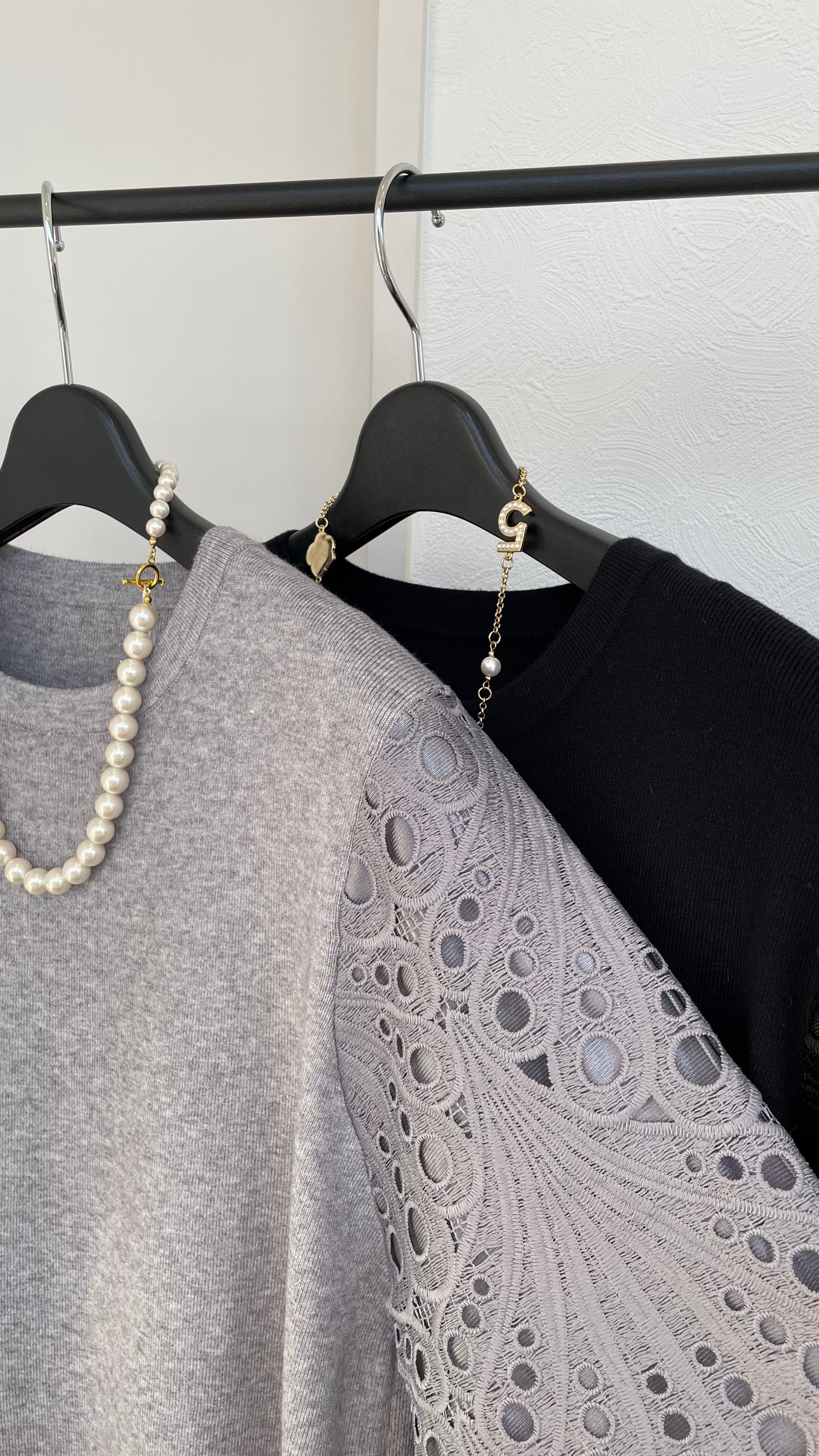 上品なニット素材に、お袖のレースが華やかさをプラスしてくれるので、1枚で着るだけでイベント感のあるスタイルに仕上がります◎