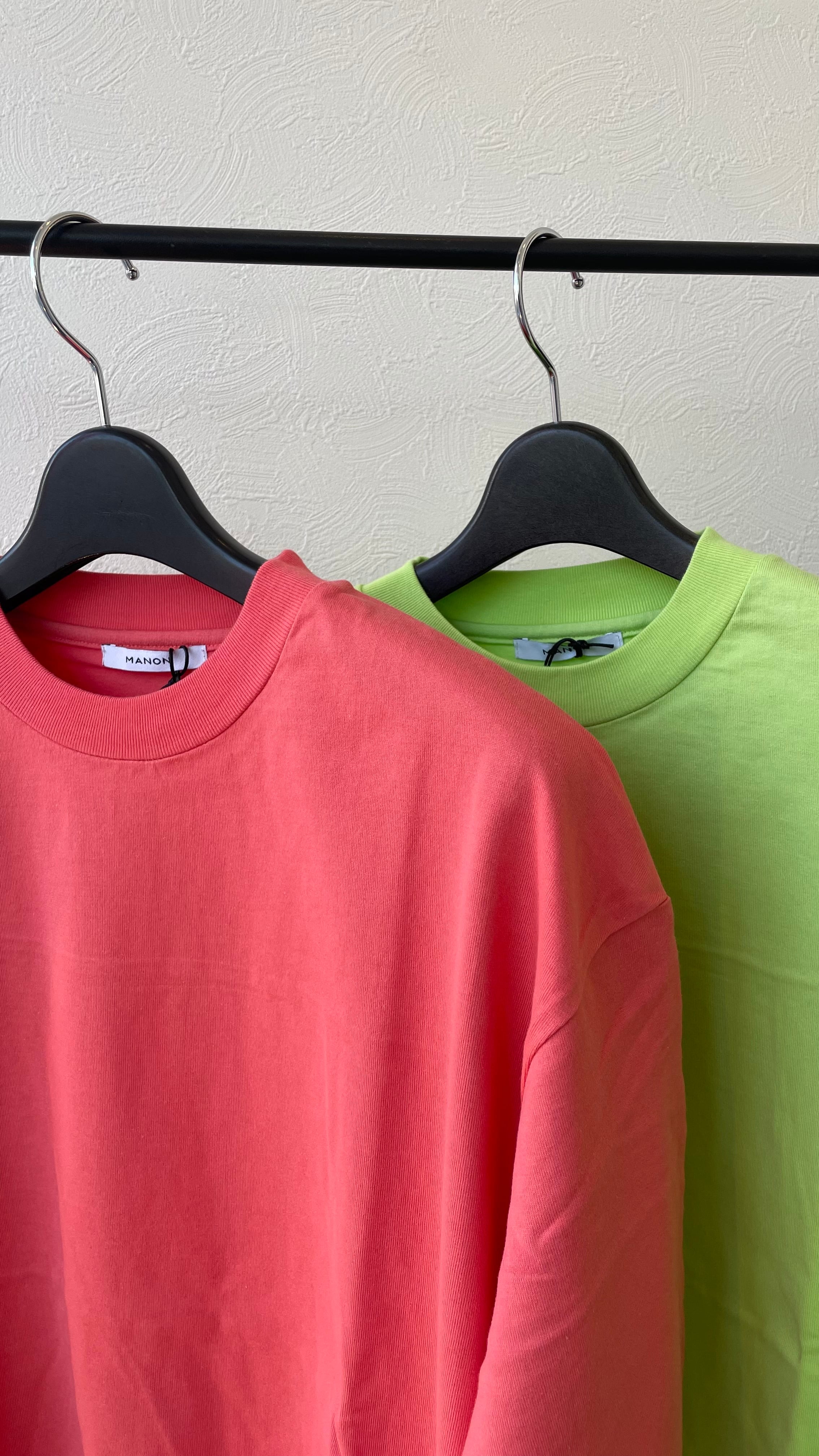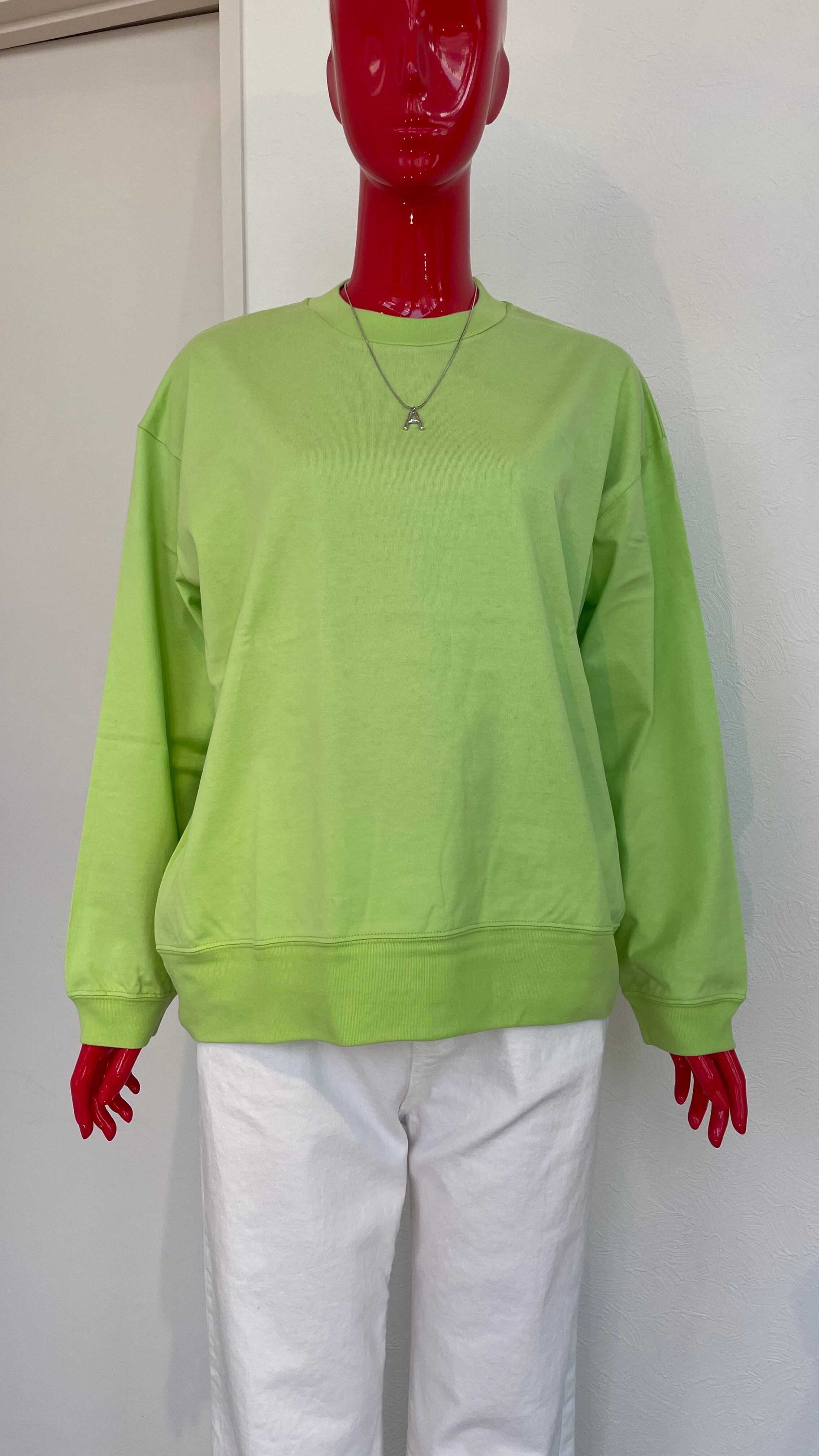 クルーネックで身幅、肩幅にゆとりをもたせ、リラックスシルエットのシルエットです◎