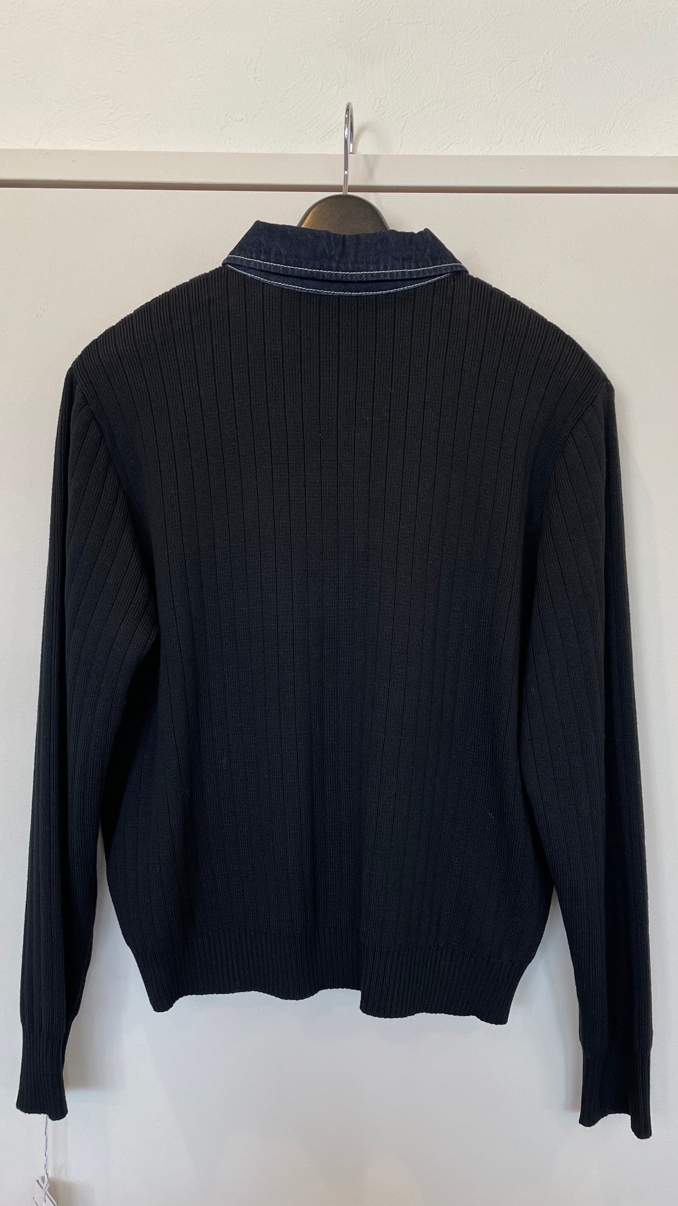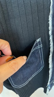 お色は濃いインディゴにブラックのニット素材です。