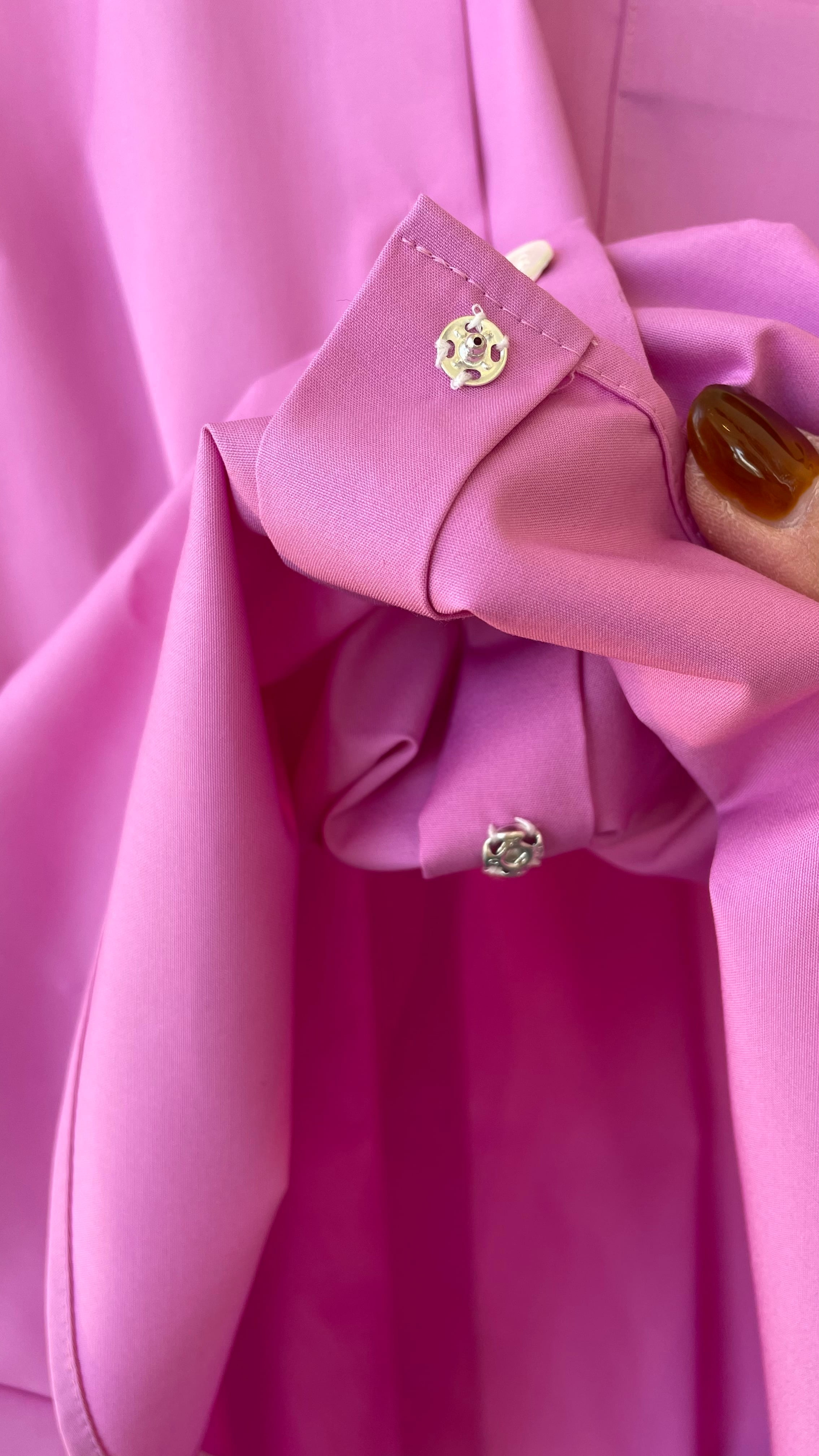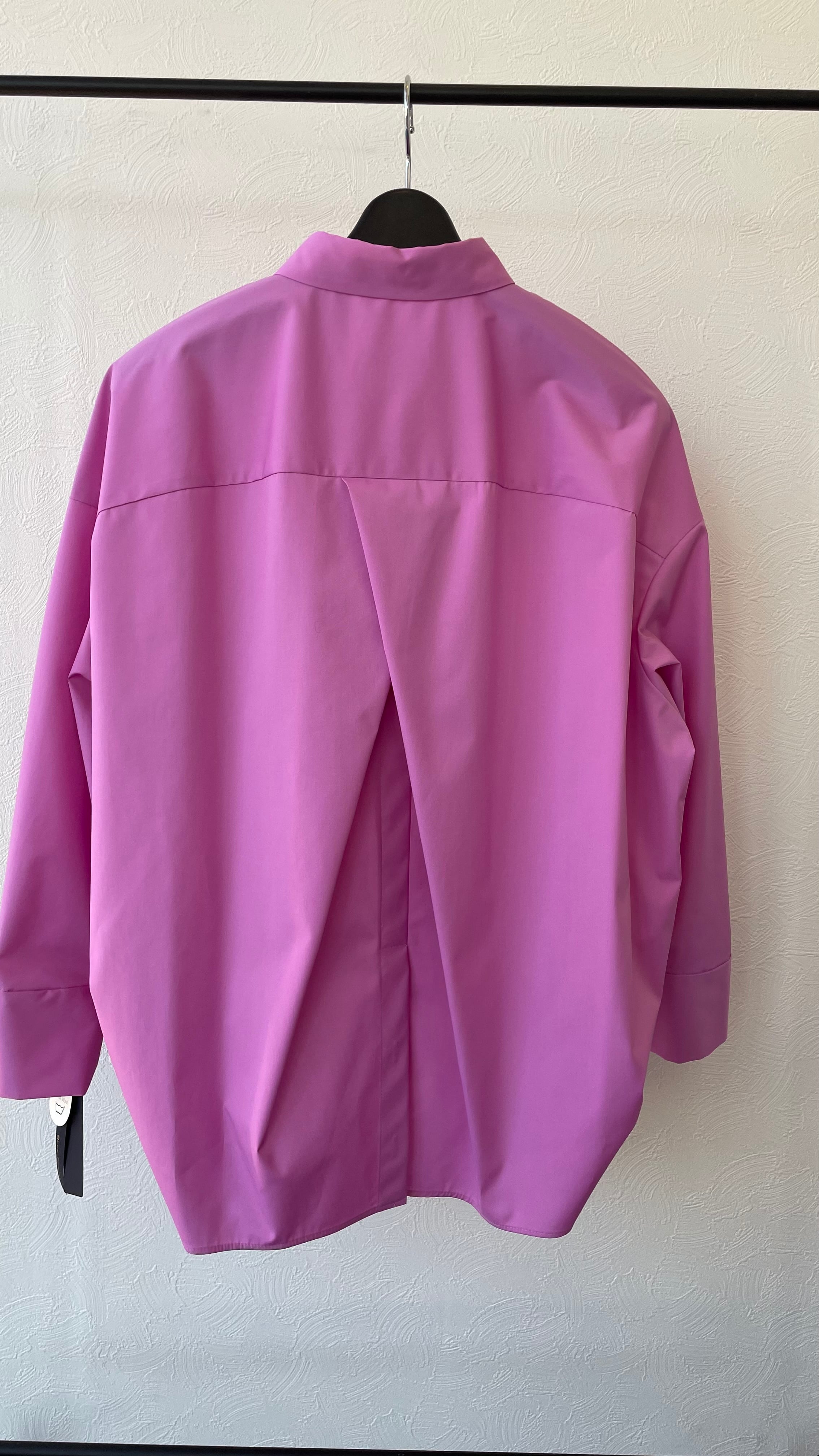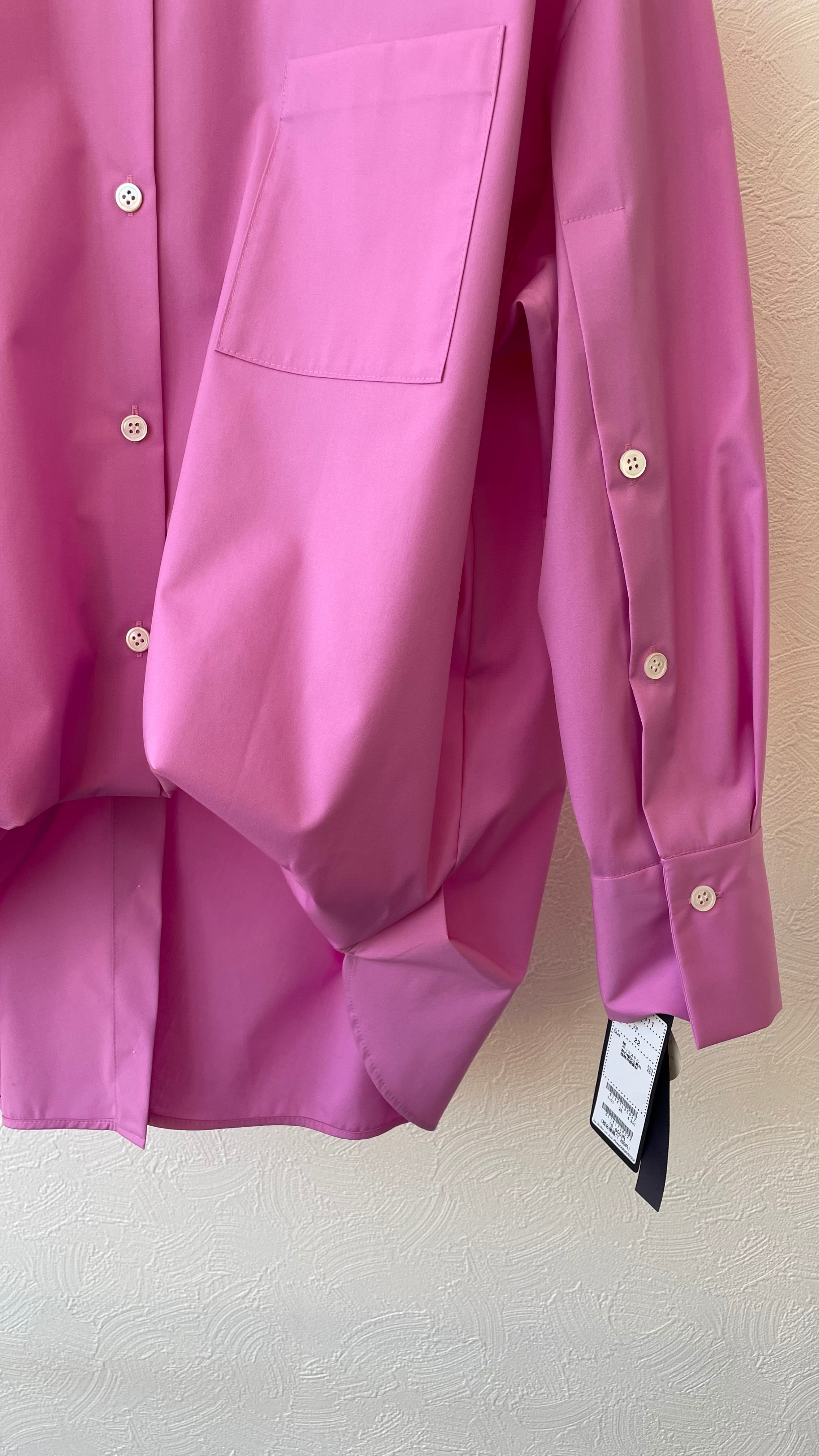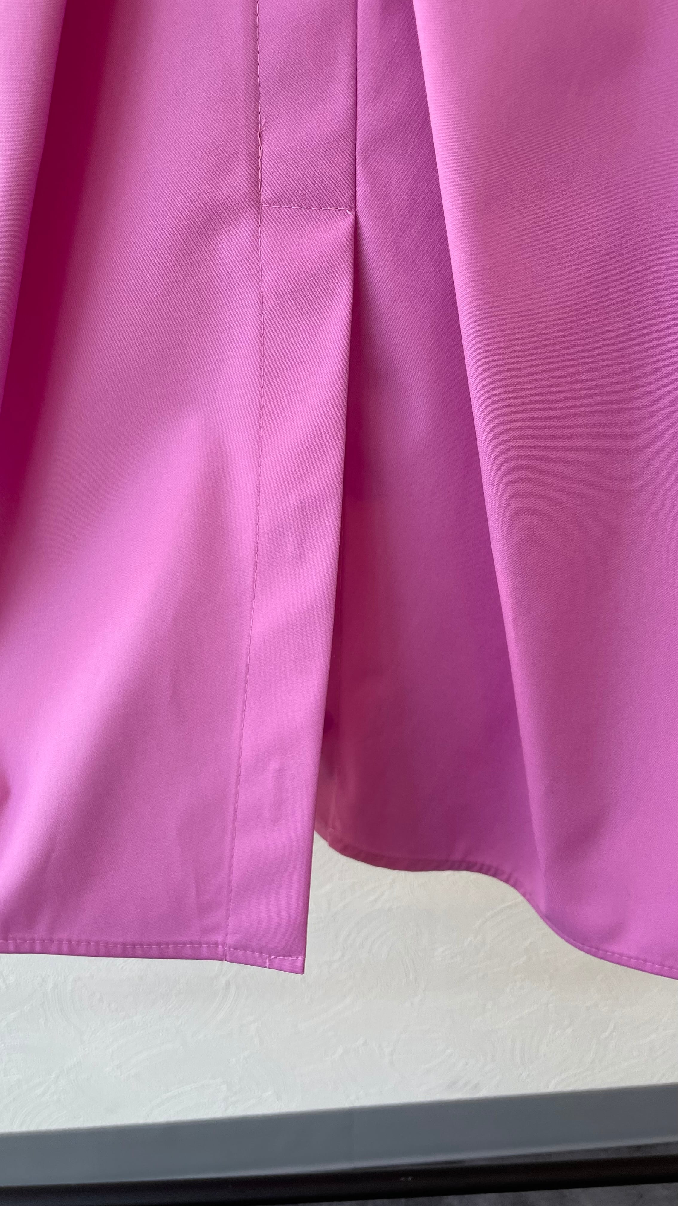 後ろにタックが大きくはいり、裾にはボタンでスリット見えします。ボタンは隠しボタンになり綺麗なシルエットです。