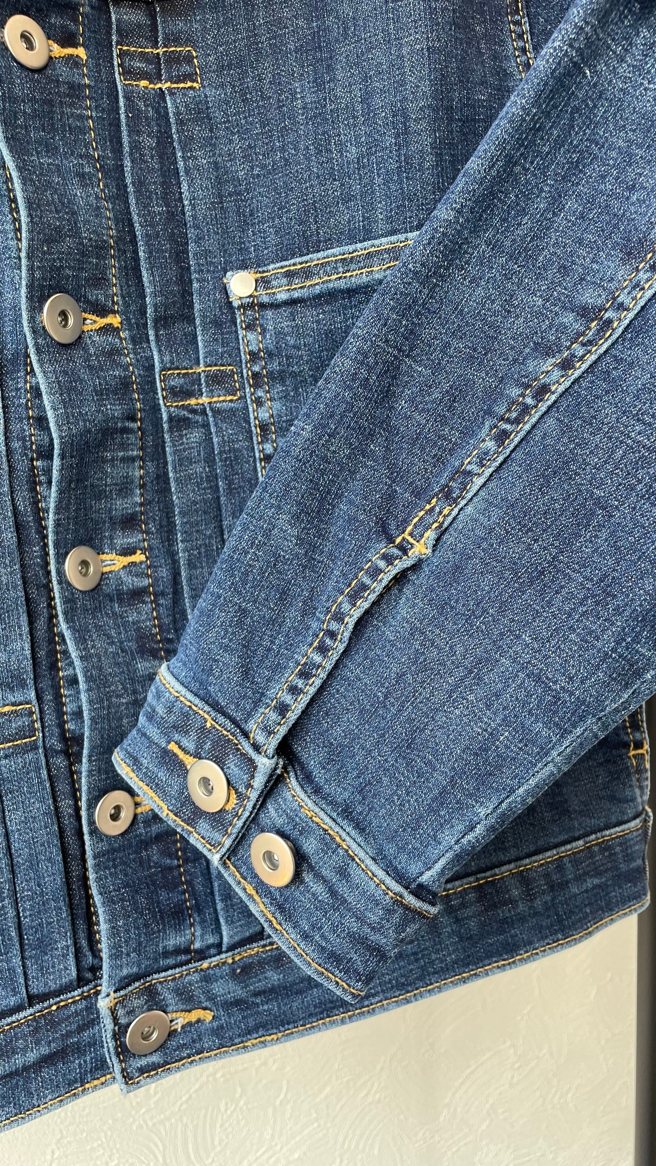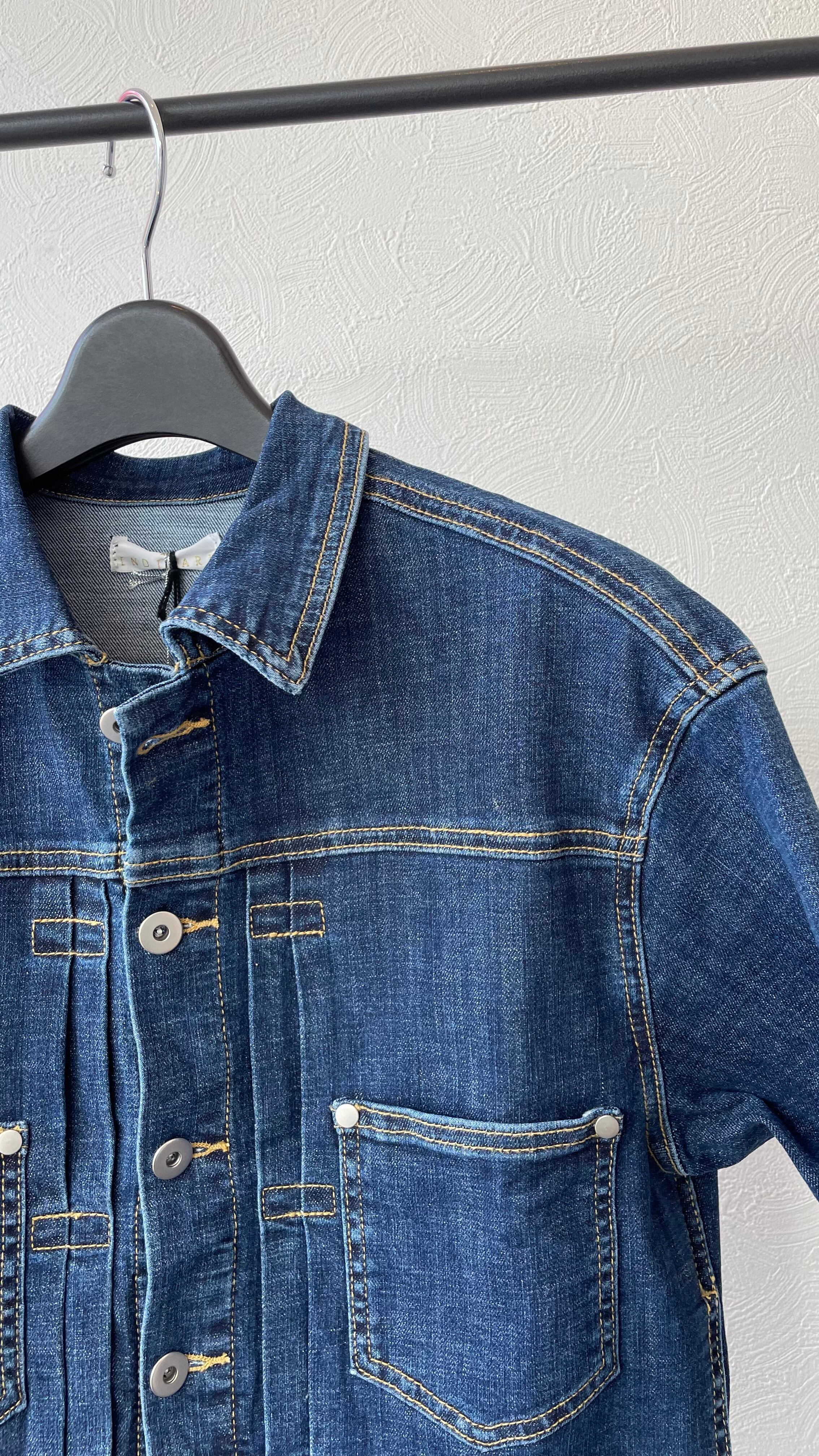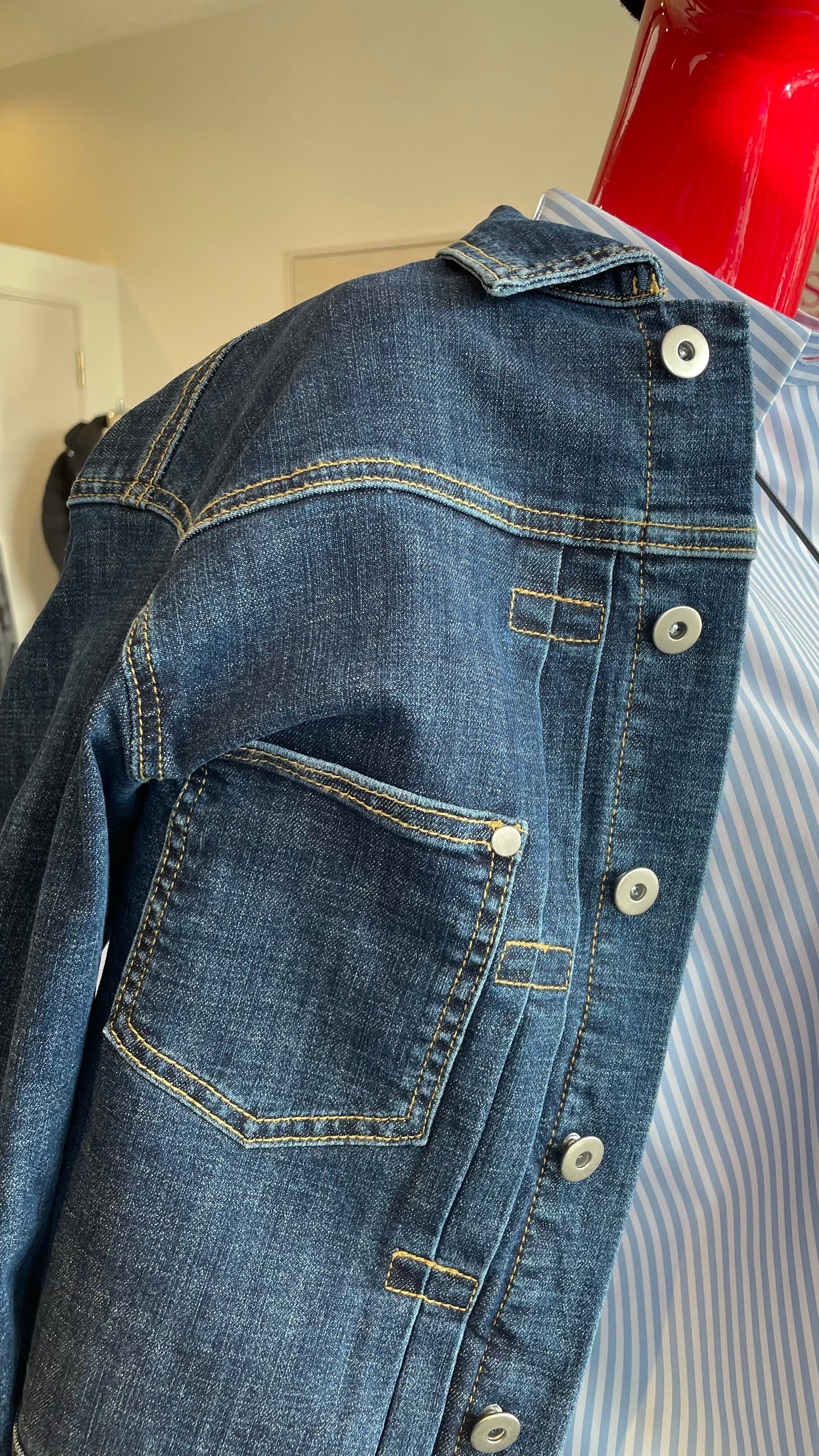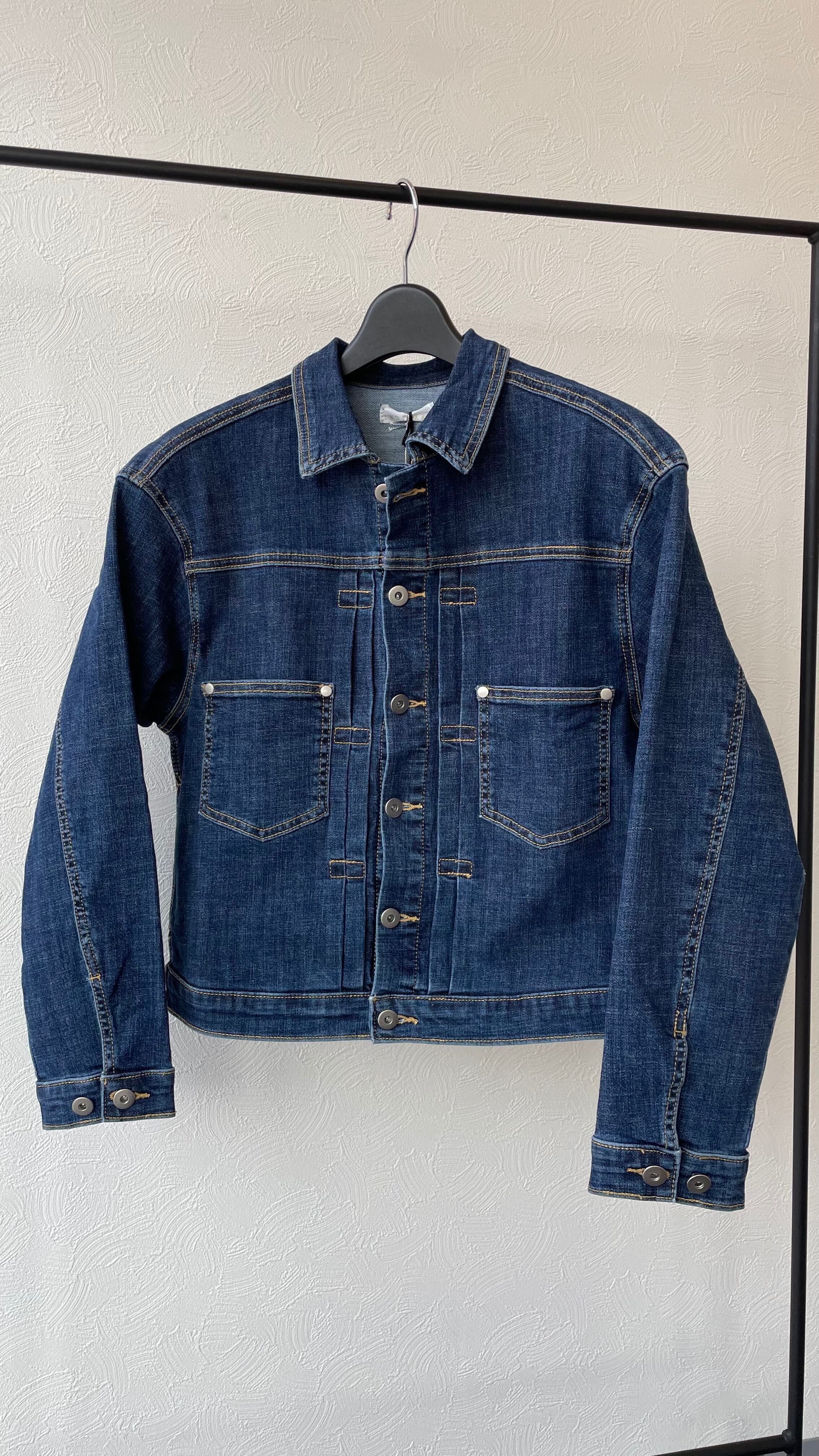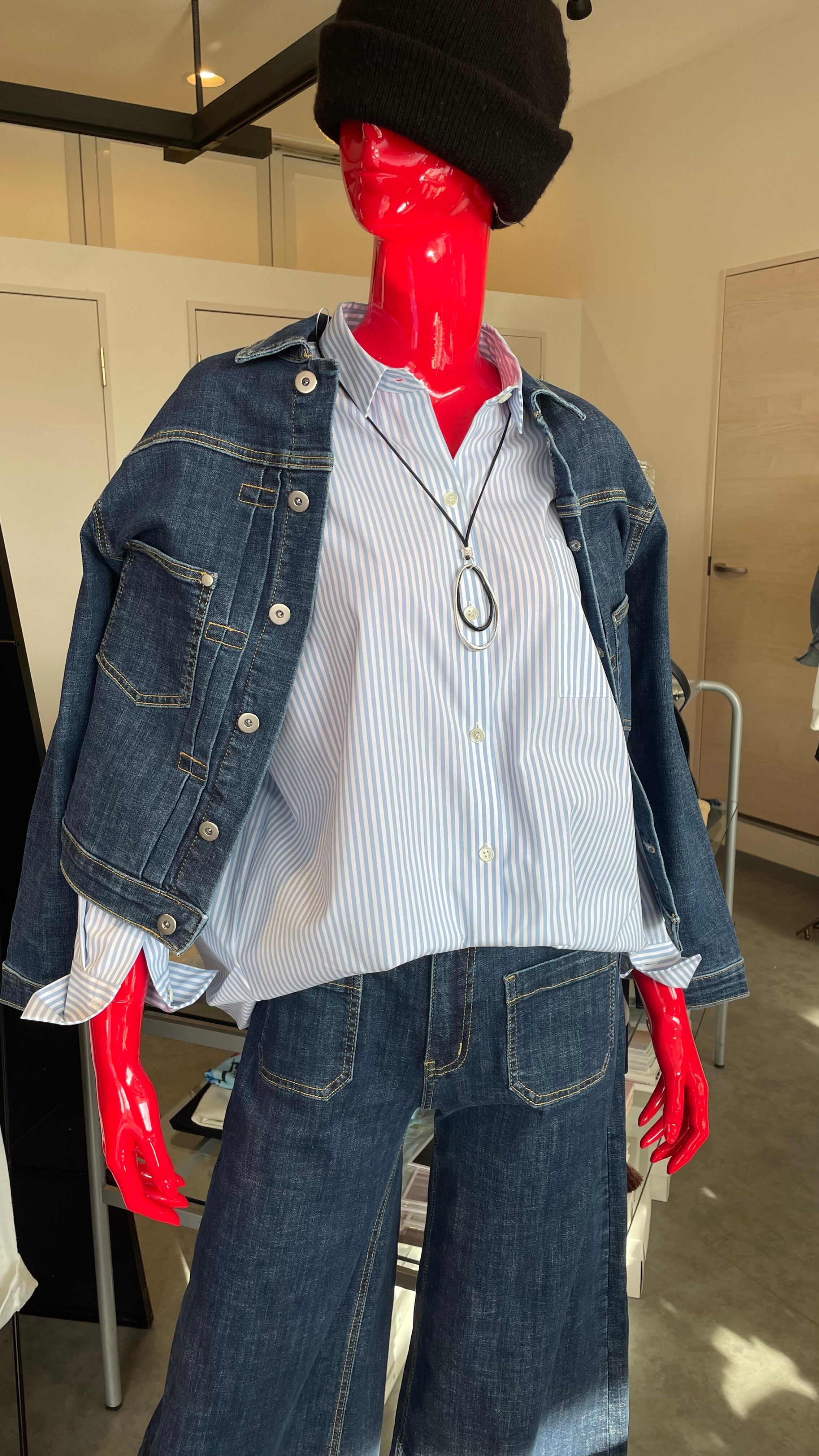 トラッカージャケットならではのカッティングが、スタイリングにアクセントを加えます。