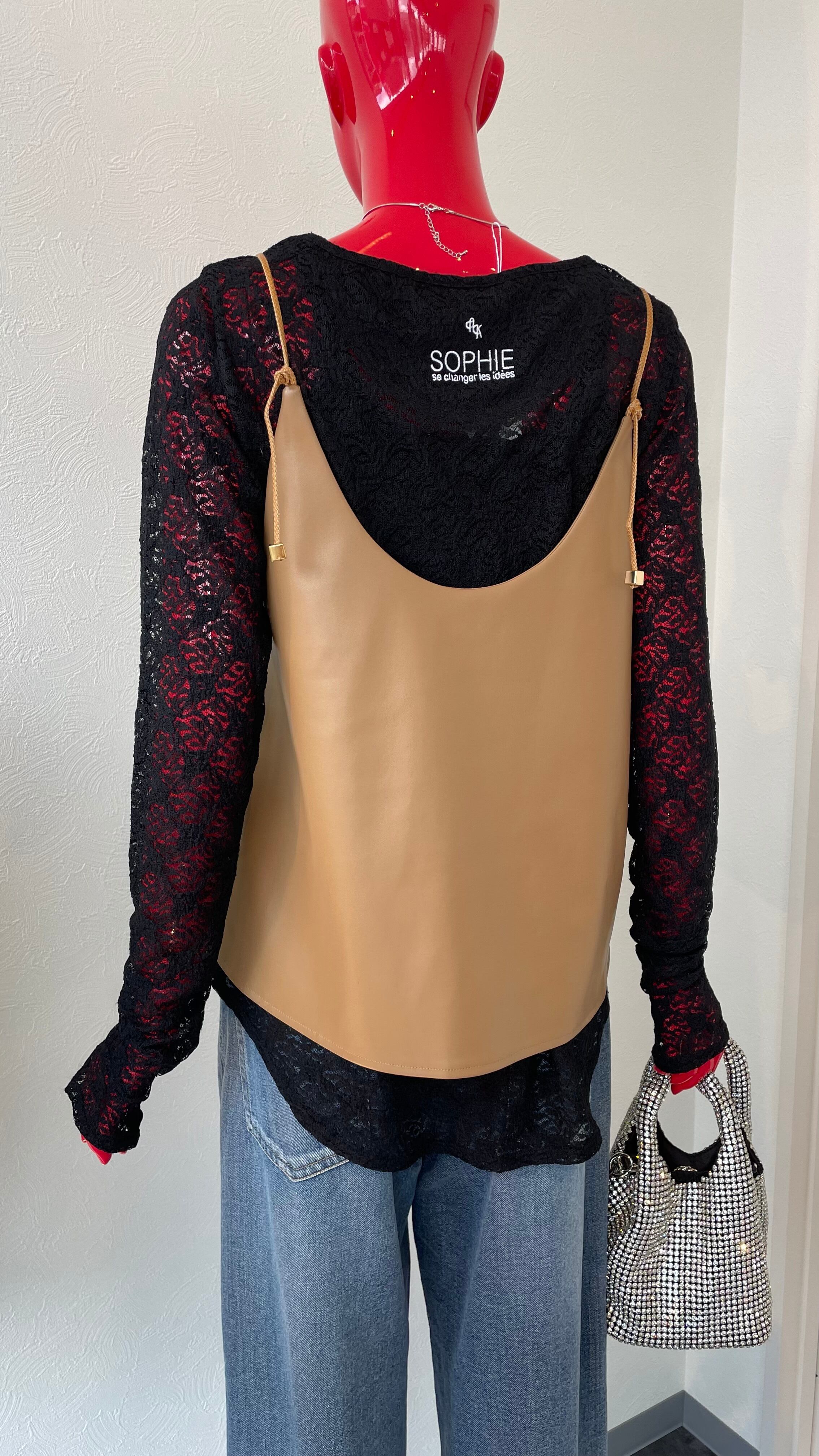 カジュアルさと綺麗め混合のオシャレなレーストップスです♪