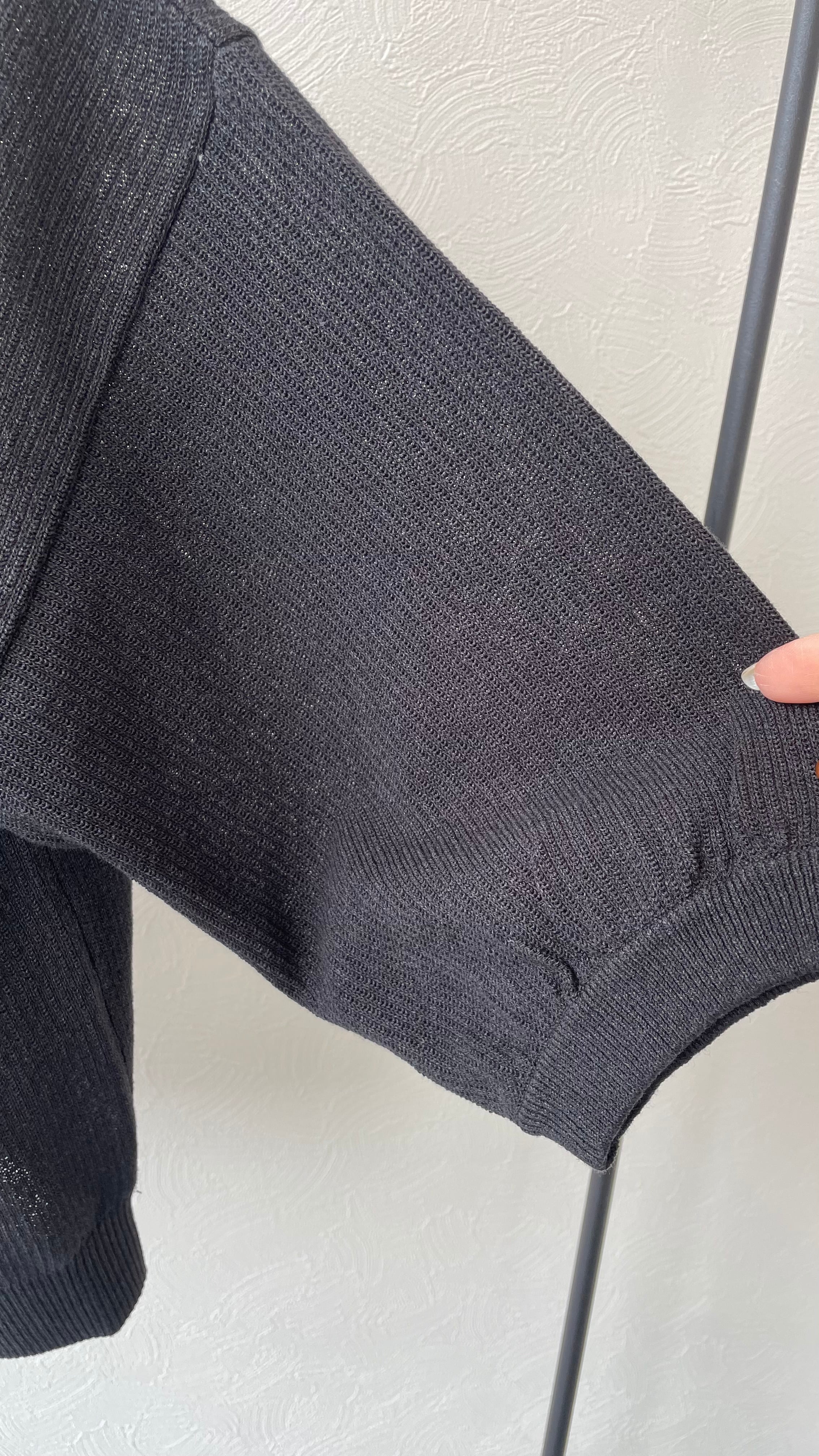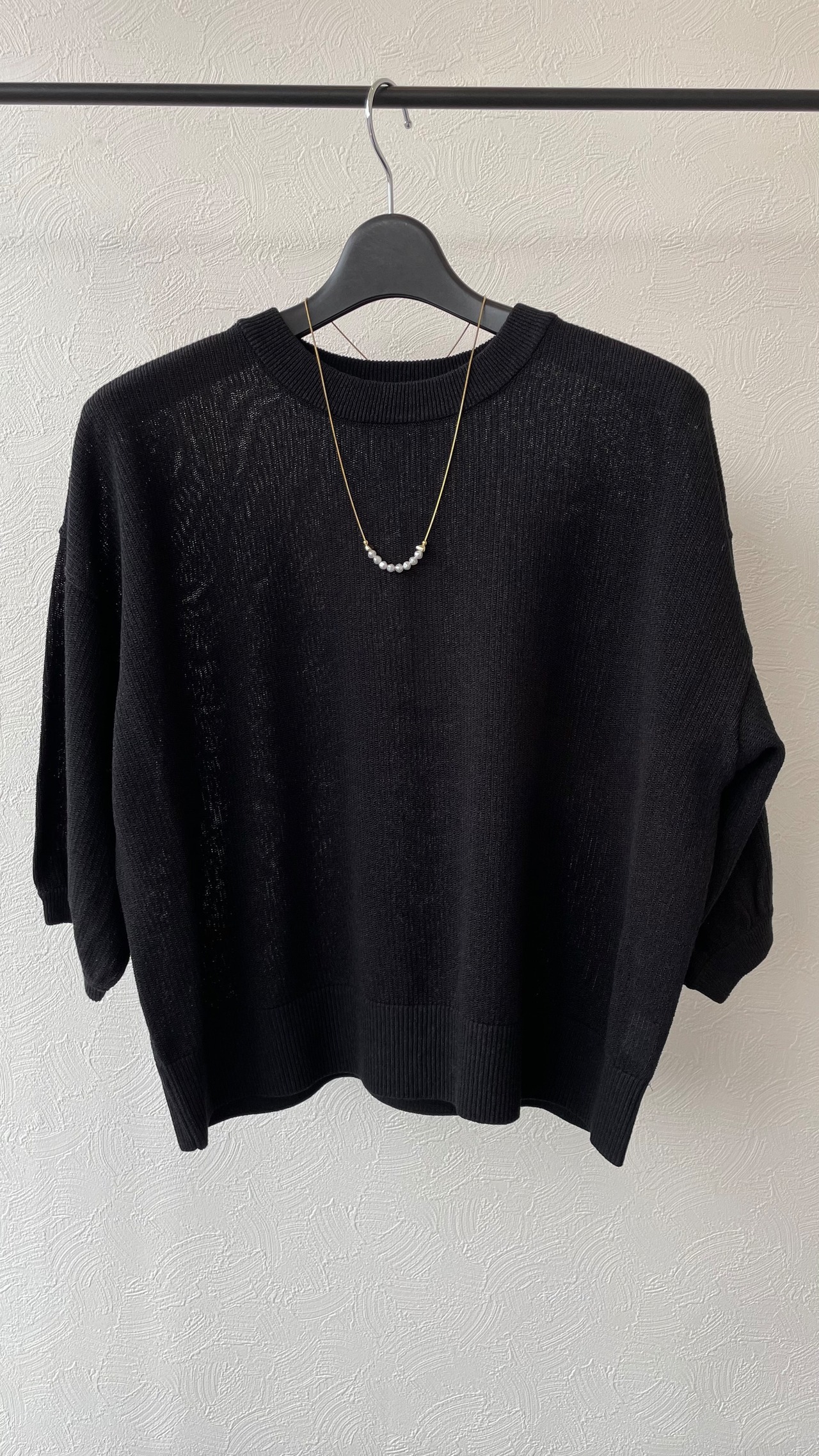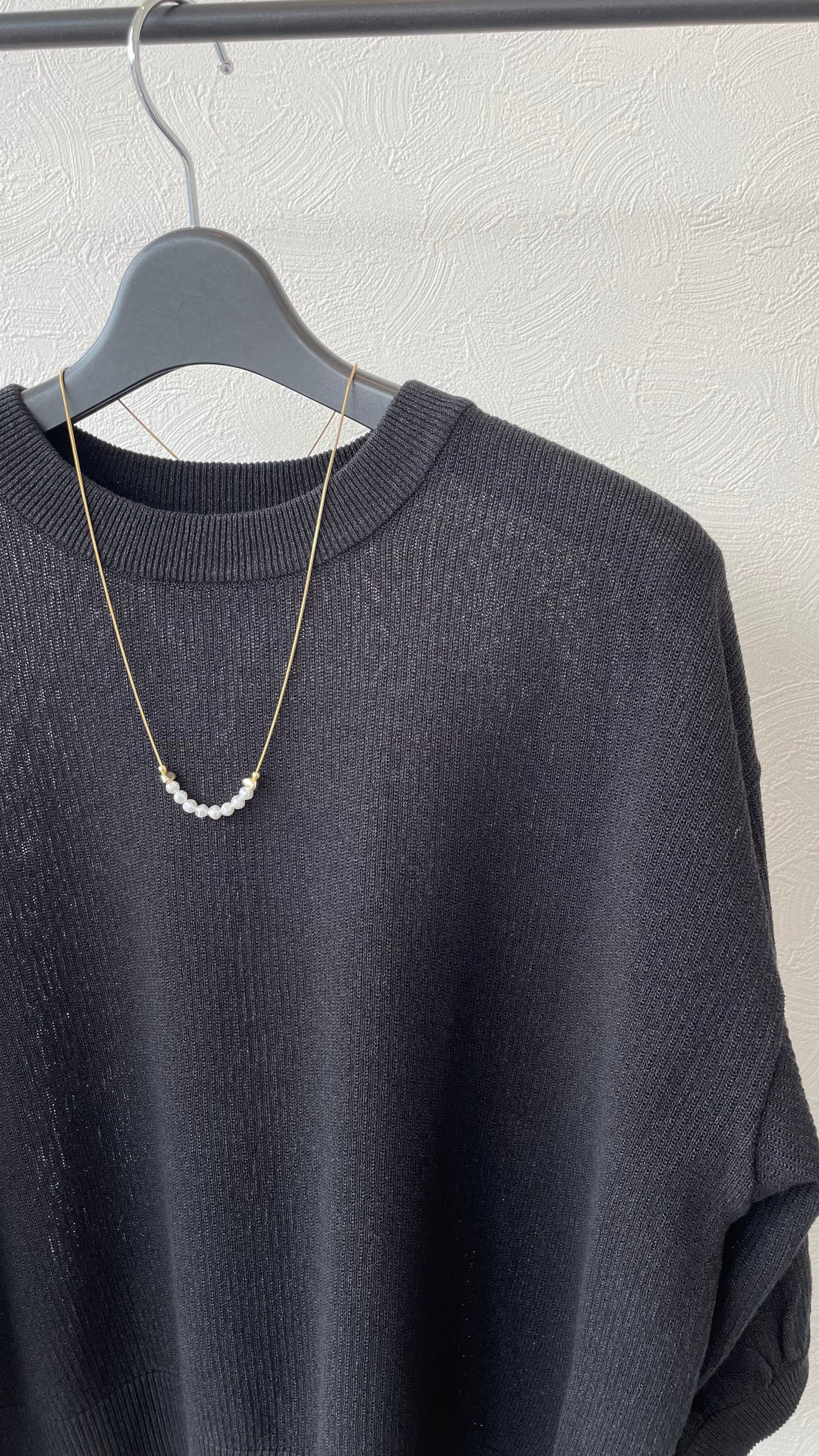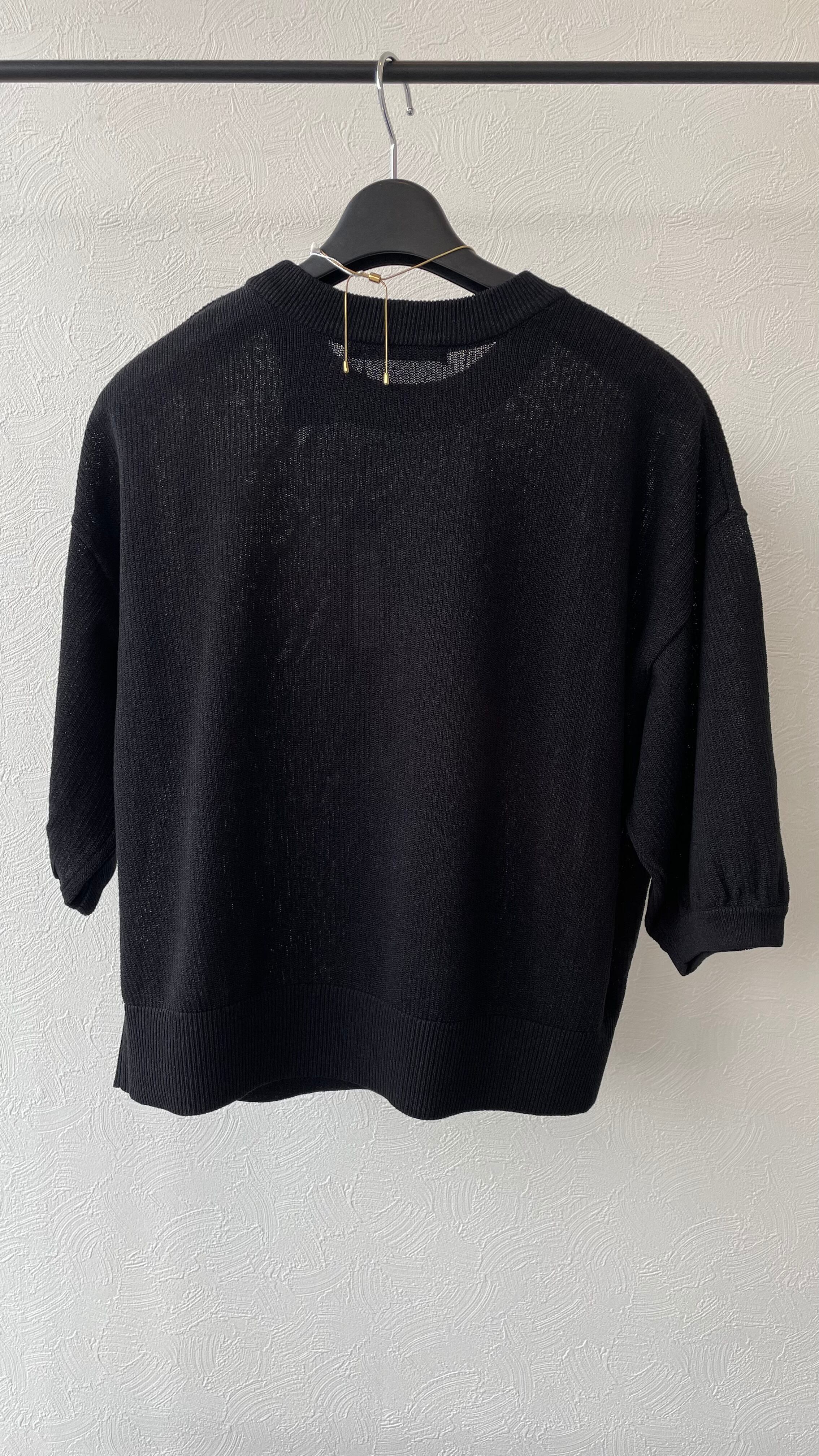 お袖がふんわりとしたラインですが、和紙混素材なので甘すぎないちょうどいい塩梅のニットです。