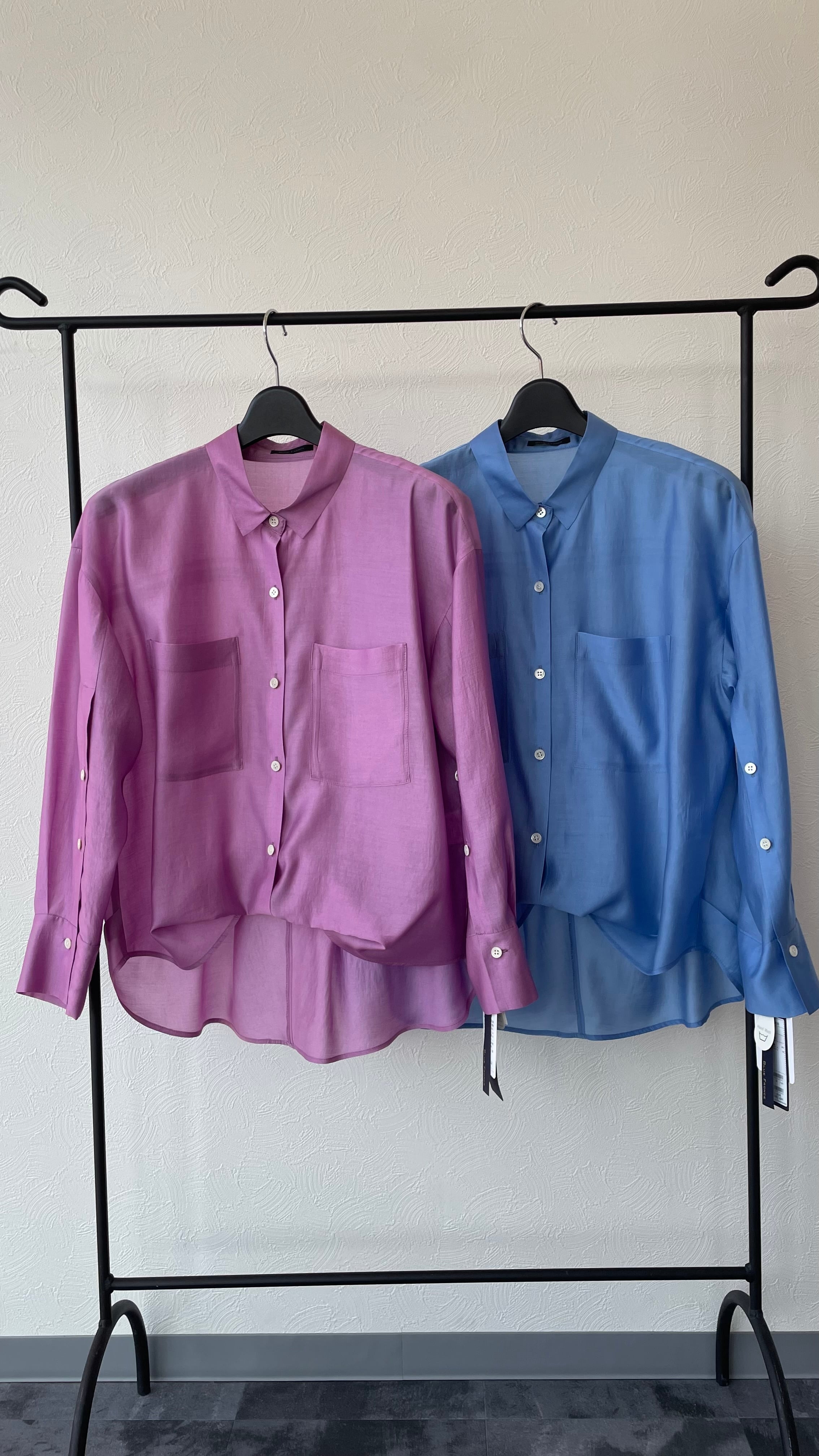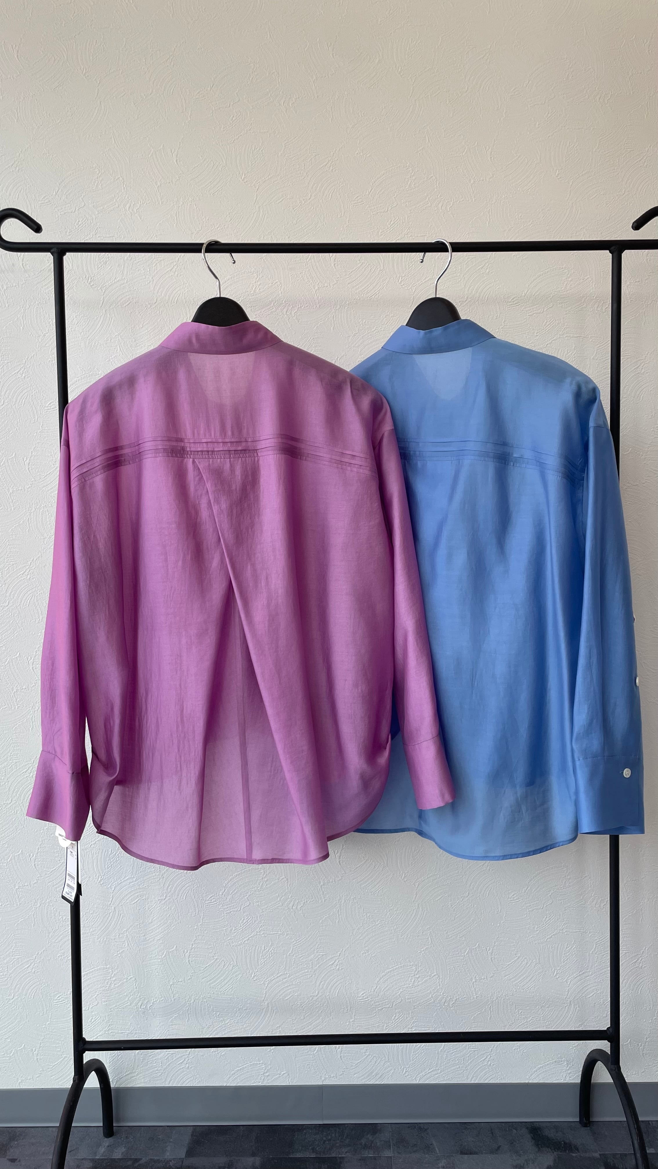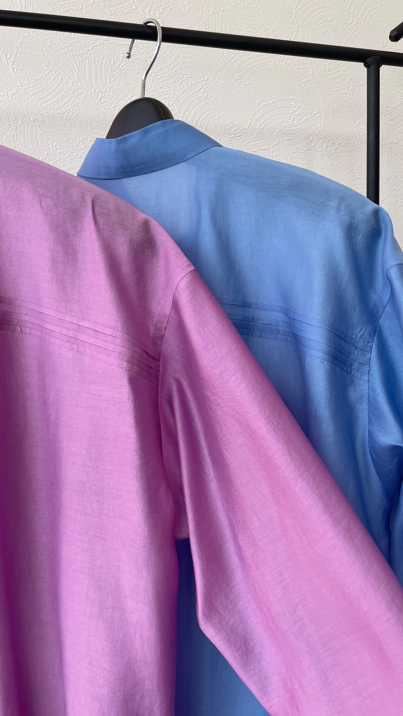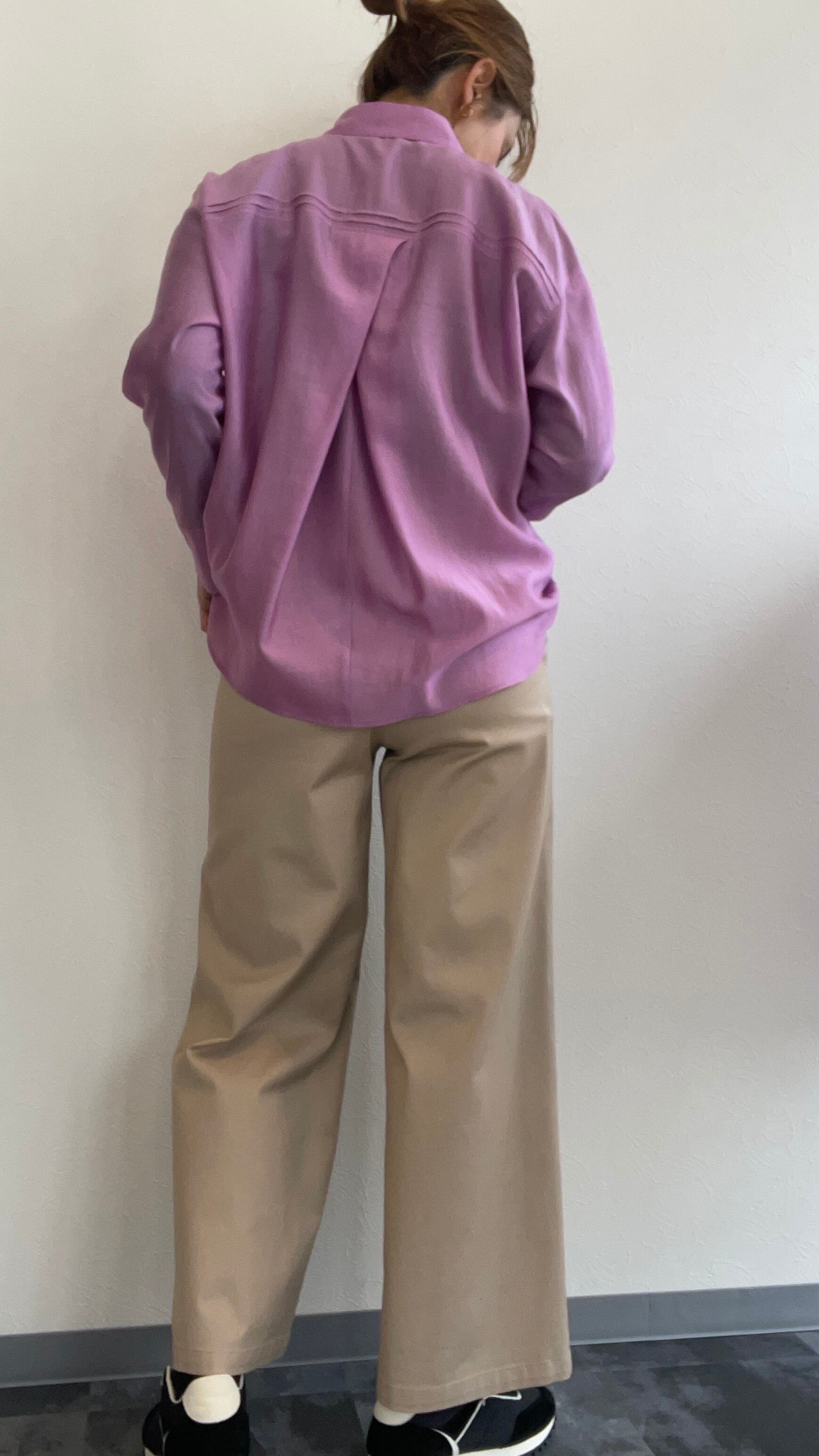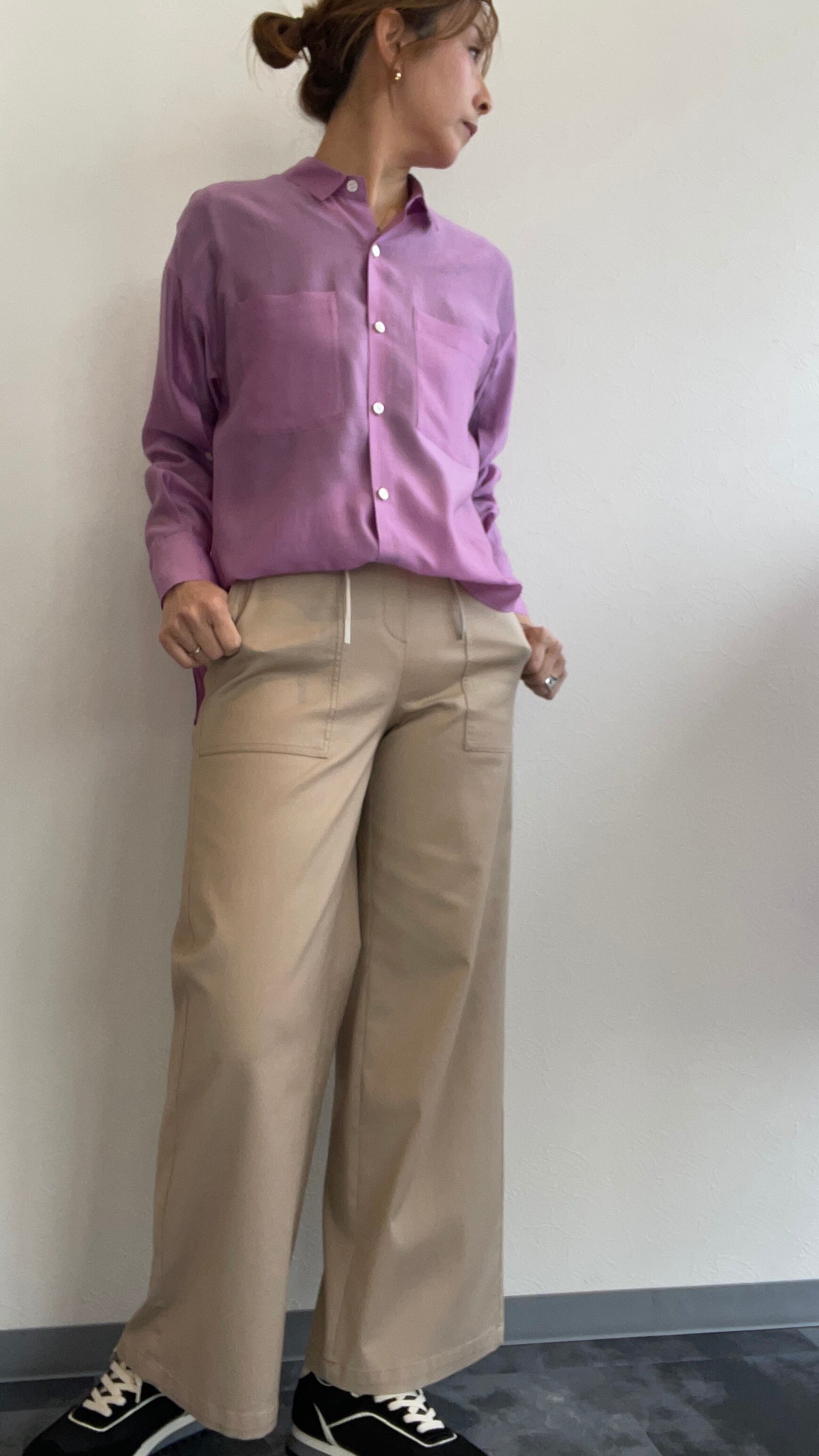 小ぶりな襟がスッキリした印象の大人のオーバーシャツブラウスです。