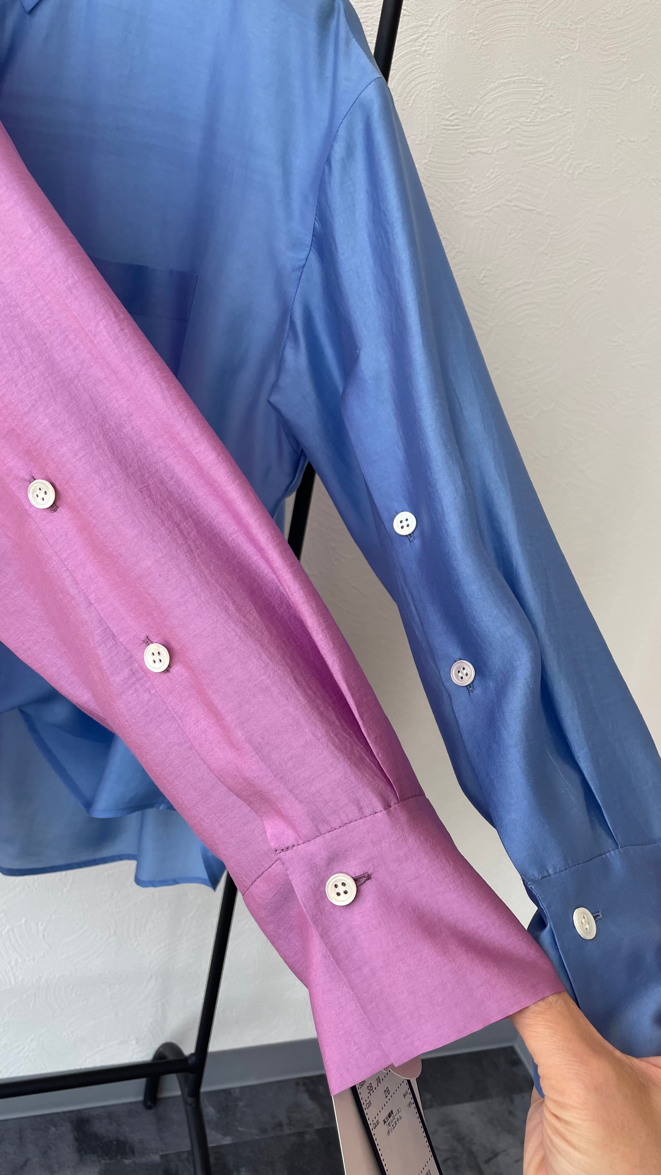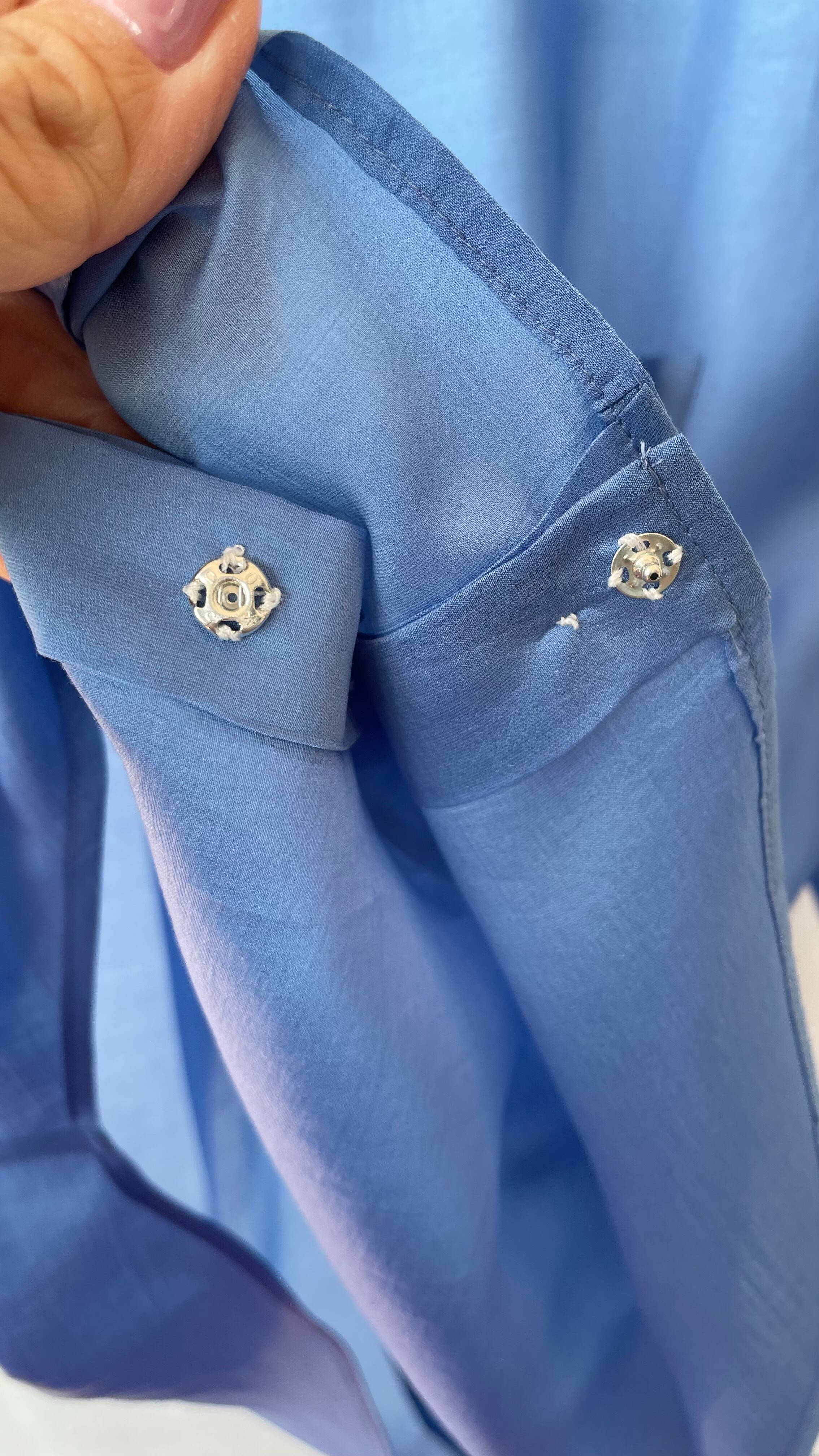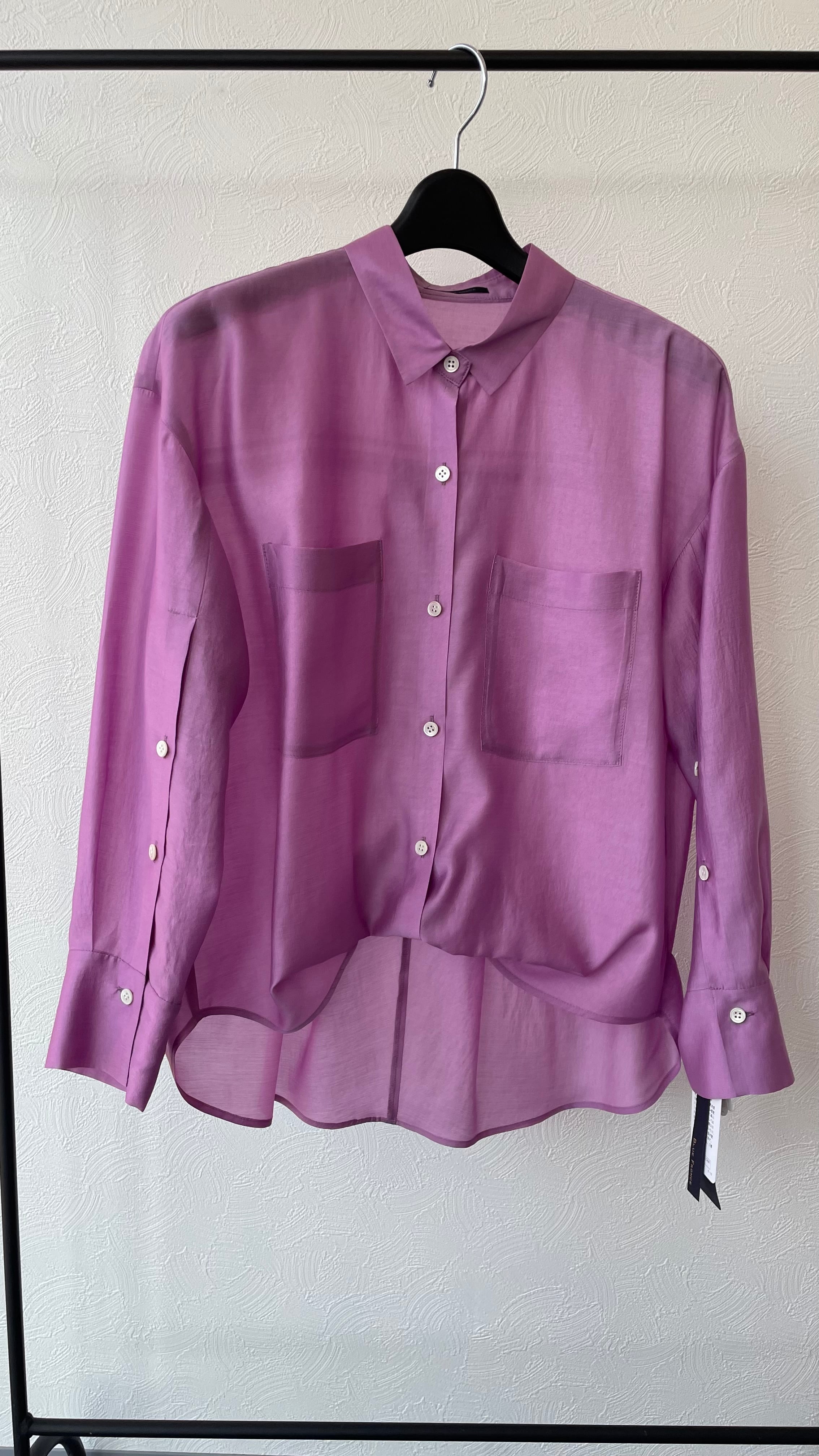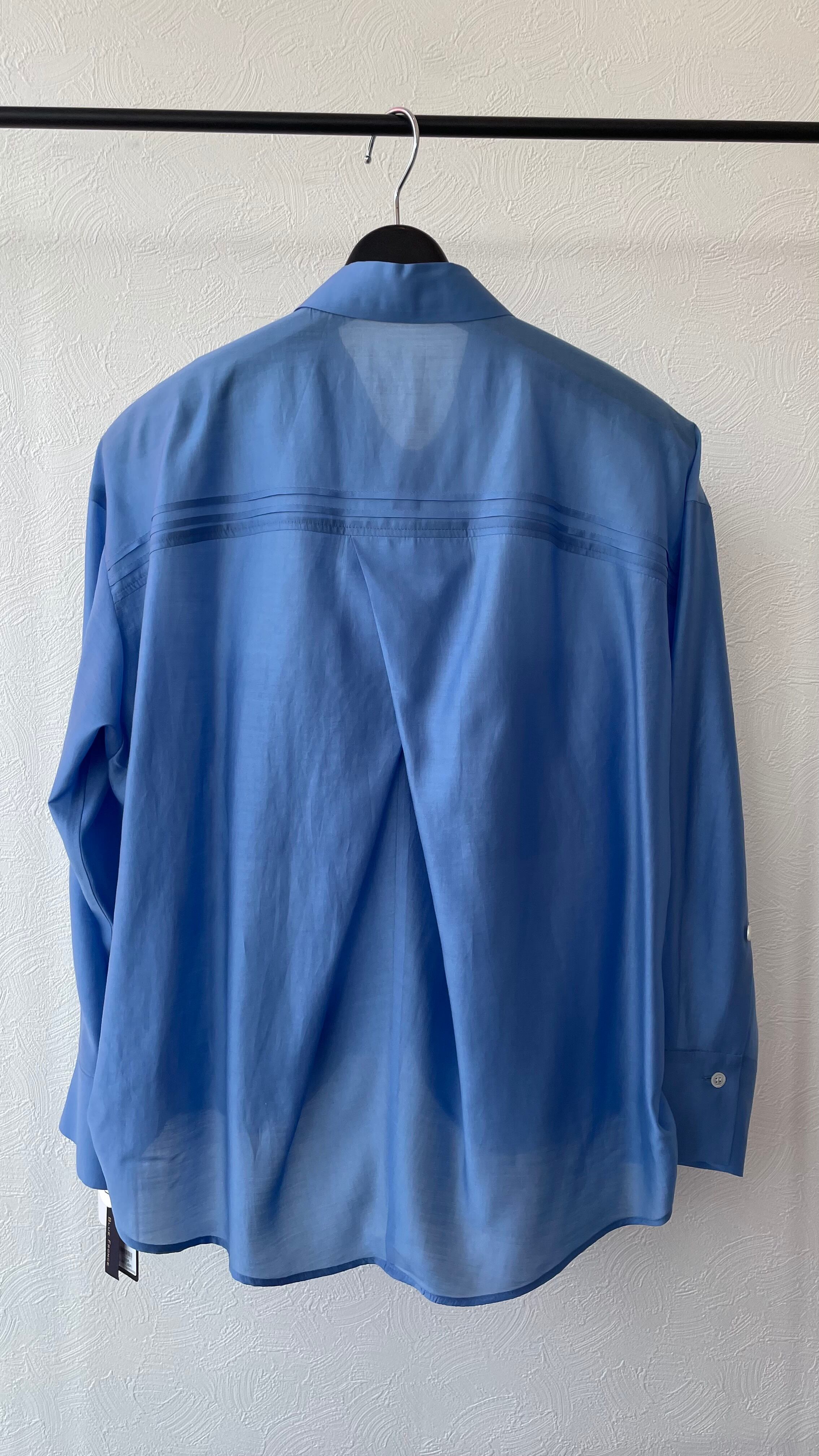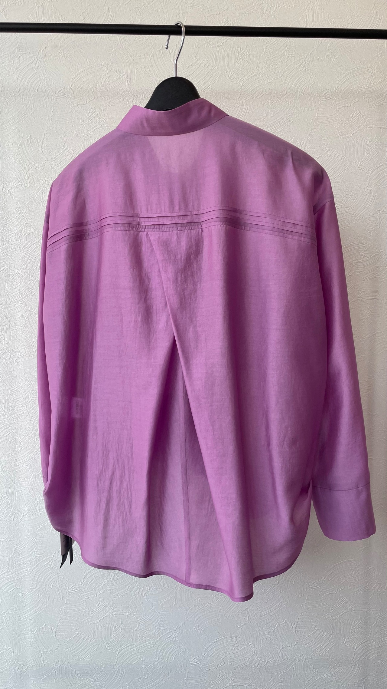 小ぶりな襟がスッキリした印象の大人のオーバーシャツブラウスです。