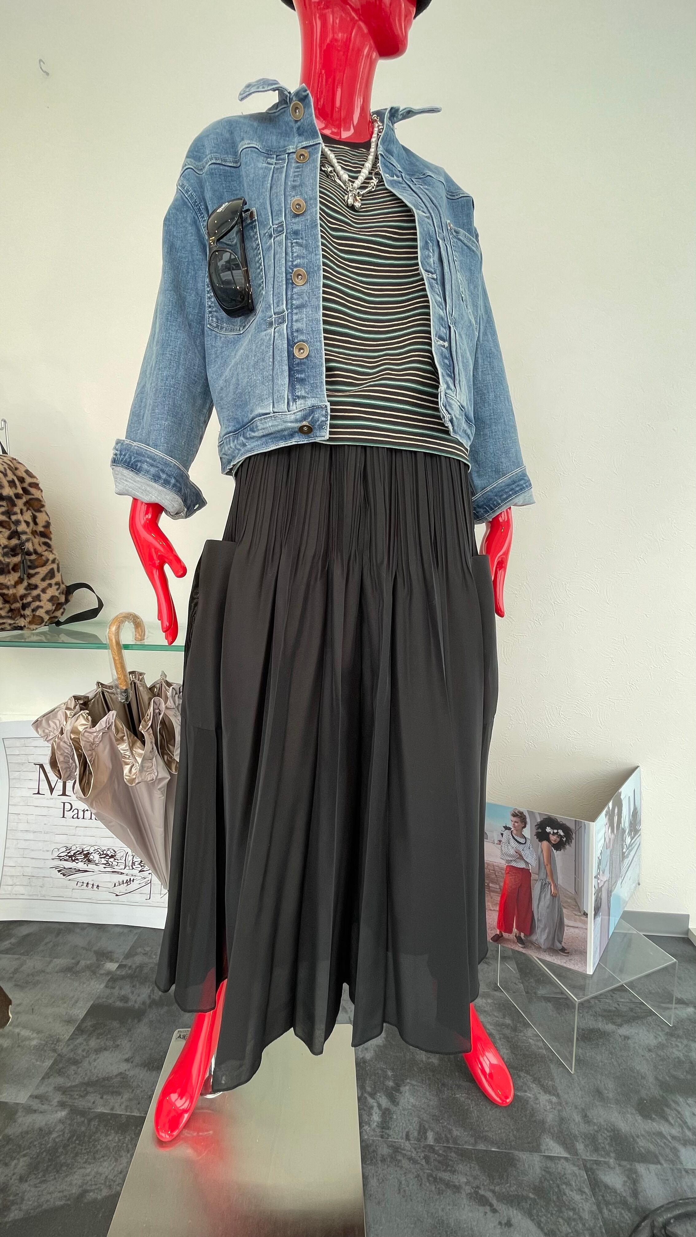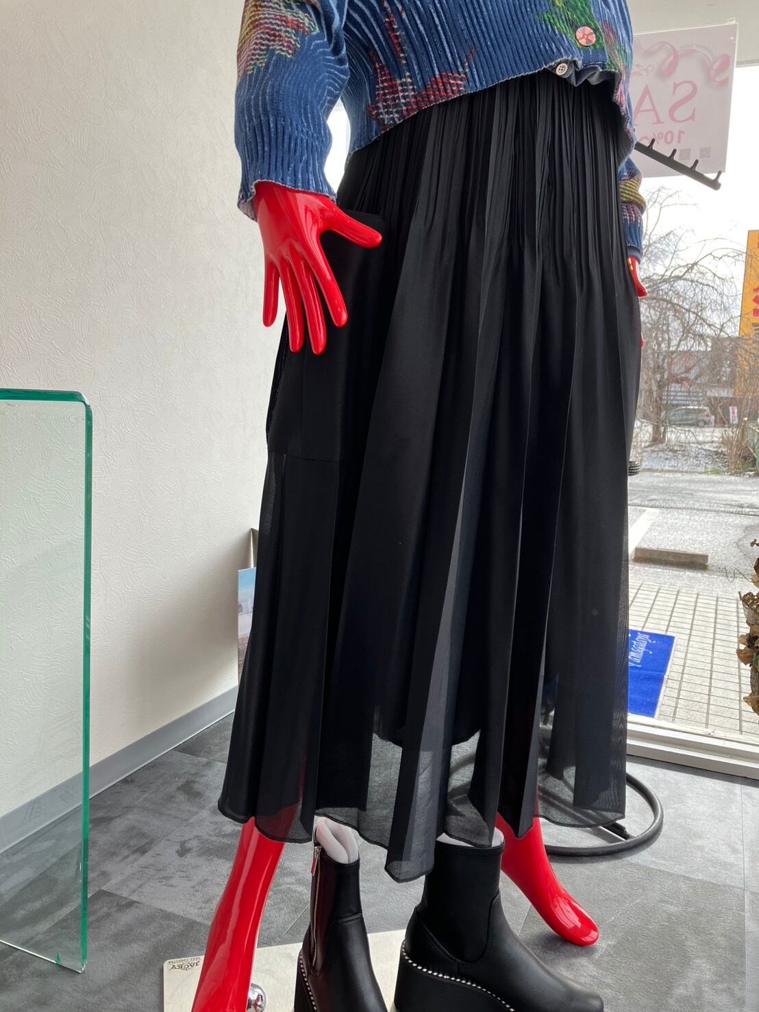 甘くなりがちなプリーツスカートに程よくカジュアルさを加え、ニットやスウェット、ブルゾン合わせもバランス良く決まりますよ◎