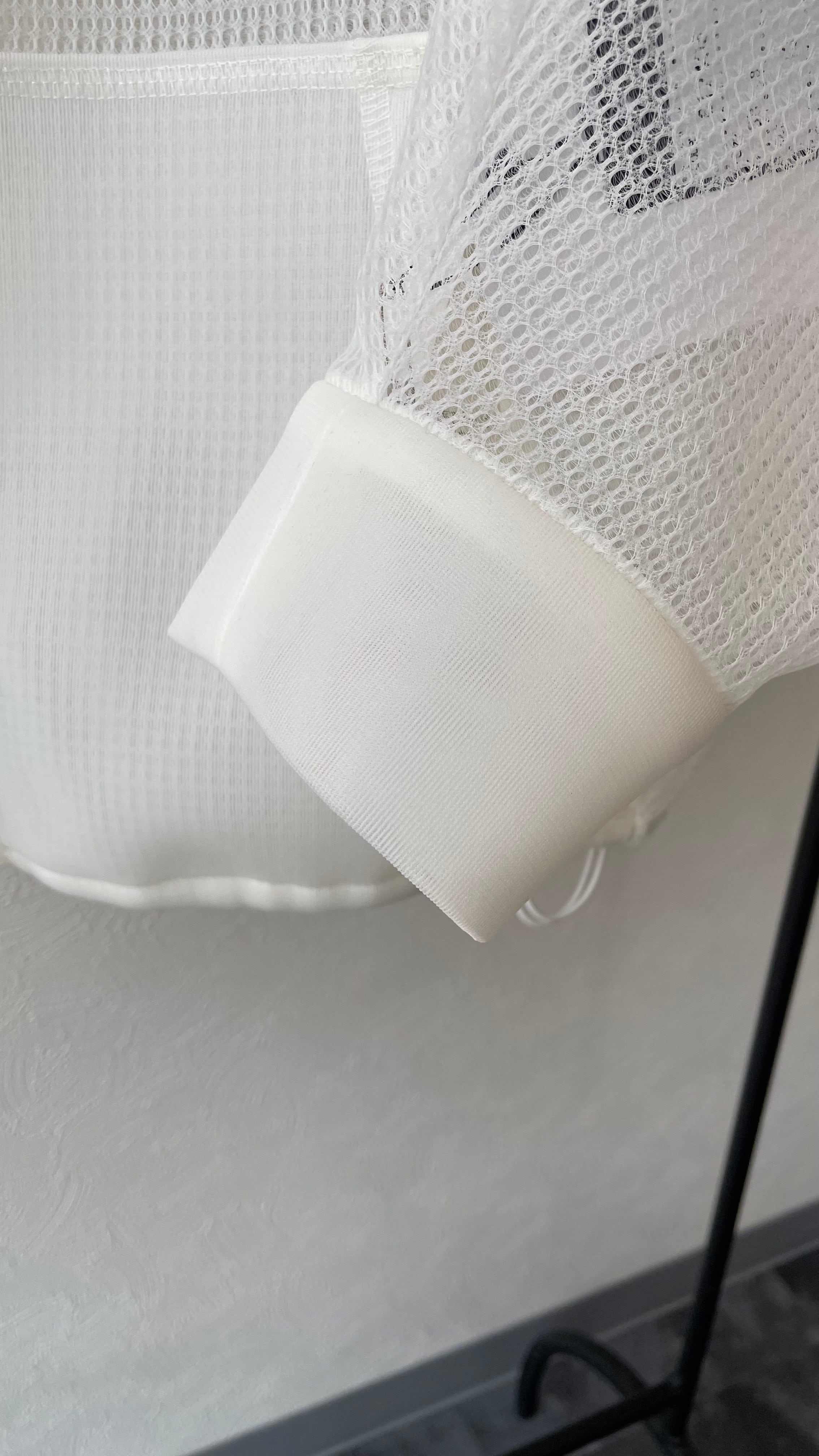 軽やかなシアーメッシュ素材を使用したパーカーブルゾンです♪