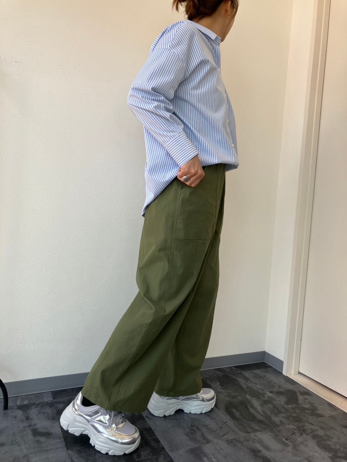 ゆったりとしたサイズ感ながら、ストンと落ちるラインで広がりすぎず、体のラインを拾いにくいのも嬉しいポイント◎