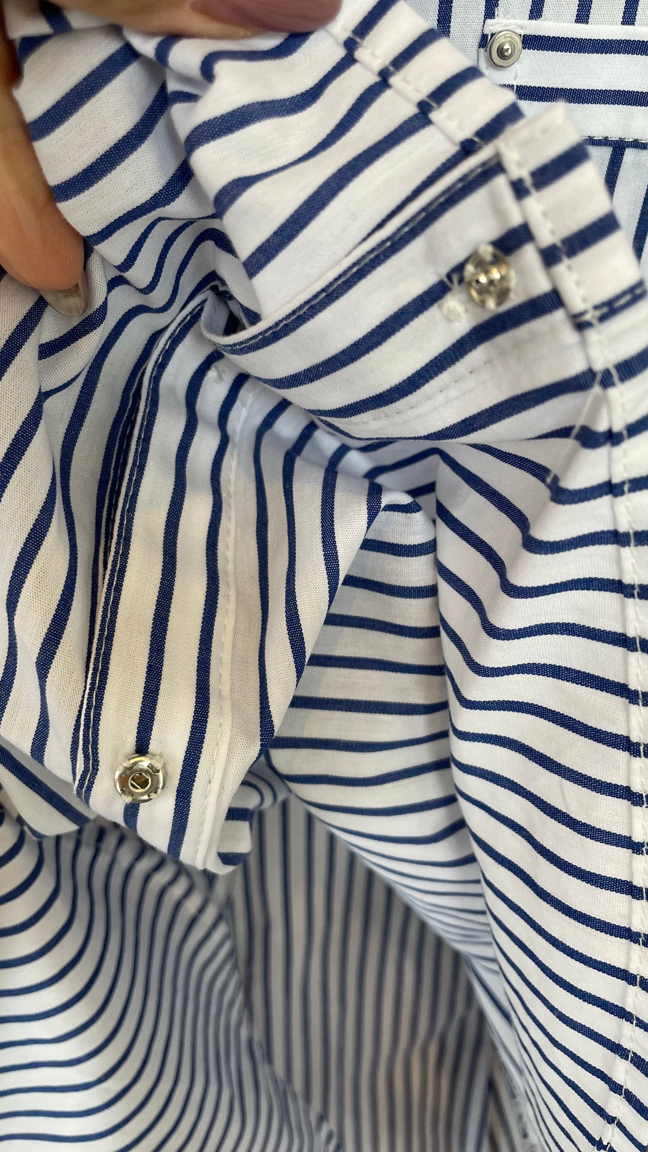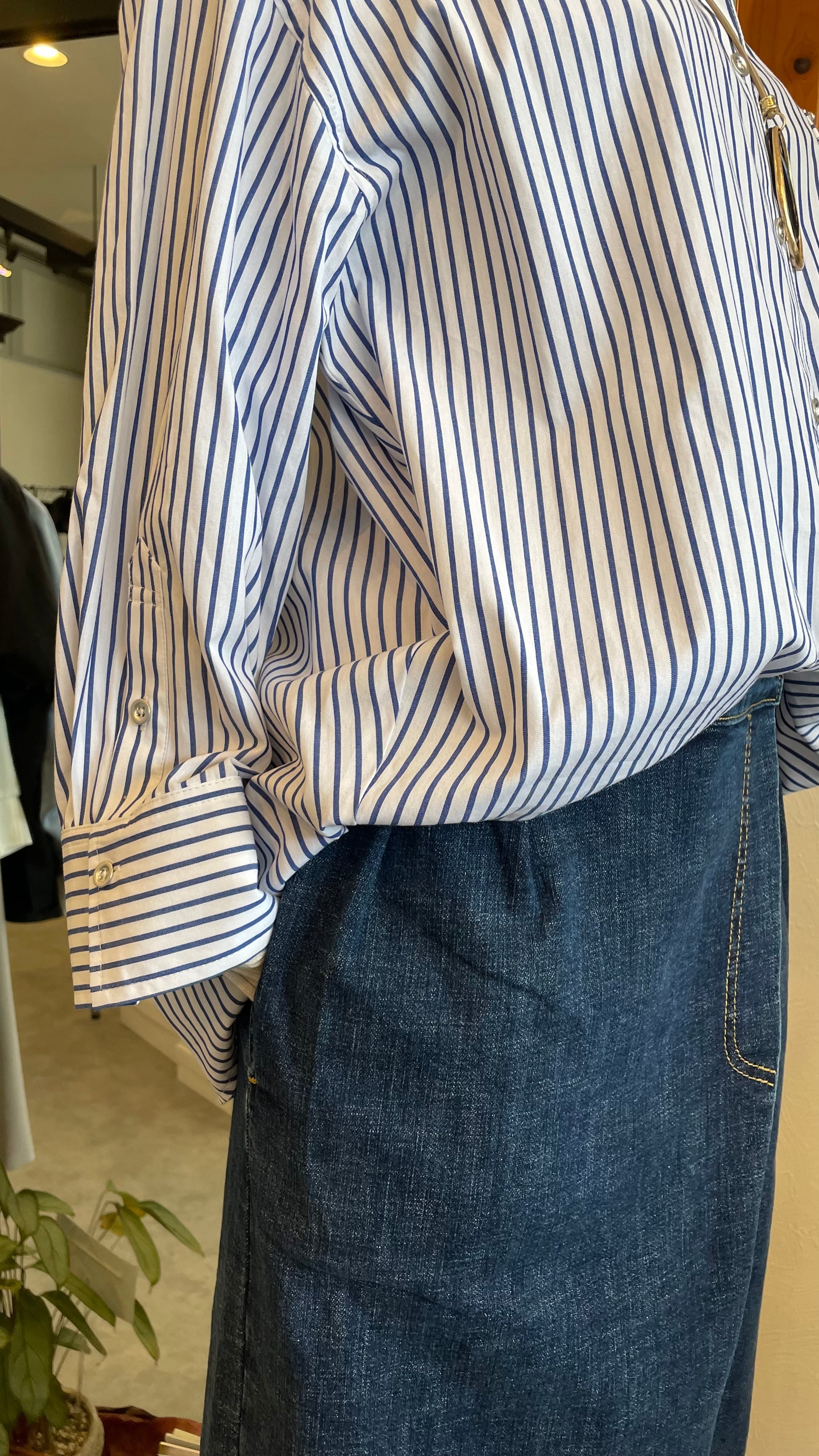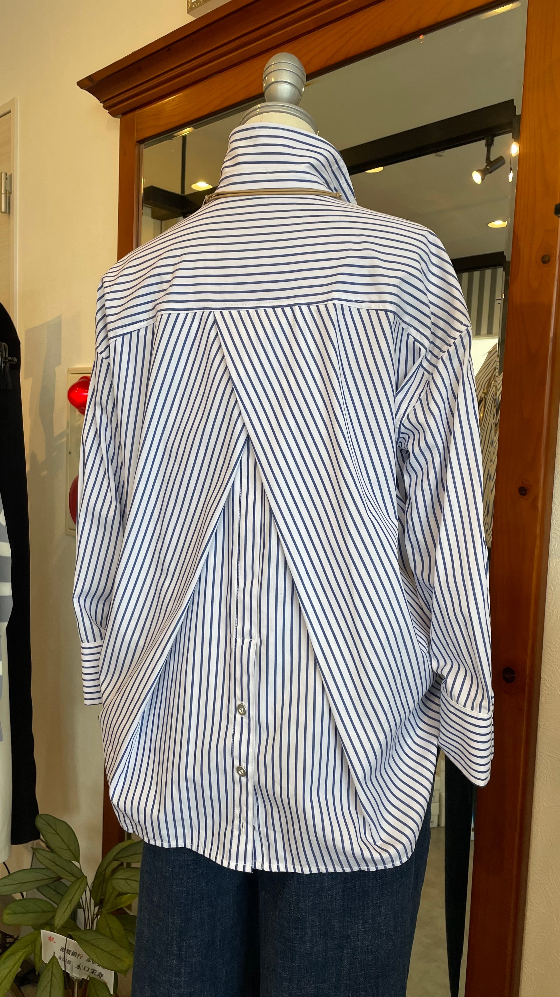 前立てすその内側のボタン留めで、前身頃の丈を調整出来、自然なブラウンジングになります。
