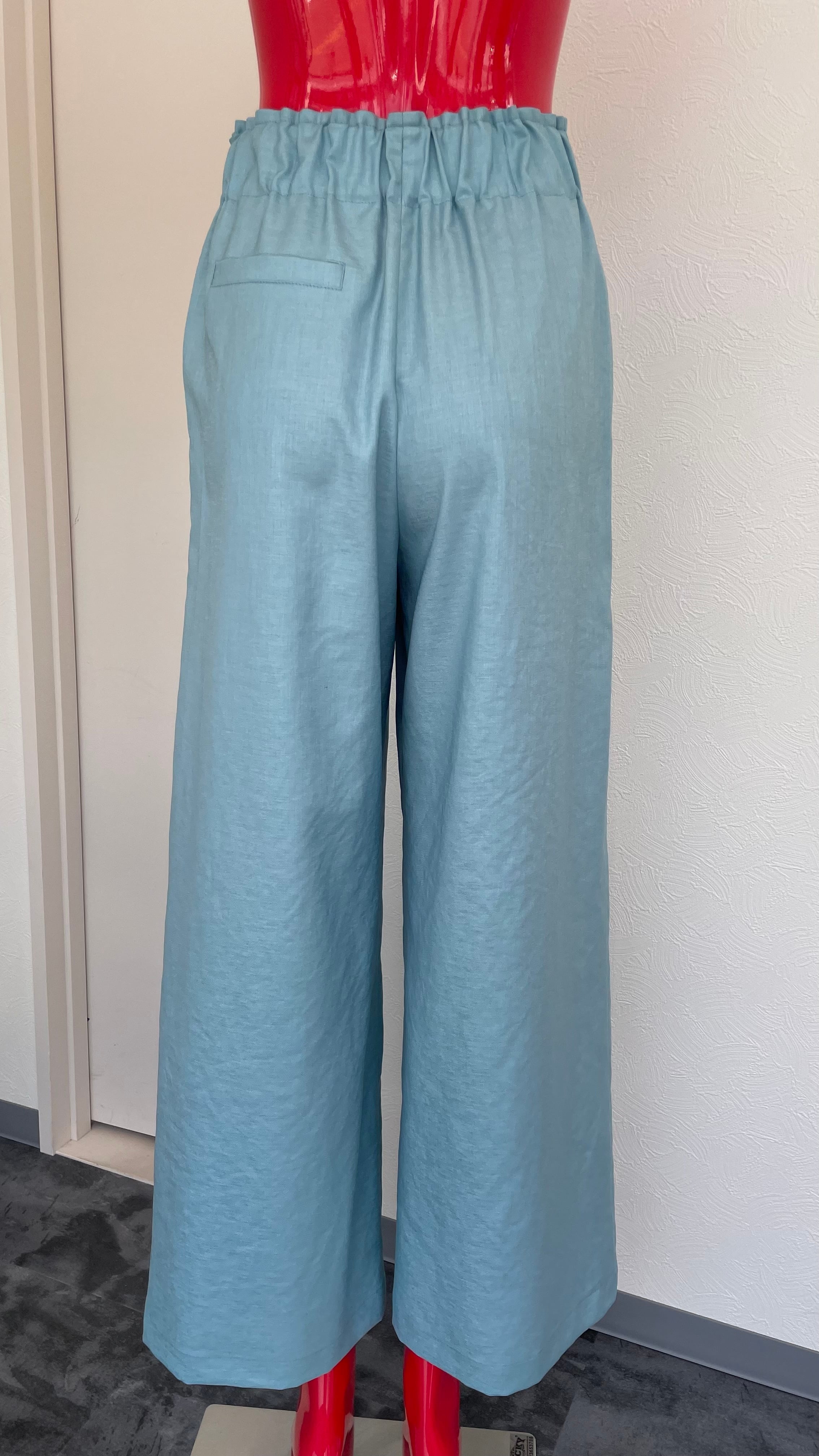 ウエストは総ゴムで、リボンで調整出来ます。