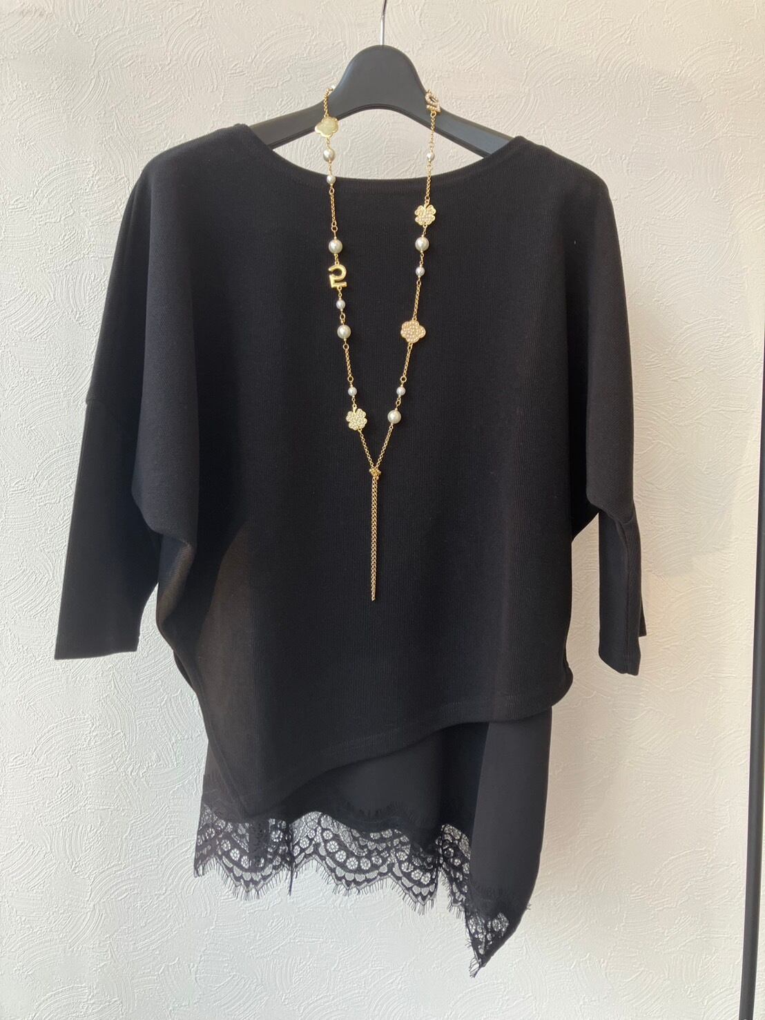 シンプルながらも、華やかさを添えるデザインは、ジャケットのインナーや、Tシャツとの重ね着にも最適です◎