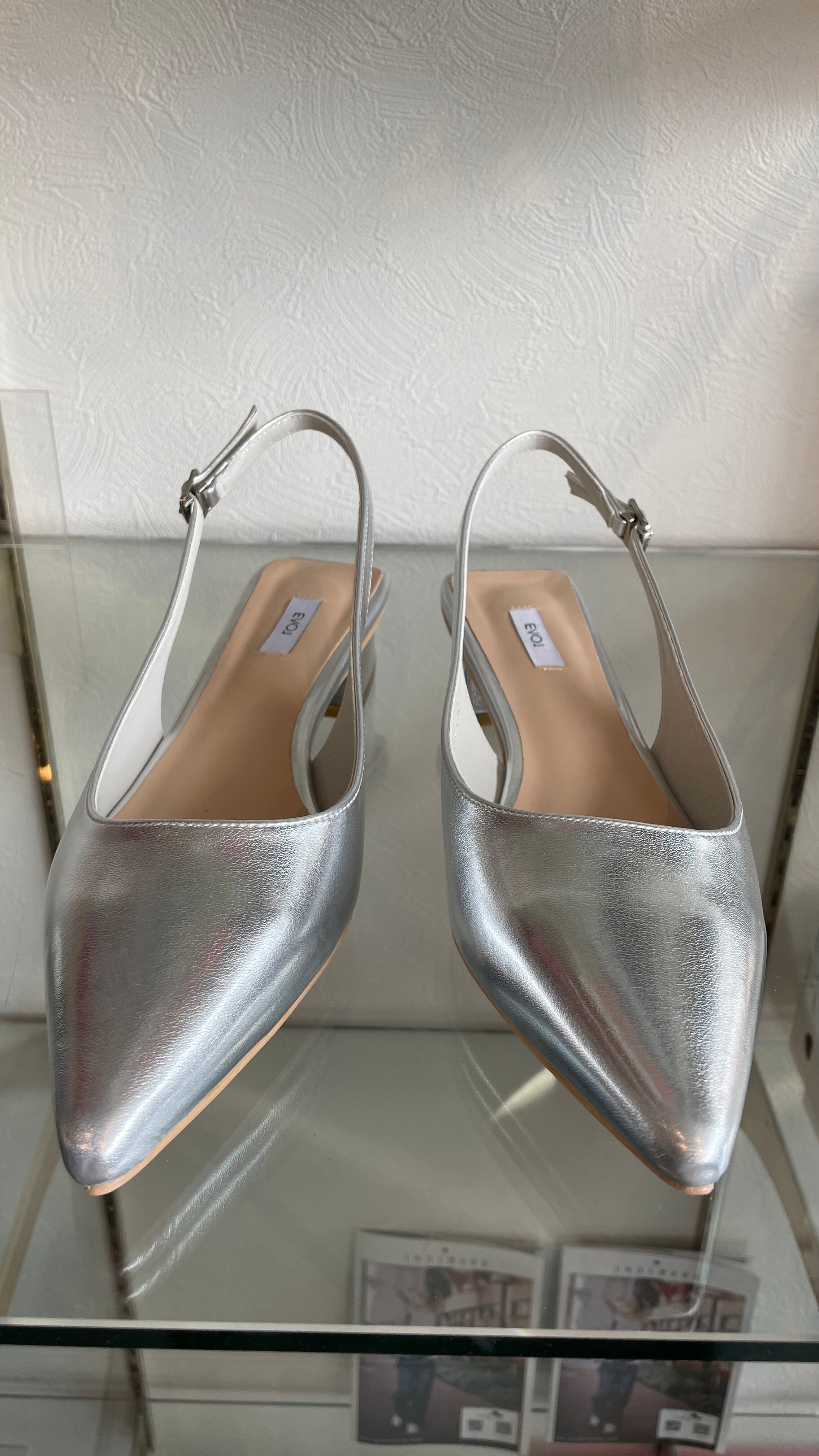 バックストラップの付いた、ポインテッドのブロックヒールパンプスです♪