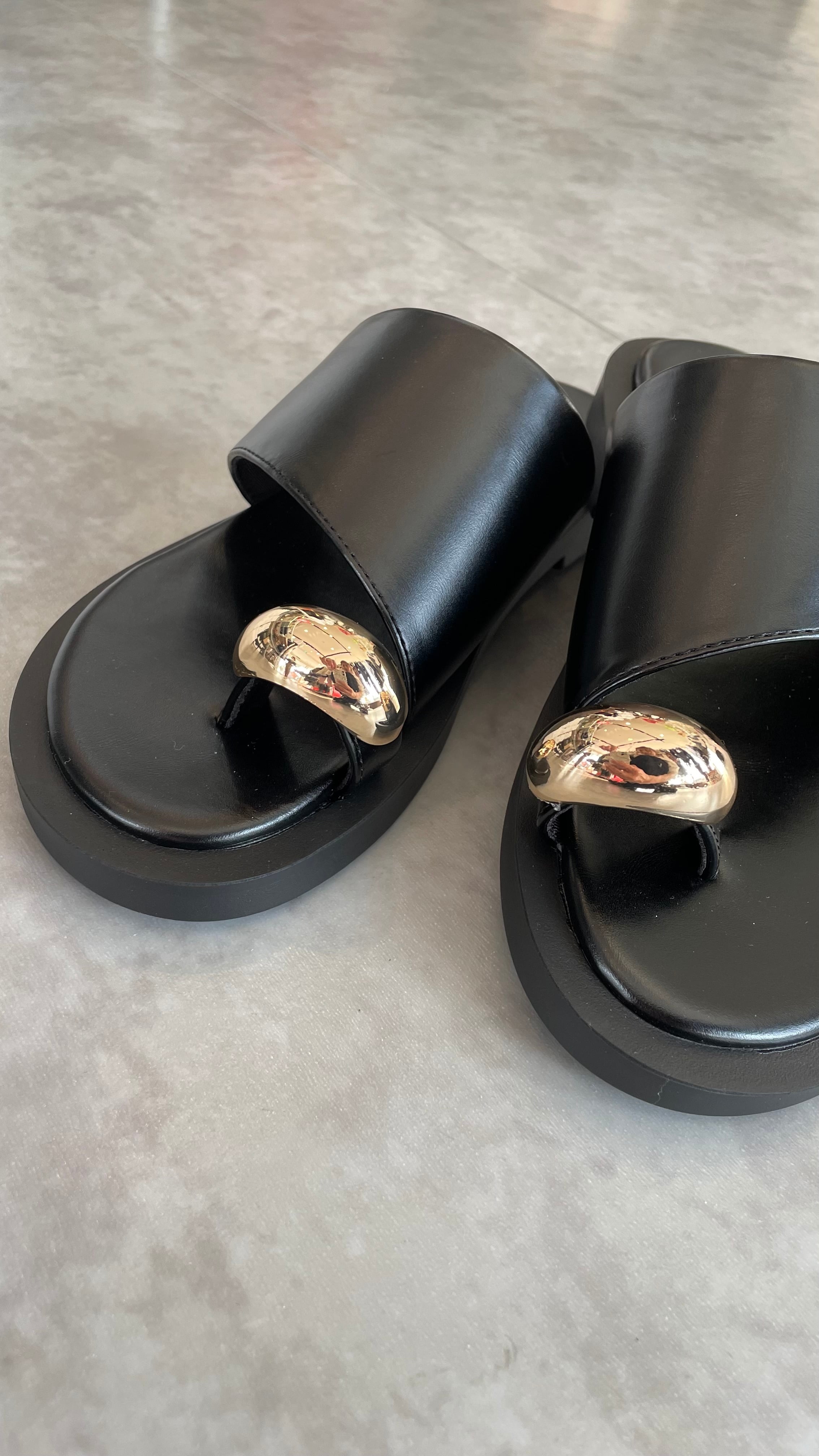 夏の定番のトングサンダルにぷっくりとした立体的なゴールドパーツを合わせたデザインのサンダルです♪