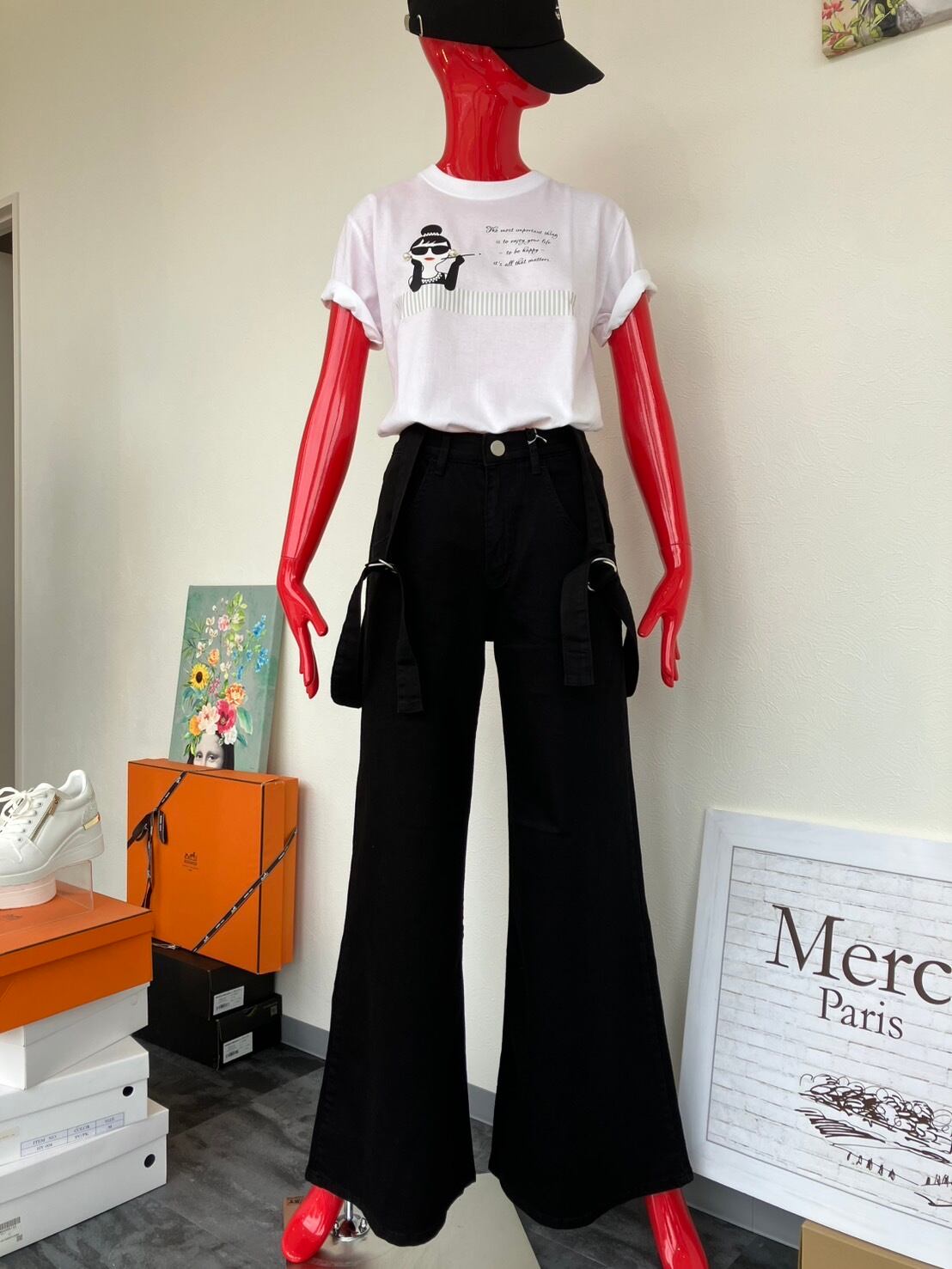 スタイルアップ効果抜群のサスペワイドデニムです♪