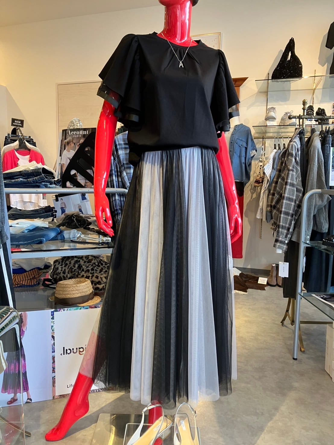 華やかな印象で、どんなボトムスとも合わせやすい一着です。