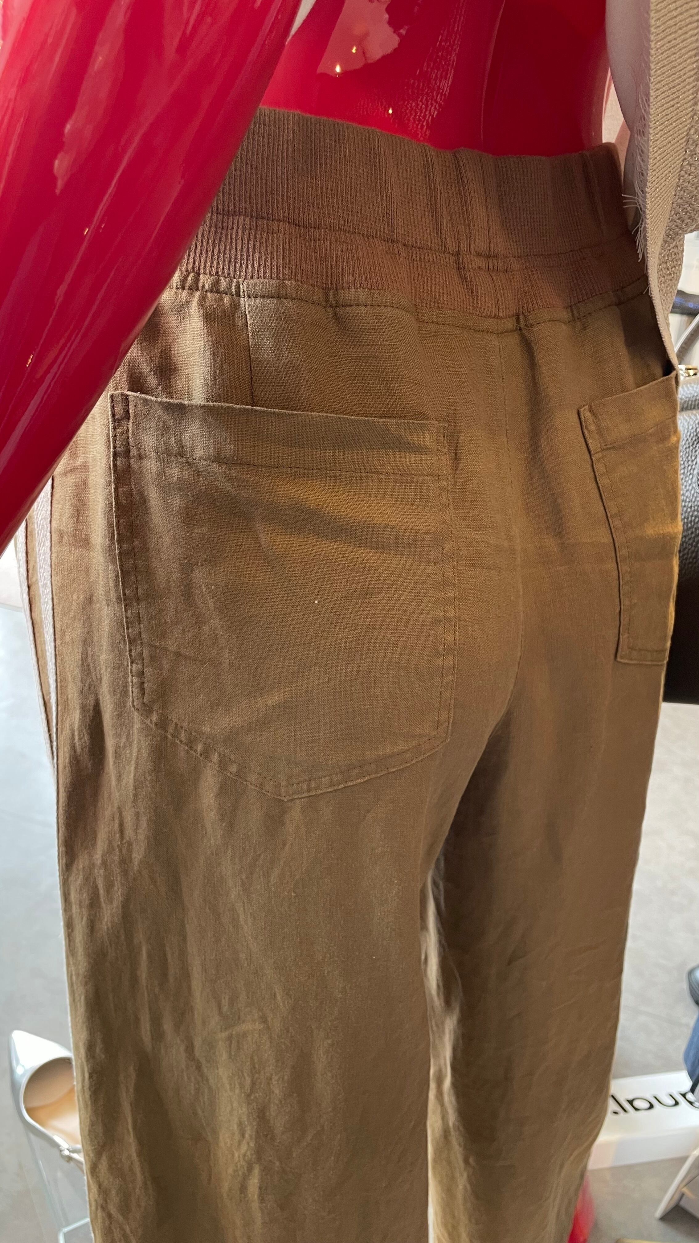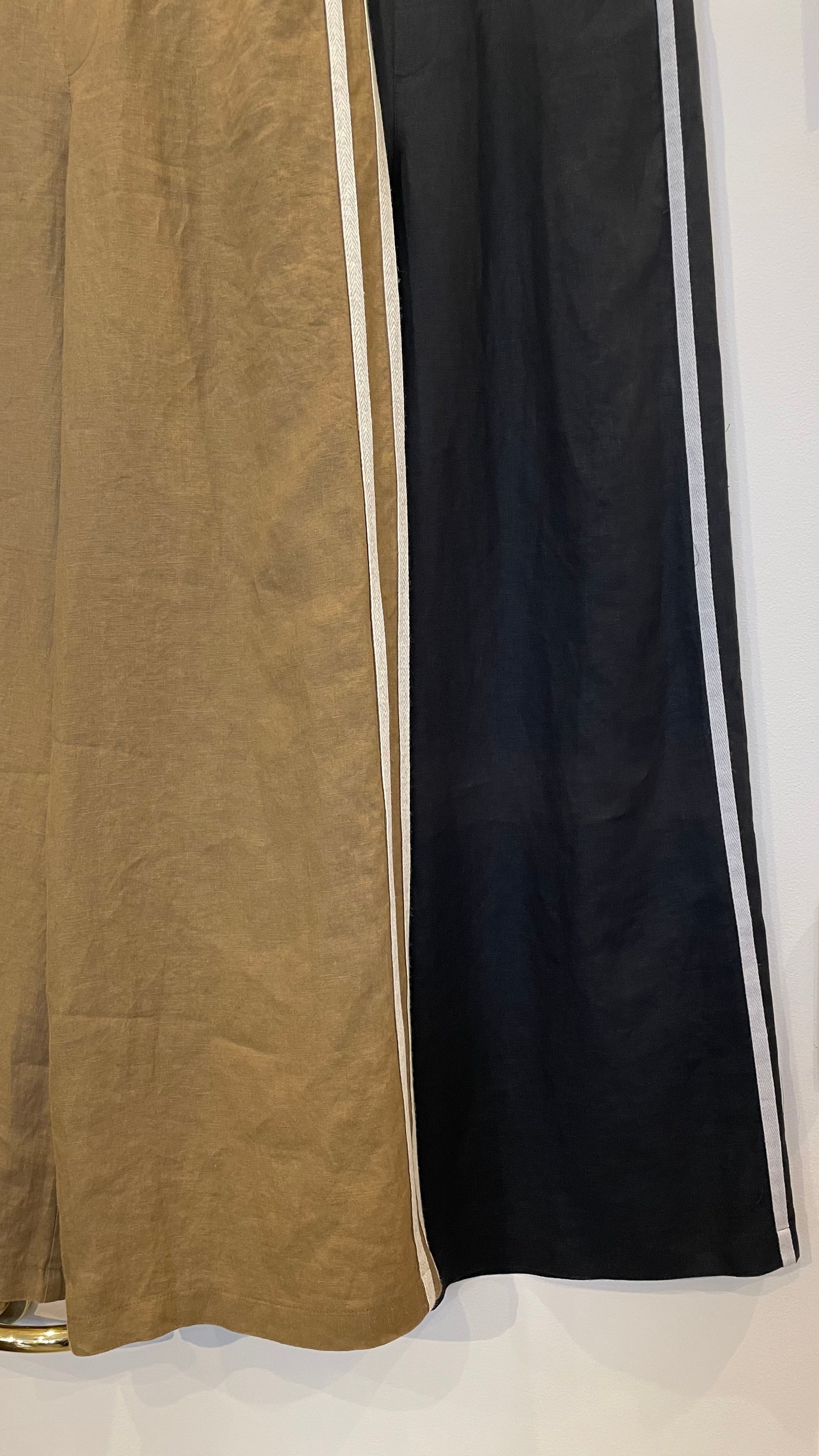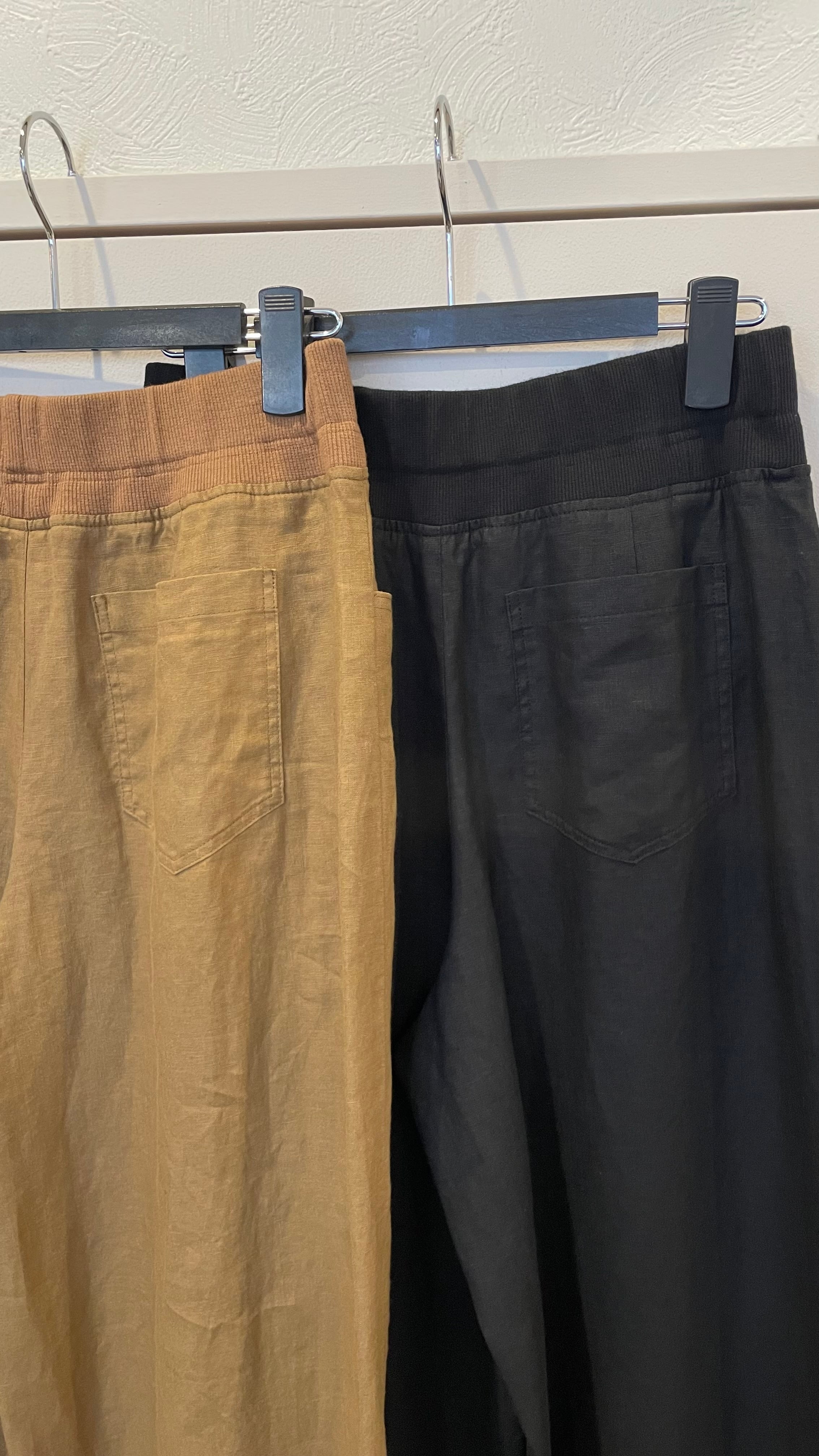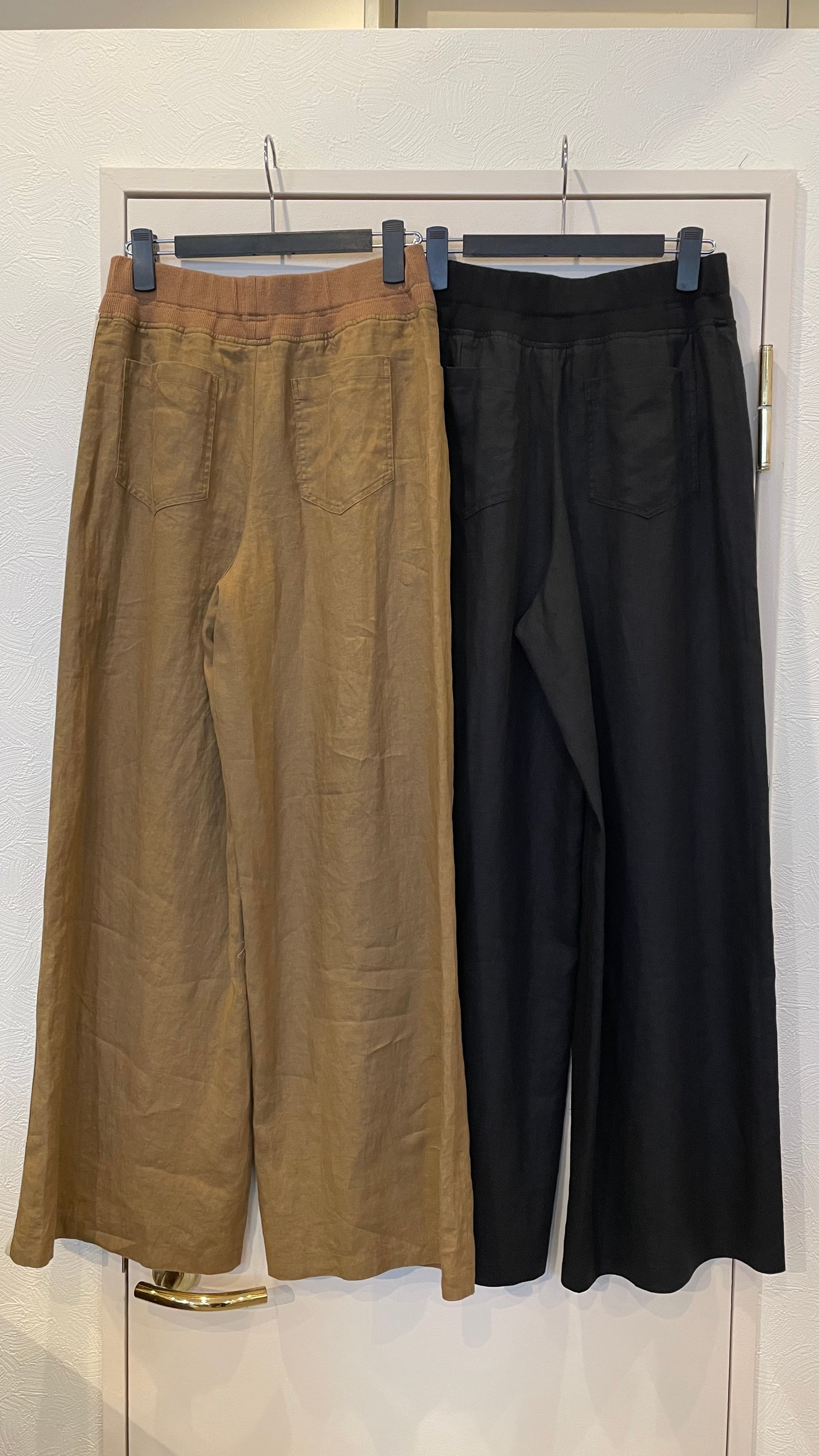 リネン素材を使用し、通気性が良く涼し気なサイドライン(左側のみラインあり)パンツです◎