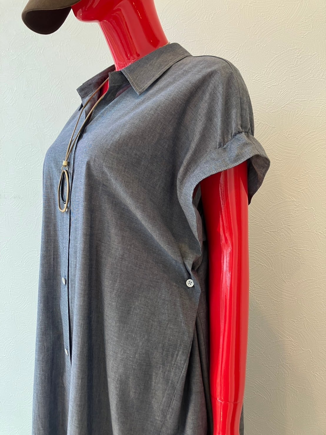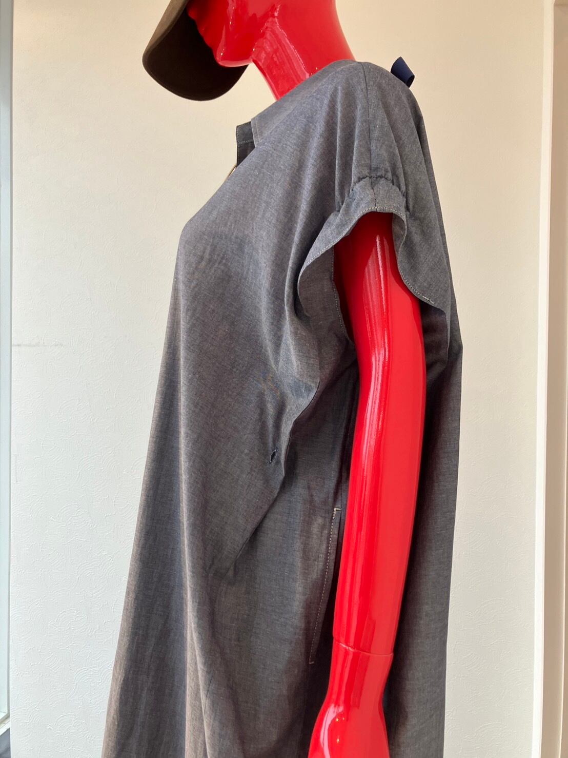 脇にタック(ボタンが付き)があり、見えにくくなっています。