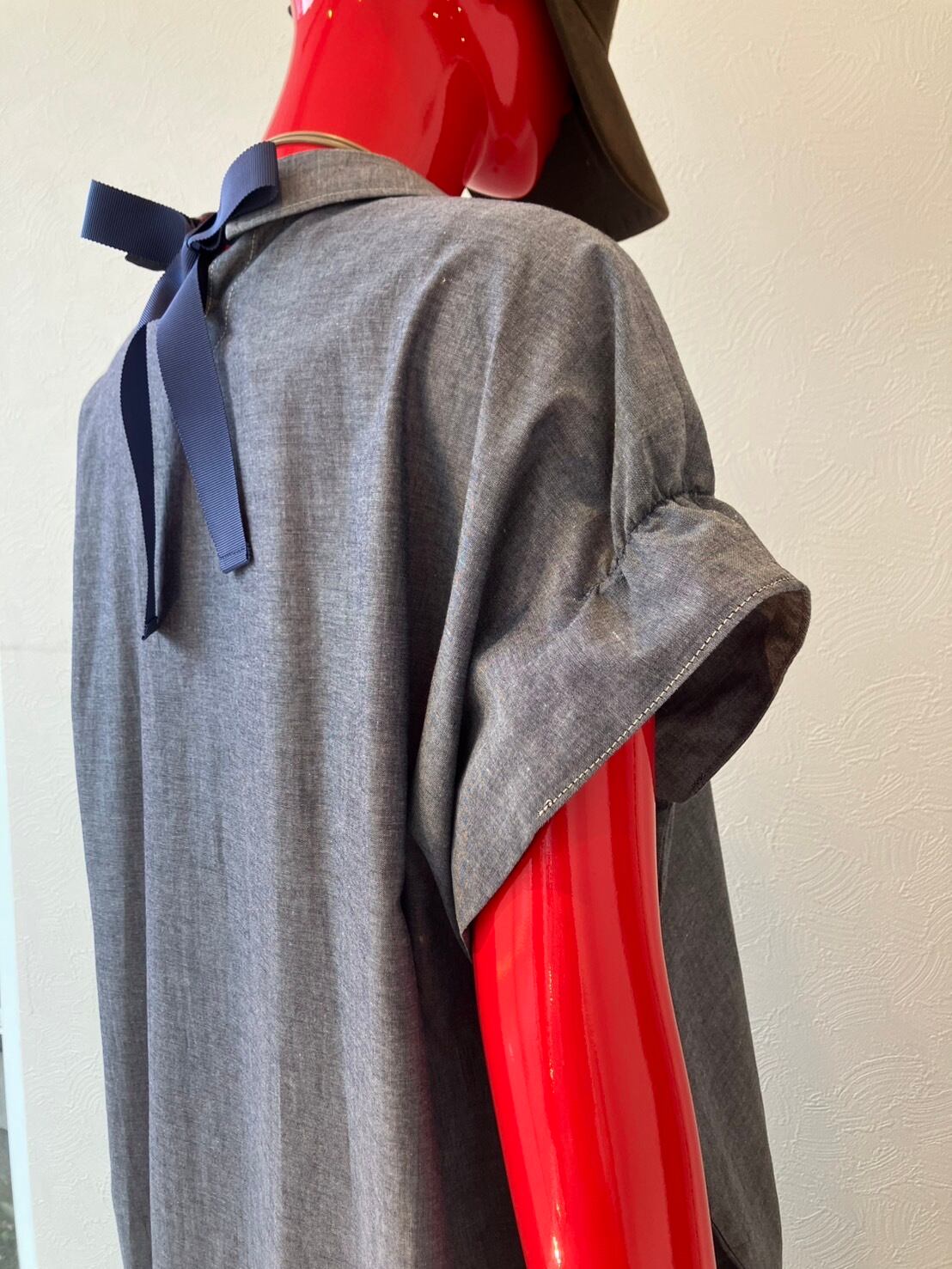 ふんわりしたデザインが魅力の後ろリボンブラウスのワンピースです♪