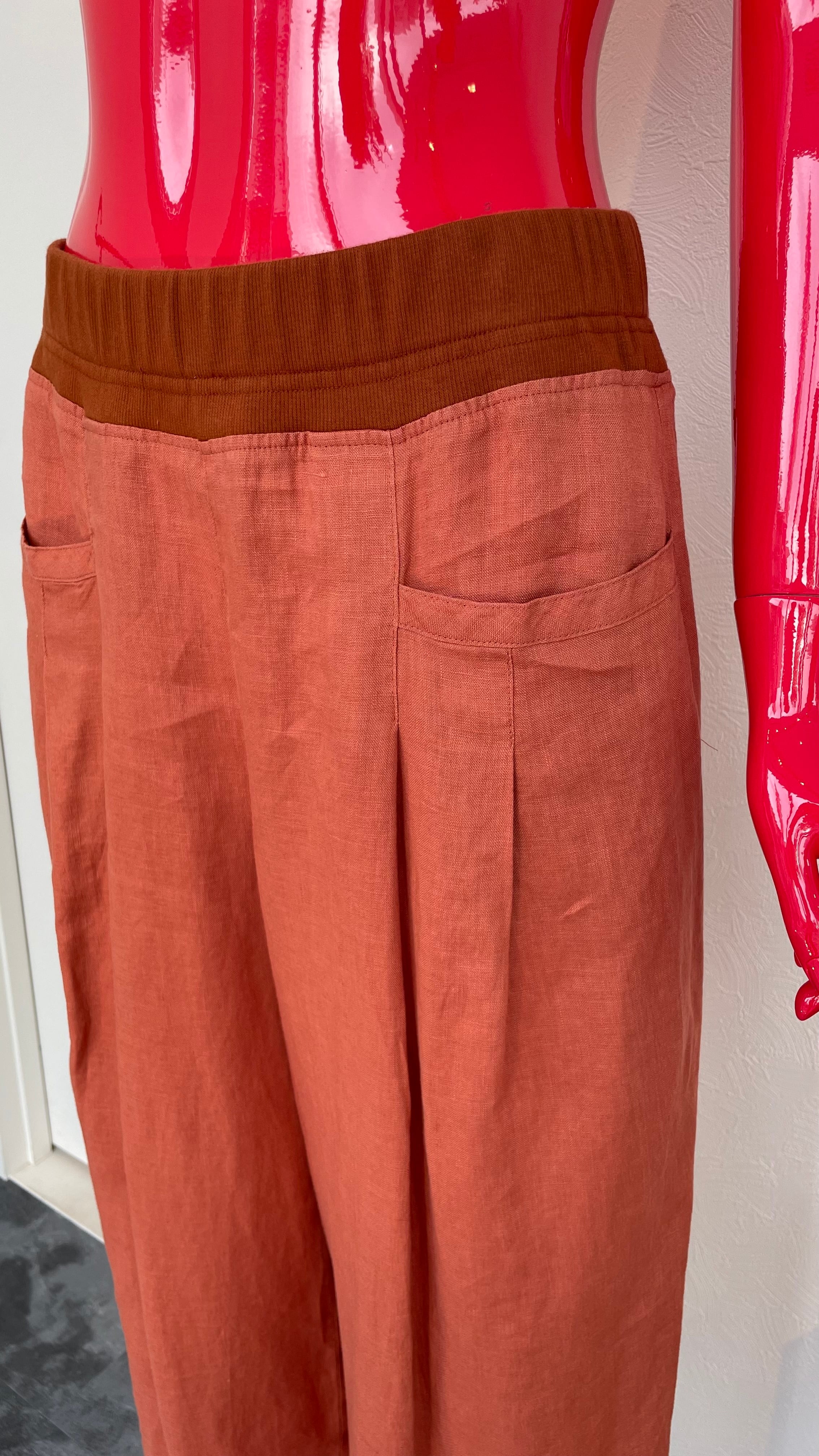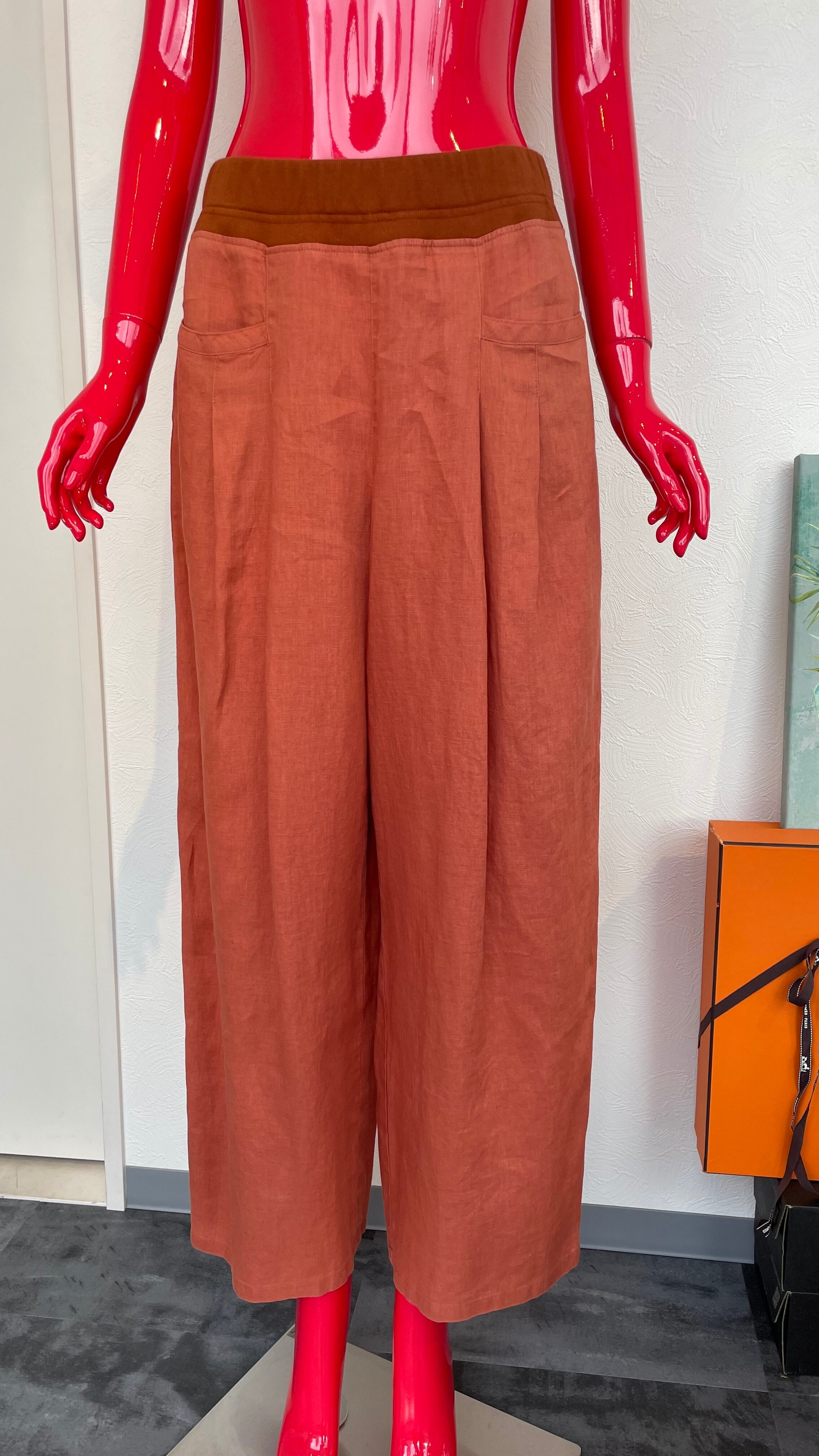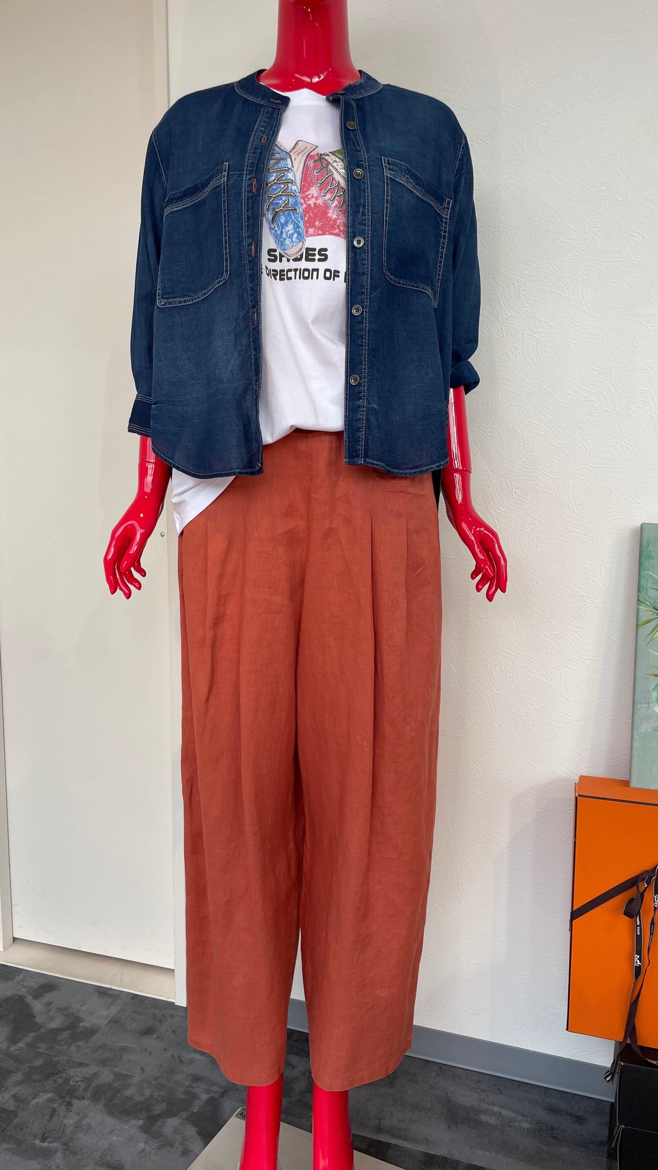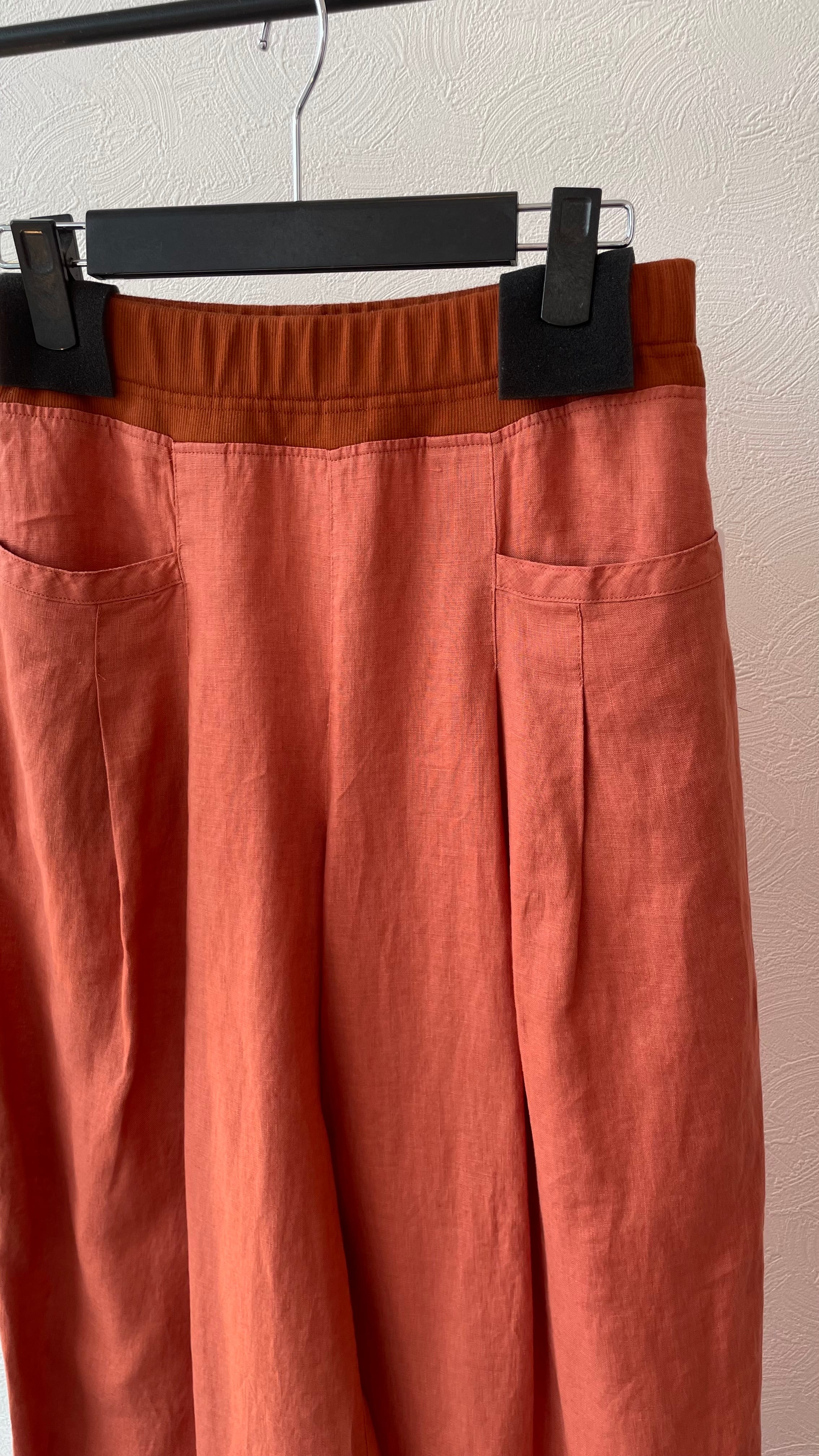 ウエストがリブゴムのフレンチリネンパンツです♪