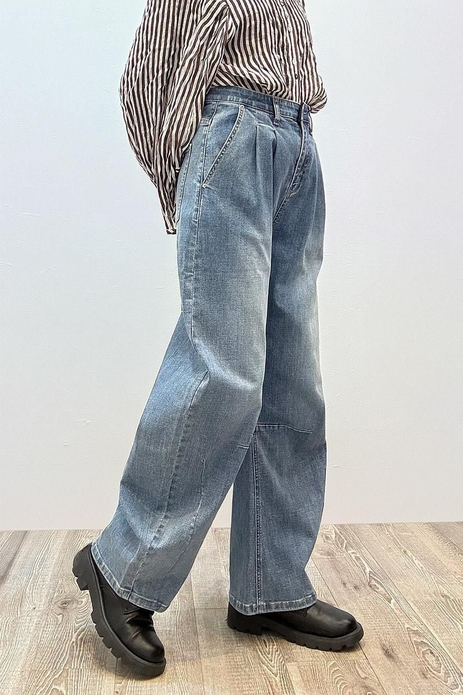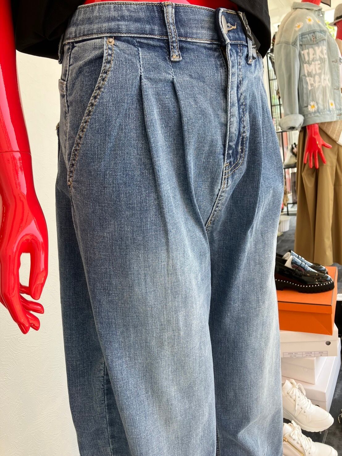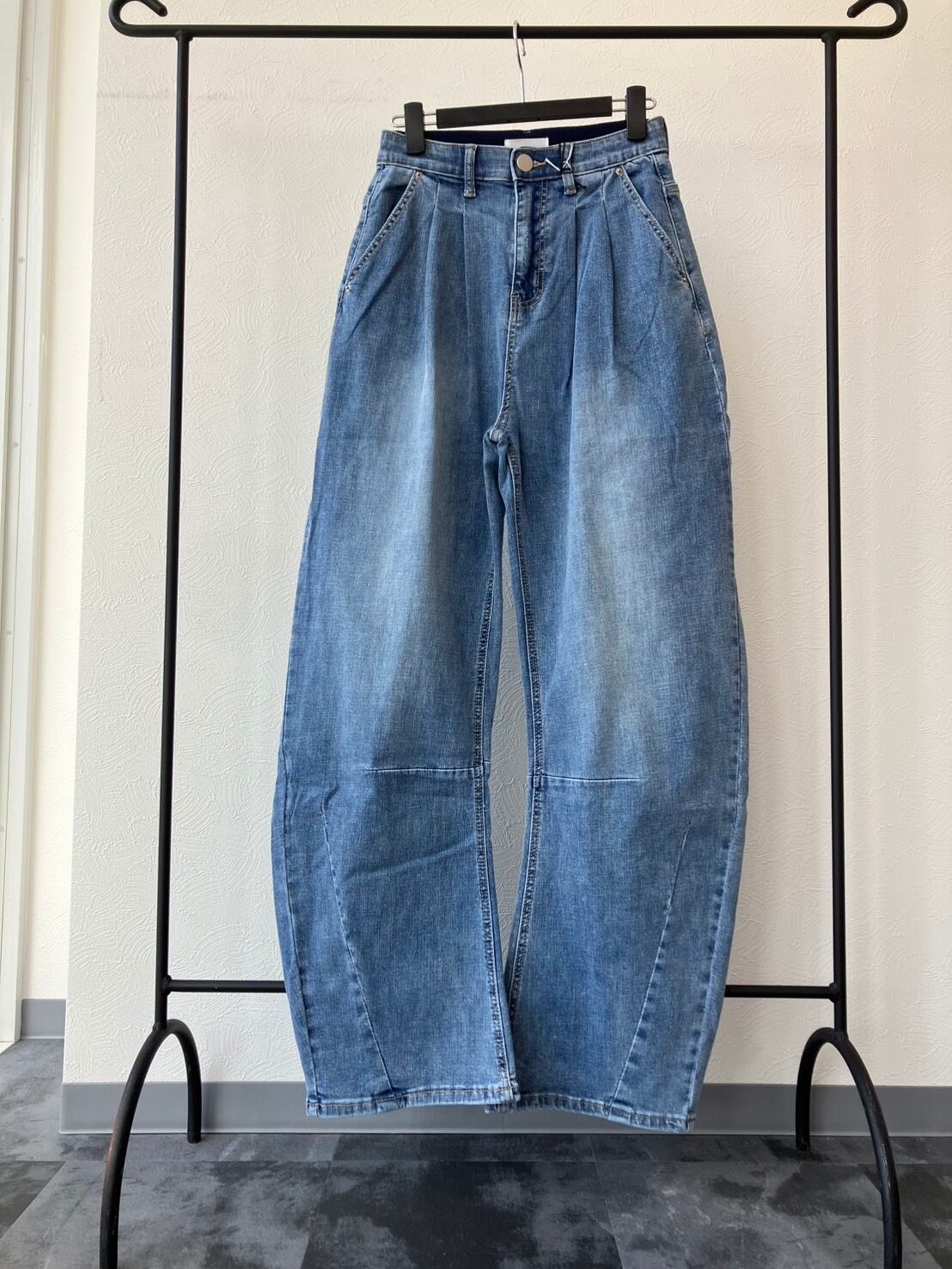 丸みのあるカーブデニムにタックが入ったパンツです♪