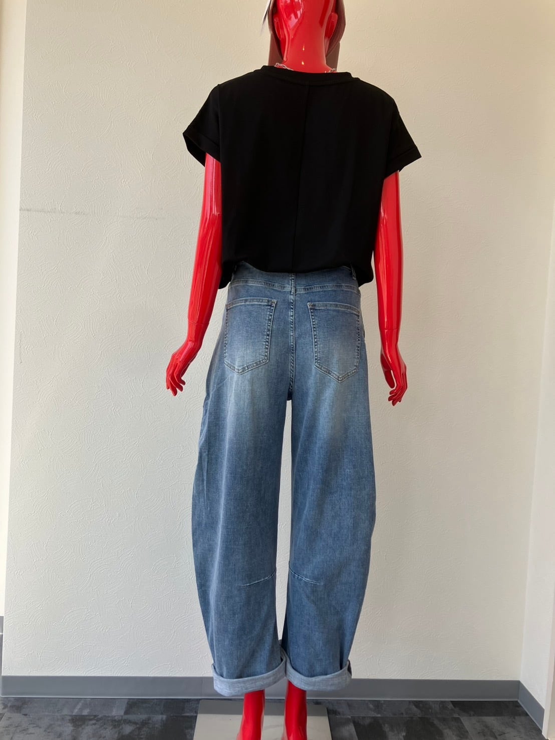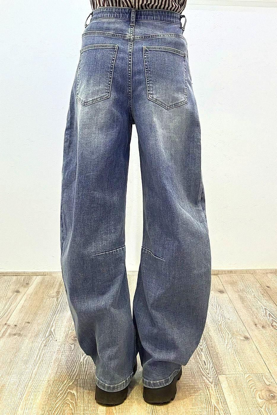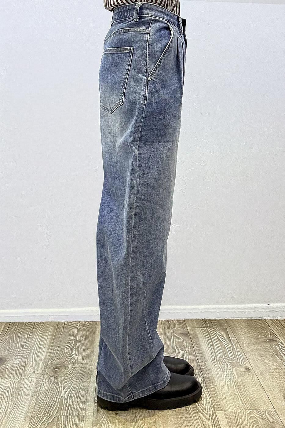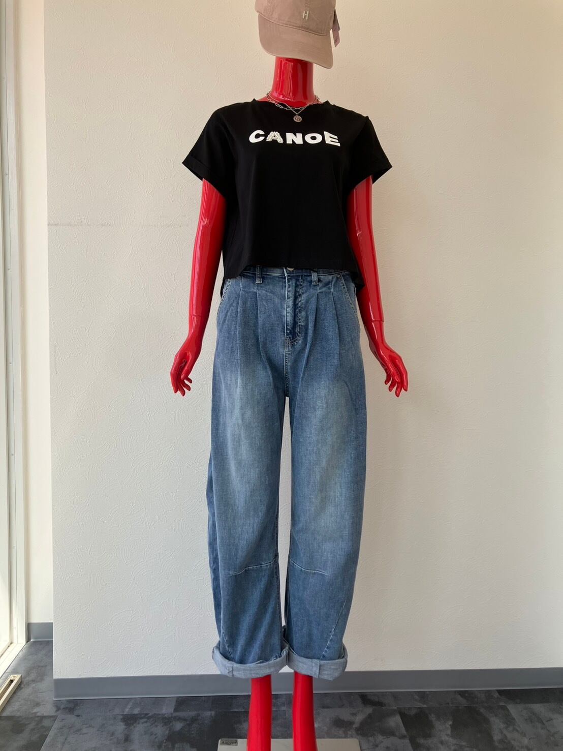 丸みのあるカーブデニムにタックが入ったパンツです♪