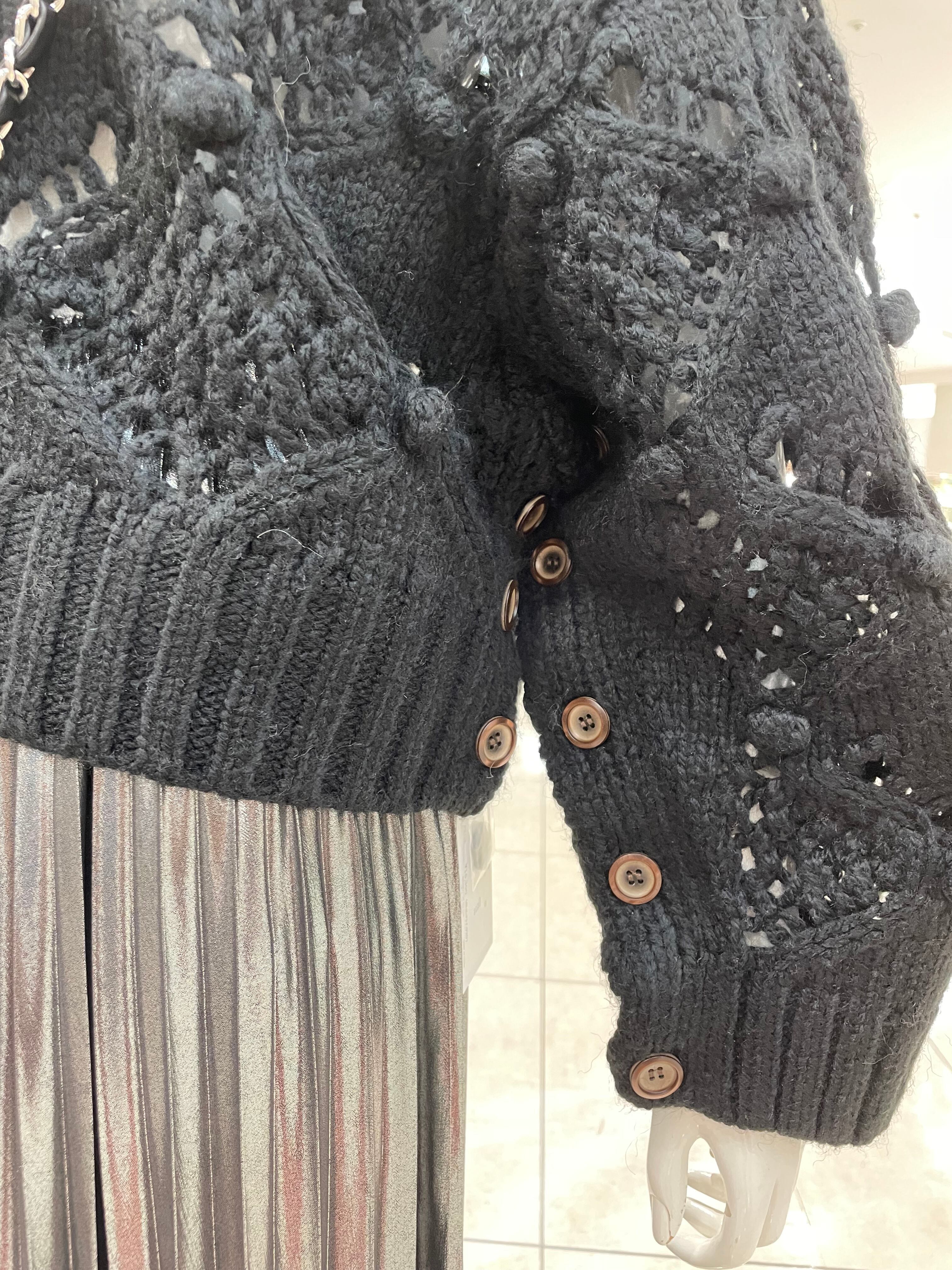 ローゲージニットなので薄手のインナーや、シャツをレイヤードしてお楽しみ下さいね。