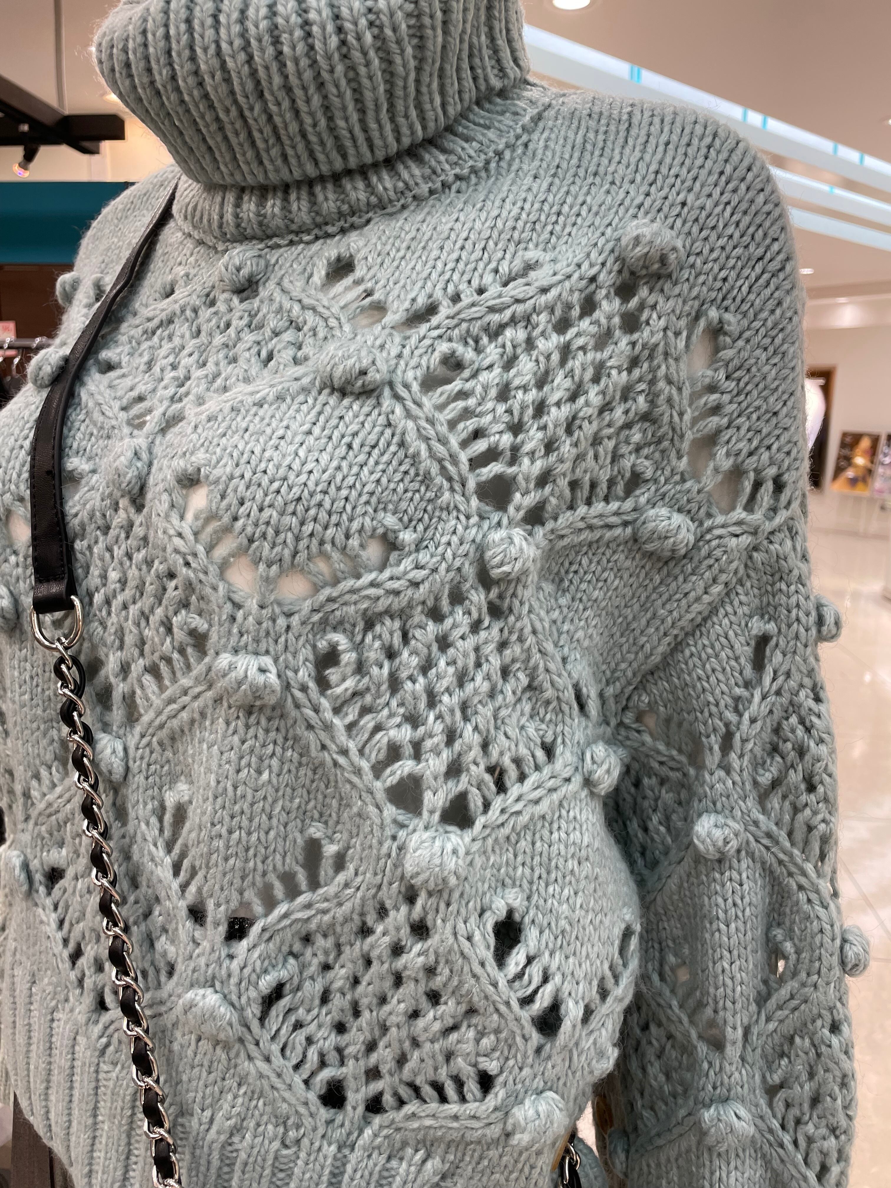 鍵編み風のざっくり編み地が特徴のタートルニットです♪